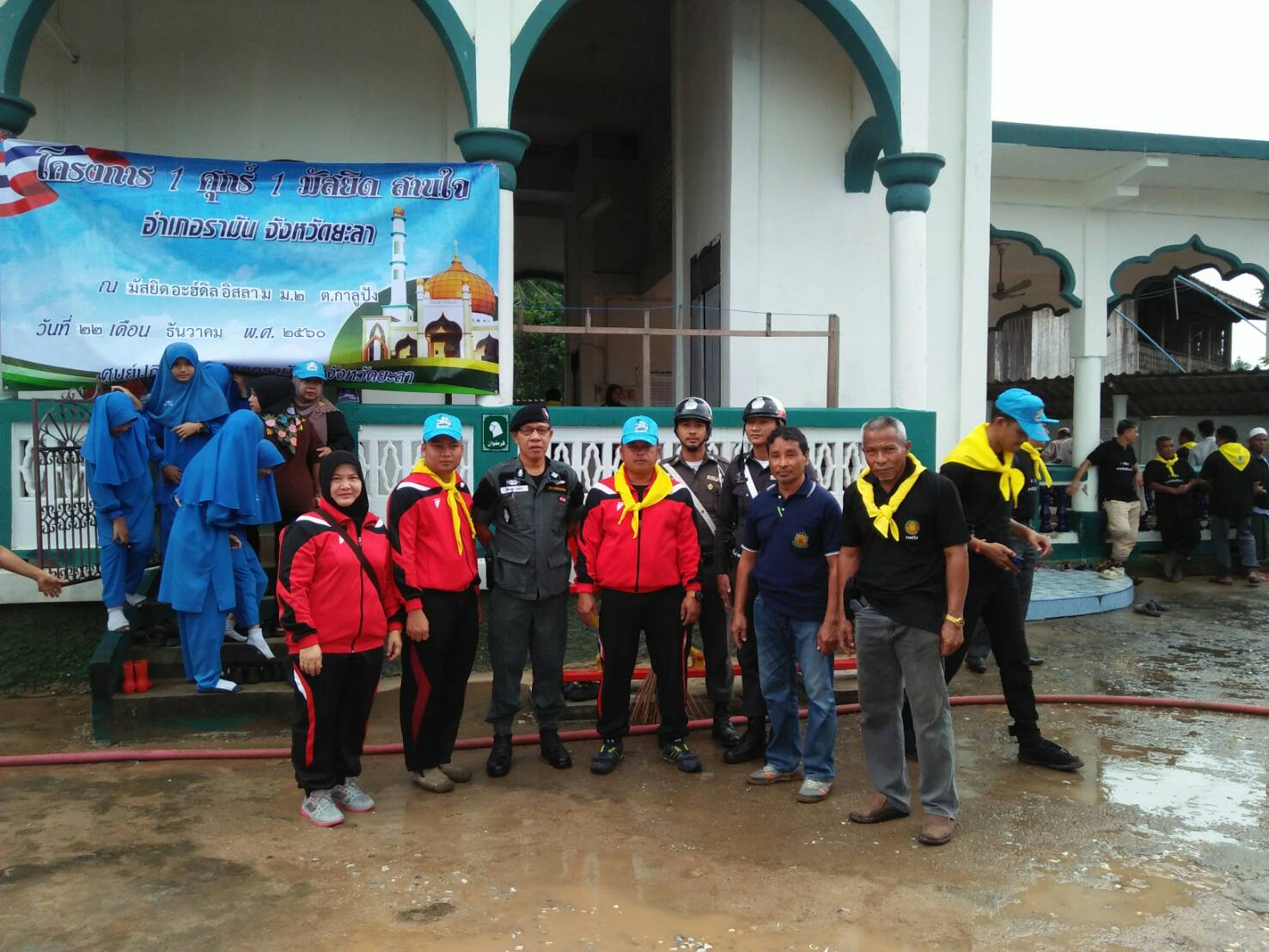 วันนี้ 22 ธ.ค 60 เวลา 07:30 น. เป็นต้นไป เจ้าหน้าที่หน่วยฯที่ ยล.5 (รามัน) ร่วมกิจกรรมบำเพ็ญประโยชน์’’จิตอาสาทำความดีด้วยหัวใจ”ทำความสะอาดและบริเวณโดยรอบมัสยิด ตามโครงการ 1 ศุกร์ 1 มัสยิด สานใจ ณ.มัสยิด อะห์ดิลอิสลาม ม.2 ต.กาลูปัง อ.รามัน จ.ยะลา โดยมีส่วนราชการต่างๆ ทหาร ตำรวจ ประชาชน และ นักเรียน ร่วมกิจกรรมดังกล่าวโดยมี นาย จรัญ จันทรปาน นายอำเภอรามันเป็นประธานในพิธี