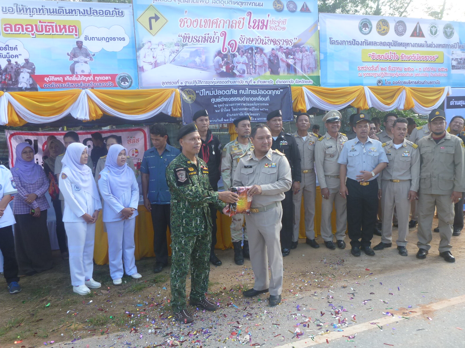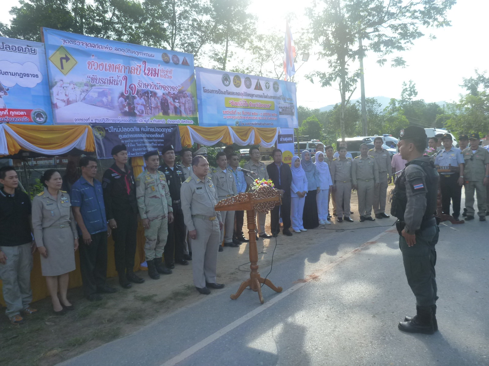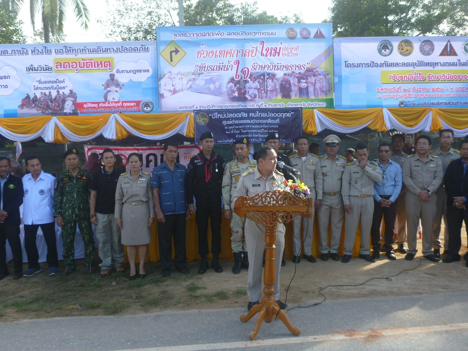 วันนี้ (28 ธันวาคม 2560) เวลา 08.30 น. เจ้าหน้าที่หน่วยฯ ยล.1 (กาบัง) เข้าร่วมพิธีเปิดจุดตรวจจุดสกัดเพื่อลดอุบัติเหตุทางถนนช่วงเทศกาลปีใหม่ 2561 และมอบสิ่งของให้กับเจ้าหน้าที่ประจำจุดตรวจ ณ จุดตรวจฐานปฎิบัติการคุ้มครองตำบล (ชคต.กาบัง) อ.กาบัง จ.ยะลา โดยมีนายสุริยา บุณพันธ์ ปลัดอวุโส อำเภอกาบัง เป็นประธานเปิดพิธี