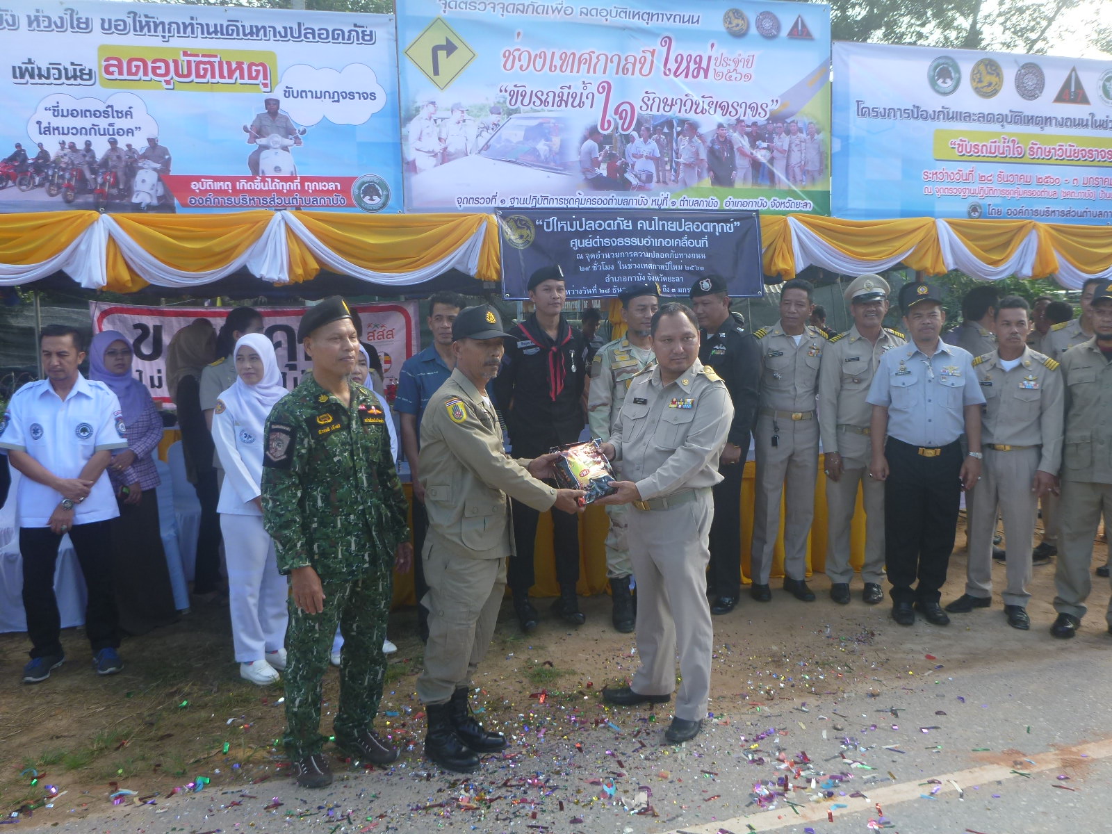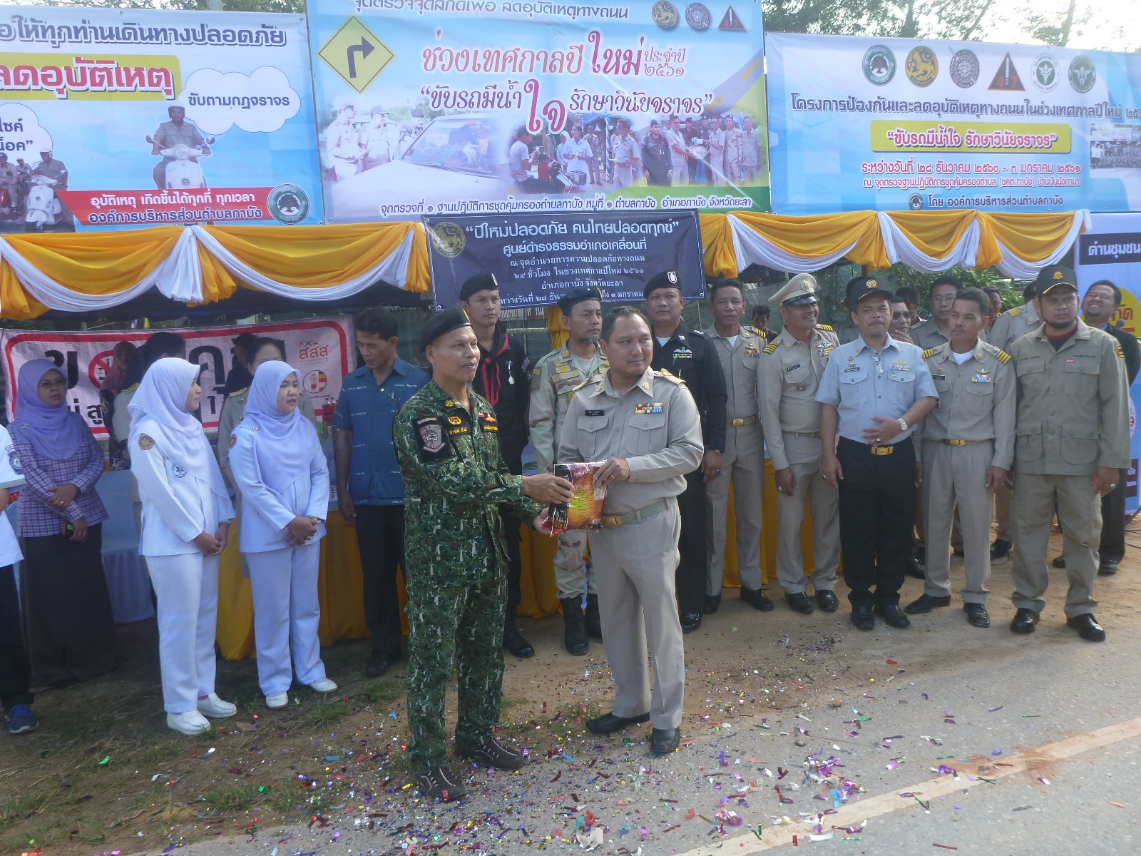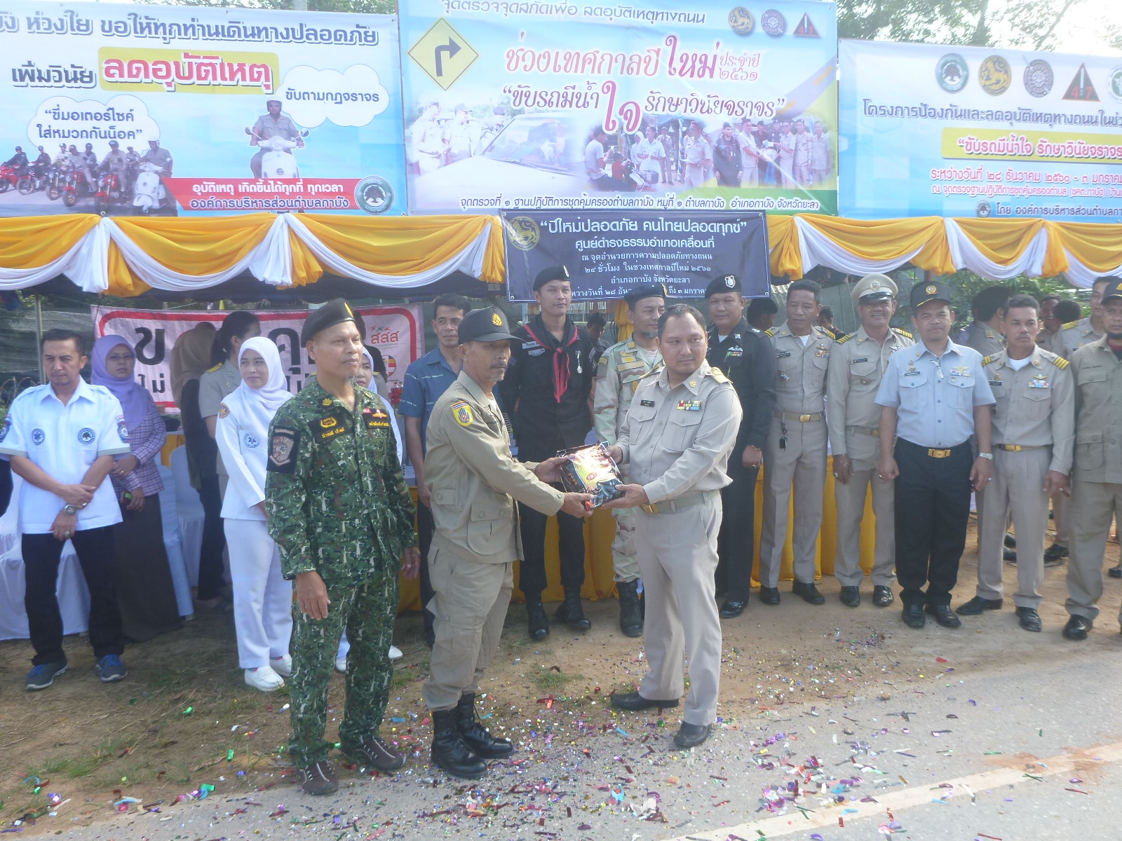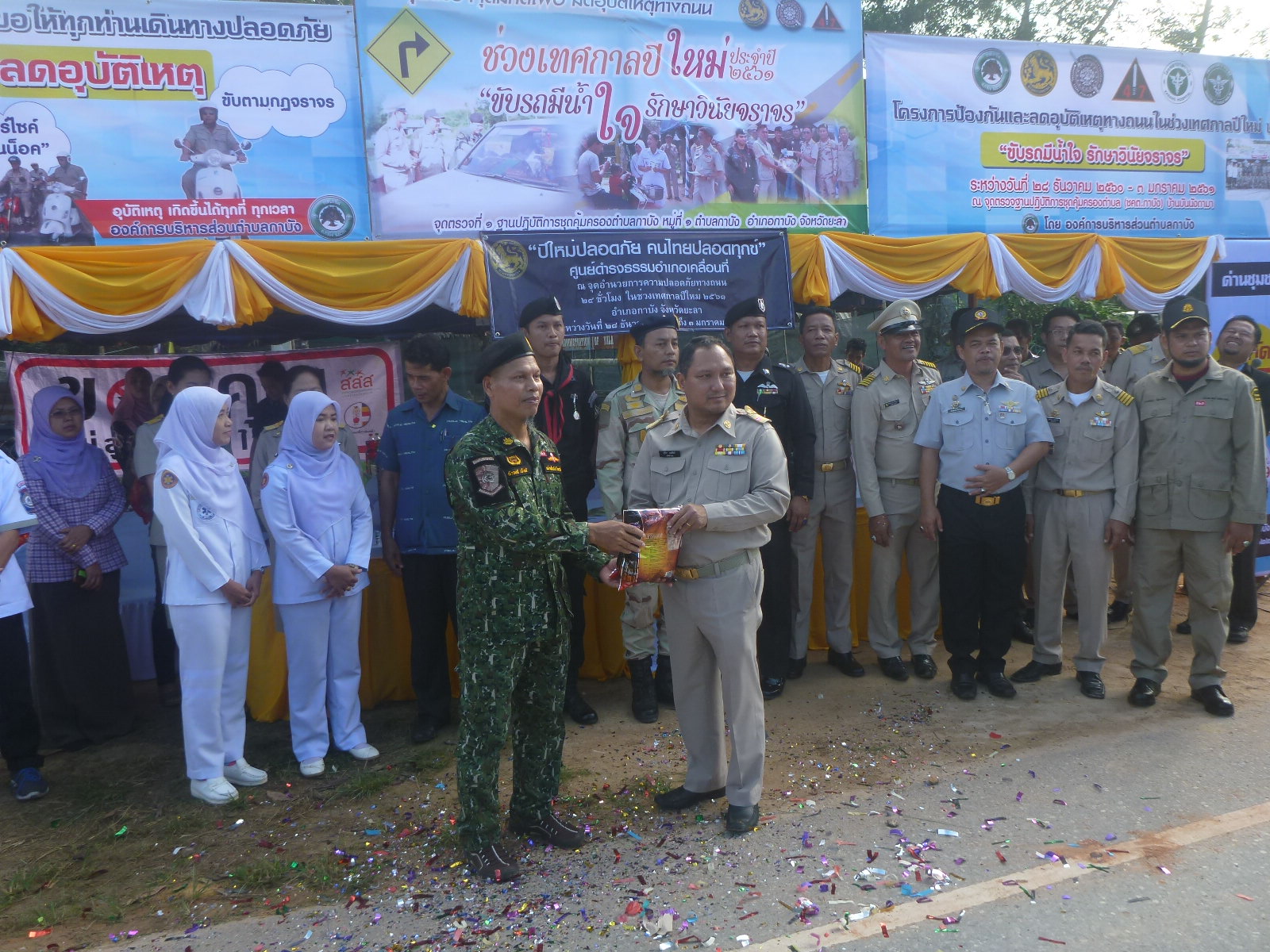 วันนี้ (28 ธันวาคม 2560) เวลา 08.30 น. เจ้าหน้าที่หน่วยฯ ยล.1 (กาบัง) เข้าร่วมพิธีเปิดจุดตรวจจุดสกัดเพื่อลดอุบัติเหตุทางถนนช่วงเทศกาลปีใหม่ 2561 และมอบสิ่งของให้กับเจ้าหน้าที่ประจำจุดตรวจ ณ จุดตรวจฐานปฎิบัติการคุ้มครองตำบล (ชคต.กาบัง) อ.กาบัง จ.ยะลา โดยมีนายสุริยา บุณพันธ์ ปลัดอวุโส อำเภอกาบัง เป็นประธานเปิดพิธี