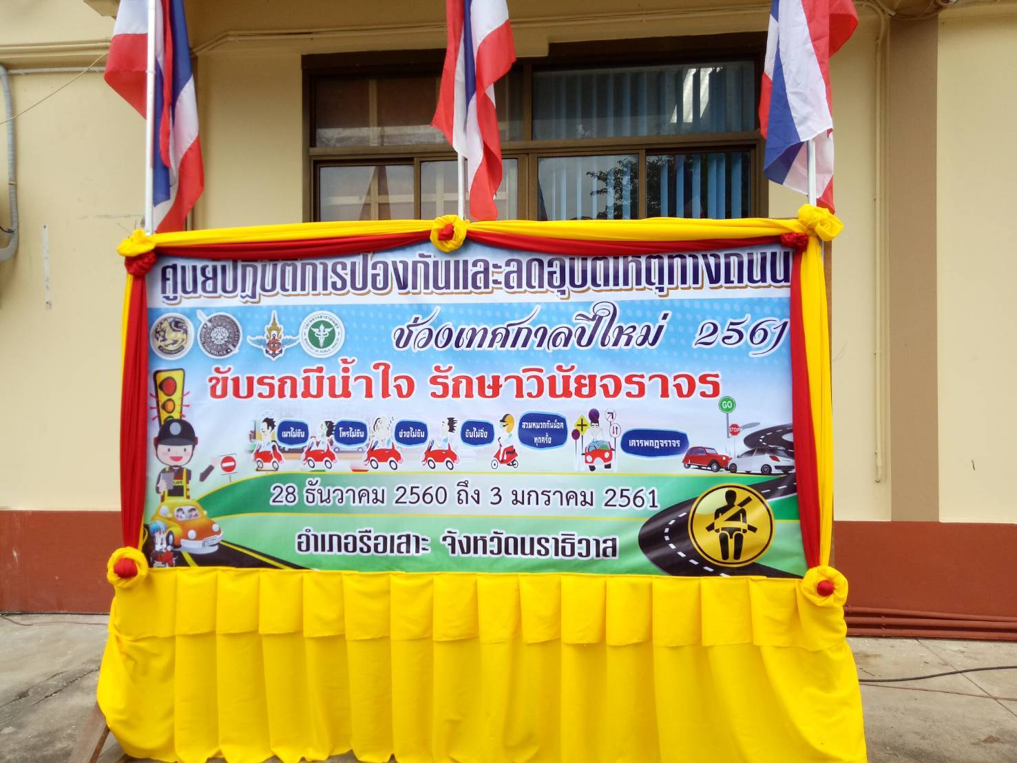 วันนี้(28/12/60) หน่วยฯ นธ.2 (รือเสาะ) รวมในพิธีเปิดศูนย์ปฏิบัติการป้องกันและลดอุบัติเหตุทางถนน ในช่วงเทศกาลปีใหม่ 2561 โดยมีนายวิชาญ ชัยเศรษฐสัมพันธ์ นายอำเภอรือเสาะ เป็นประธาน
