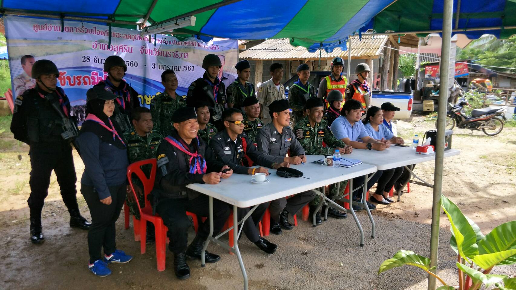 วันนี้ 31/12/60 เวลา 09.00 น.เป็นต้นไป จนท.หน่วยฯ นธ.5( แว้ง-สุคิริน) เข้าร่วมกิจกรรมรณรงค์ป้องกันและลดอุบัติเหตุทางถนน ในช่วงเทศกาลปีใหม่ 2561 “ขับรถมีน้ำใจ รักษาวินัยจราจร” ระหว่าง วันที่ 28 ธ.ค.60-3 ม.ค.61 ณ บริเวณจุดตรวจสามแยกเกียร์ ม.1 ต.เกียร์ อ.สุคิริน จ.นราฯ ในการนี้ หน่วยฯได้มอบกาแฟให้แก่เจ้าหน้าที่ที่ปฏิบัติงานประจำจุดตรวจด้วย