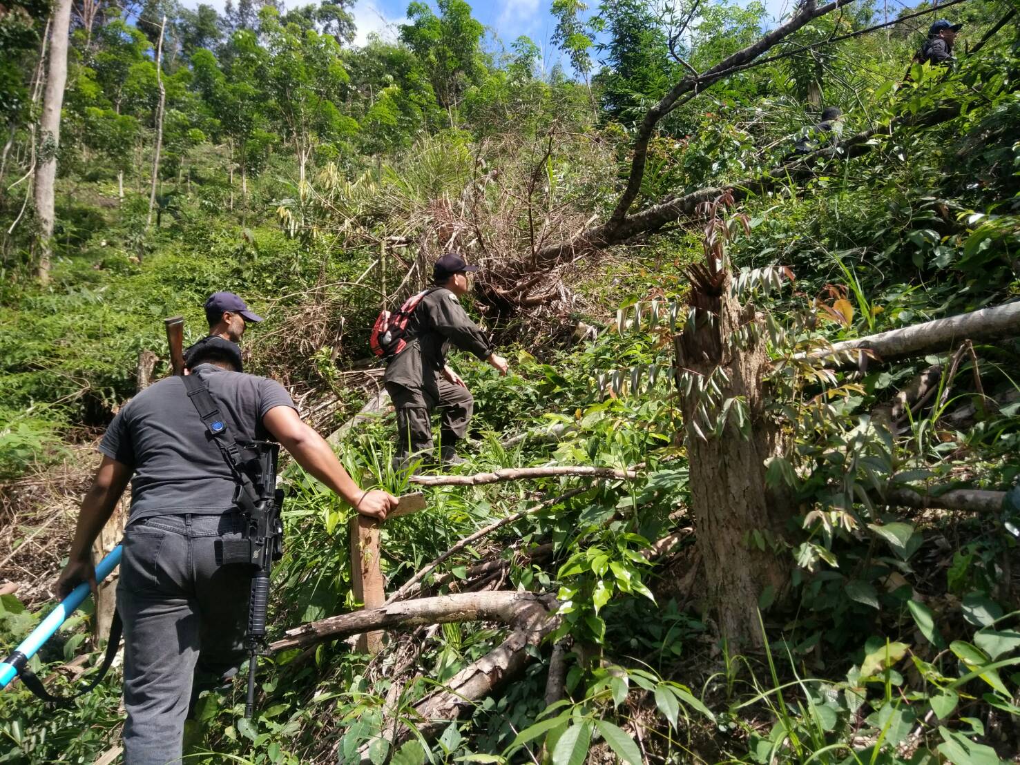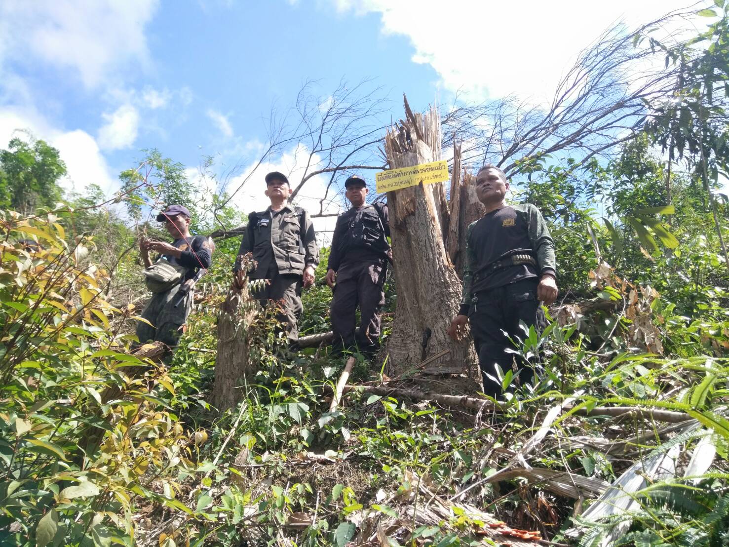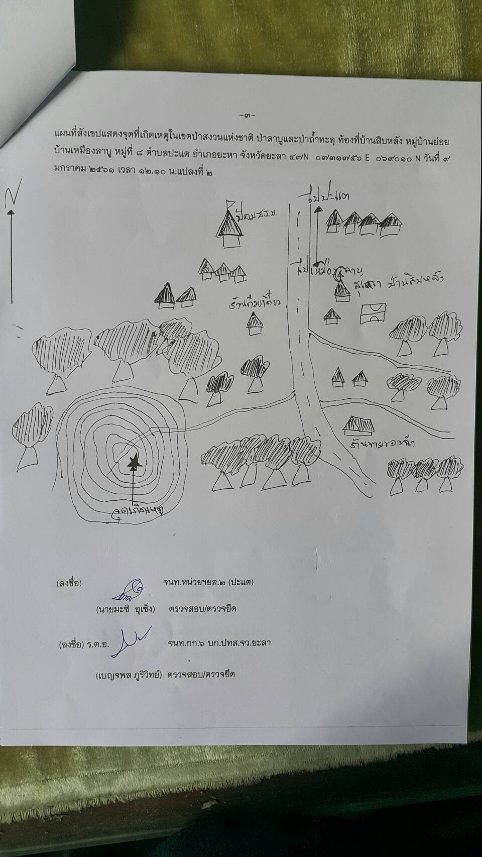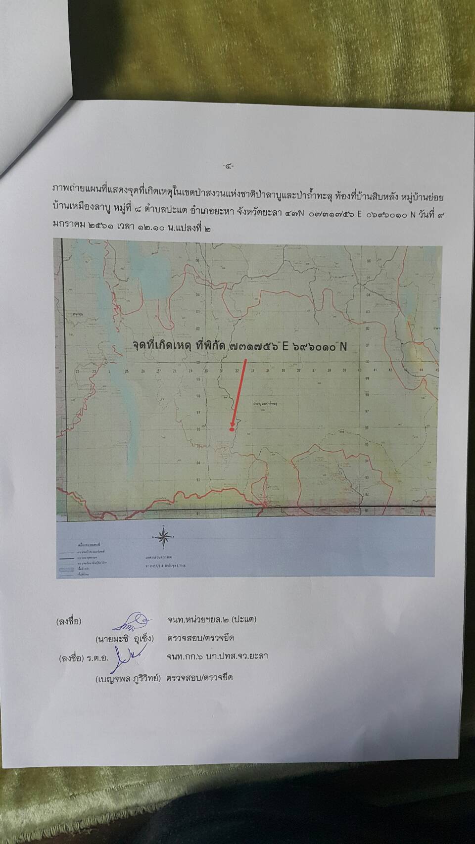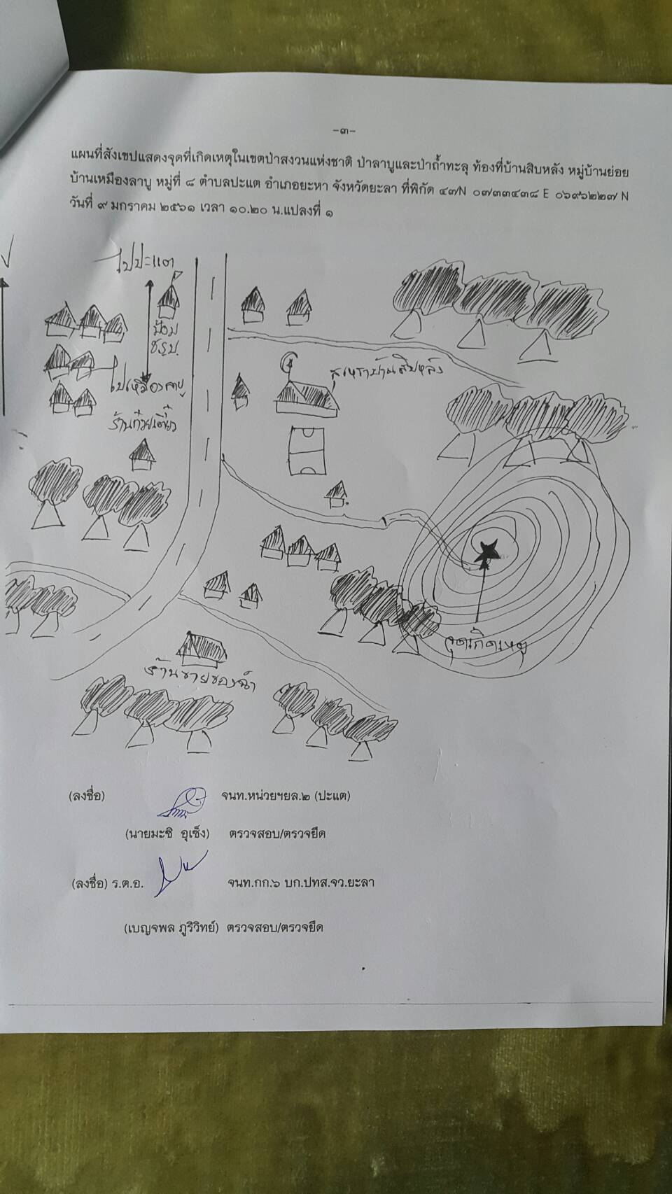 วันนี้ ๙ ม.ค.๖๑ คณะเจ้าหน้าที่หน่วยฯยล.๒(ปะแต)พร้อมด้วยเจ้าหน้าที่ สายตรวจฯ กก.๖ กก.ปทส.จ.ยะลา เจ้าหน้าที่ตำรวจ สภ.ปะแต และเจ้าหน้าที่ ผรส.บ้านเหมืองลาบู ได้ร่วมกันออกตรวจปราบปรามการกระทำผิดกฏหมายป่าไม้ตามโครงการเพิ่มประสิทธิภาพด้านการป้องกันปราบปรามการบุกรุกและทำลายทระพยากรธรรมชาติ กอ.รมน.จ.ยะลา ในเขตป่าสงวนแห่งชาติ ป่าลาบูและป่าถำ้ทะลุ ท้องที่บ้านสิบหลัง หมู่บ้านย่อยบ้านเหมืองลาบู ม.๘ ต.ปะแต อ.ยะหา จ.ยะลา ตรวจพบพื้นที่ป่าถูกบุกรุกทำลาย จำนวน ๒ จุด จุดที่ ๑ เนื้อที่ ๑-๑-๒๘ ไร่ ที่ พิกัด ๔๗N ๐๗๓๓๔๓๘ E ๐๖๙๖๒๔๑ N จุดที่ ๒ เนื้อที่ ๑๓-๐-๔๘ ไร่ ที่พิกัด ๔๗N ๐๗๓๑๗๕๖ E ๐๖๙๖๐๑๐ N ซึ่งหน่วยฯได้แจ้งความร้องทุกข์ต่อพนักงานสอบสวน สภ.ปะแต ไว้แล้ว จุดที่ ๑ ตาม ปจว.ข้อ ๓ เวลา ๑๖.๐๐น.คดีที่ ๓/๒๕๖๑ ลงวันที่ ๙ ม.ค.๖๑ และจุดที่ ๒ ตาม ปจว.ข้อที่ ๔ เวลา ๑๖.๓๐ น. คดีที่ ๔/๒๕๖๑ ลงวันที่ ๙ ม.ค.๖๑
