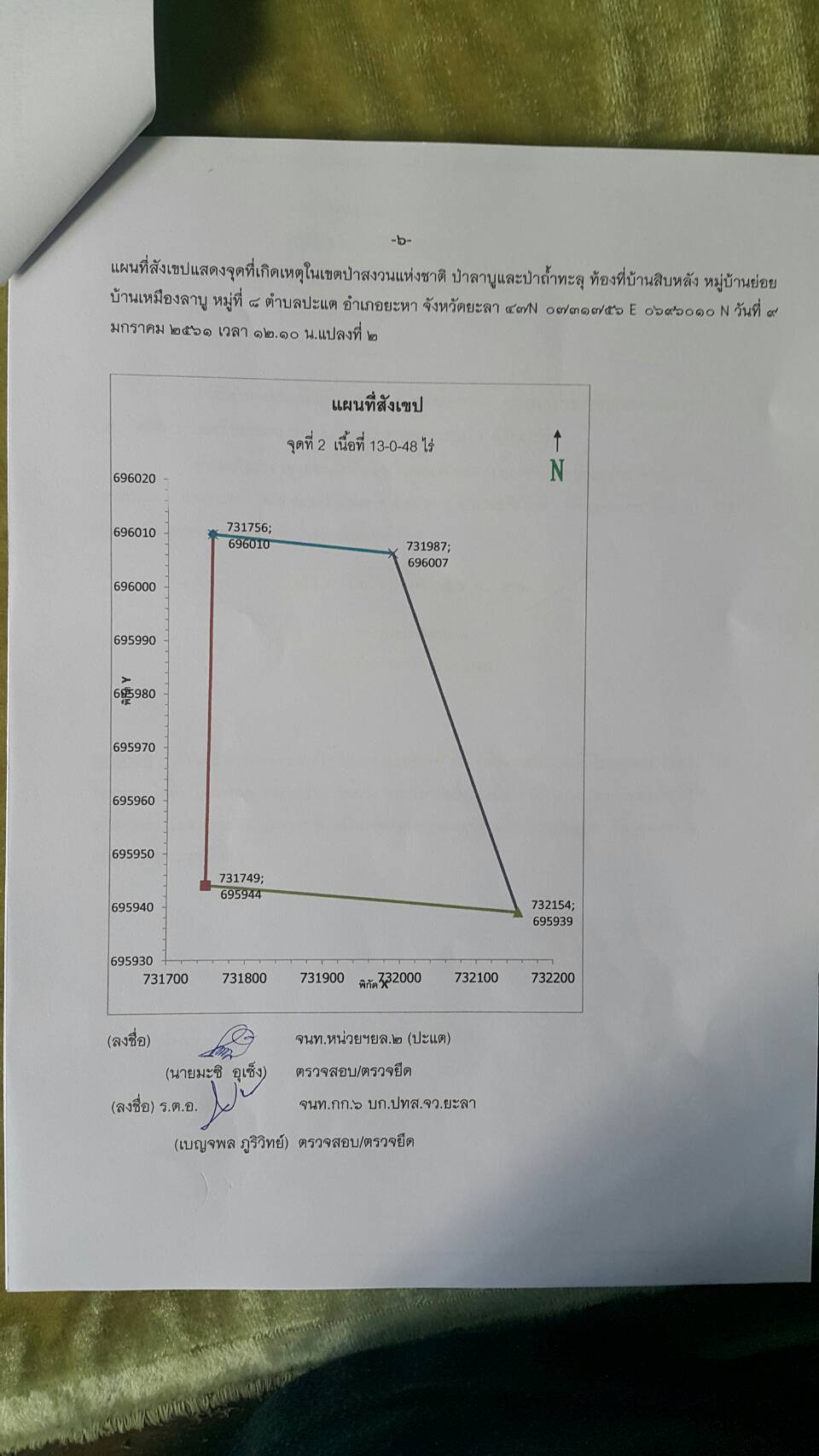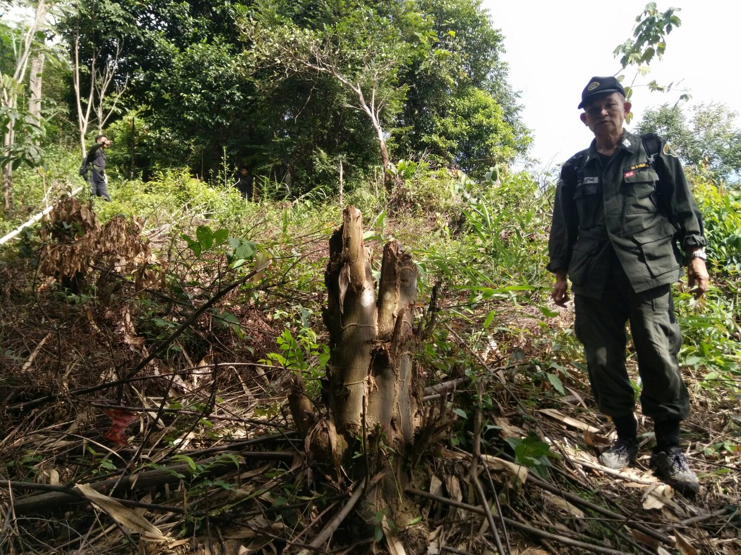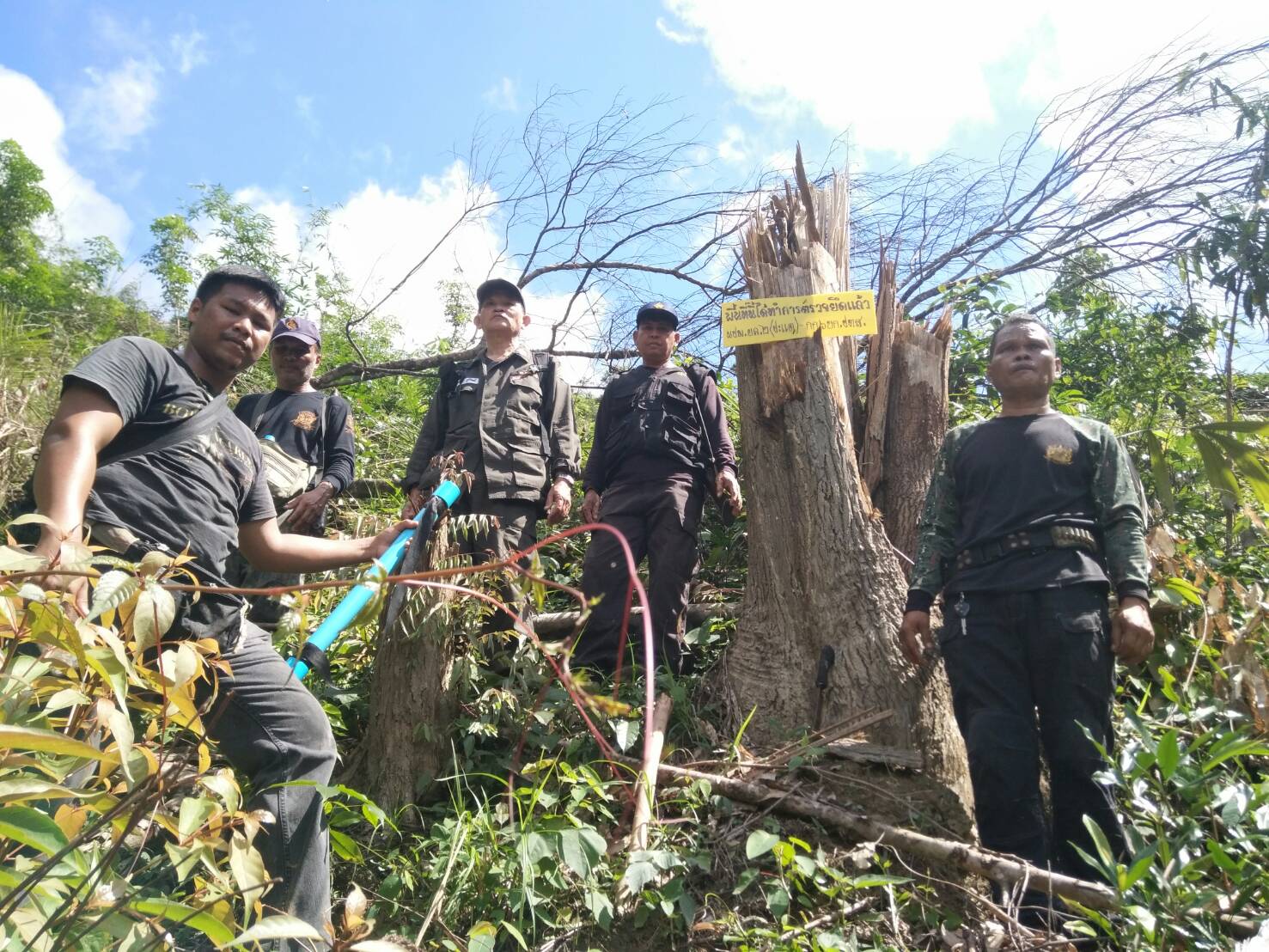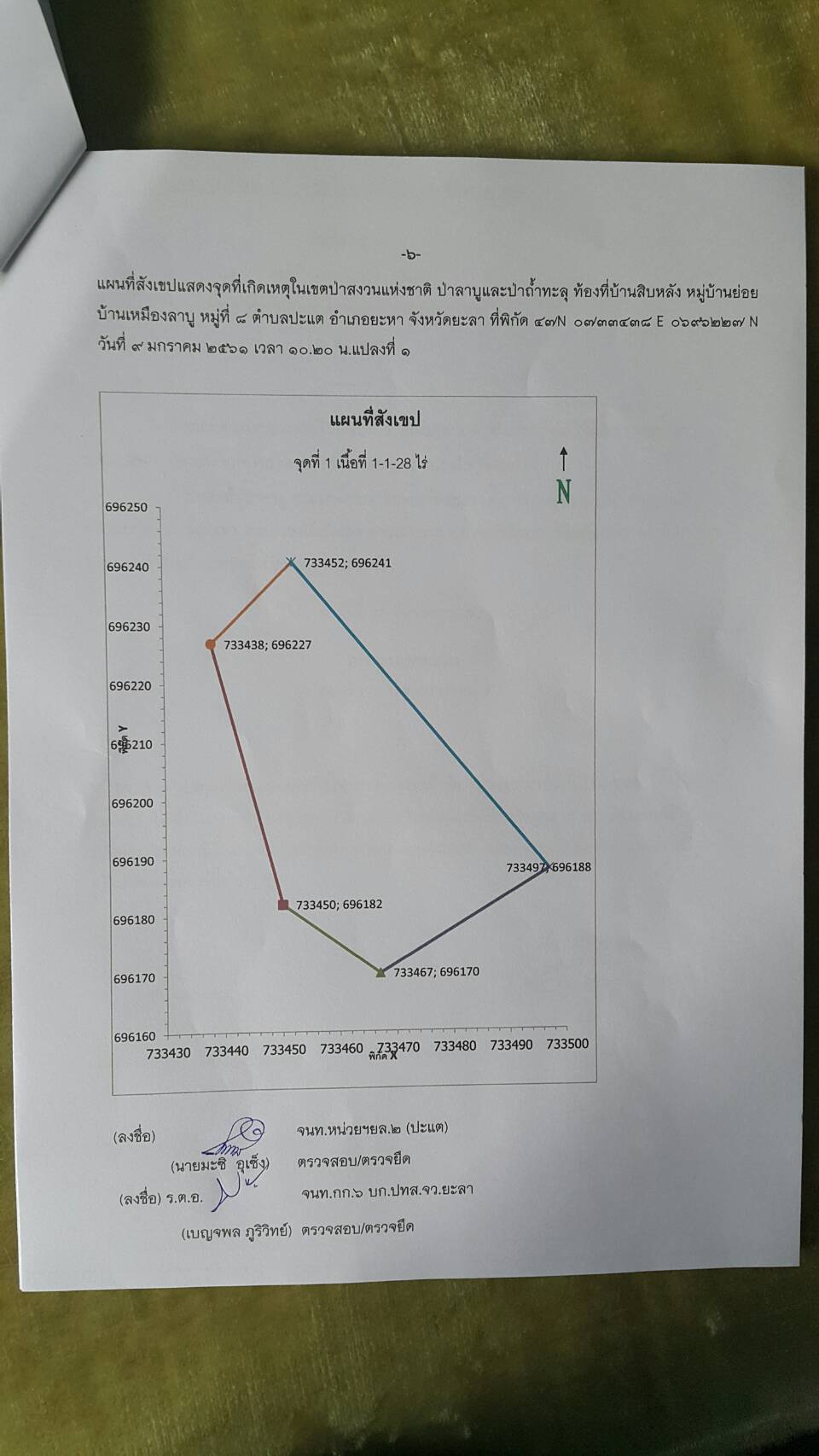 วันนี้ ๙ ม.ค.๖๑ คณะเจ้าหน้าที่หน่วยฯยล.๒(ปะแต)พร้อมด้วยเจ้าหน้าที่ สายตรวจฯ กก.๖ กก.ปทส.จ.ยะลา เจ้าหน้าที่ตำรวจ สภ.ปะแต และเจ้าหน้าที่ ผรส.บ้านเหมืองลาบู ได้ร่วมกันออกตรวจปราบปรามการกระทำผิดกฏหมายป่าไม้ตามโครงการเพิ่มประสิทธิภาพด้านการป้องกันปราบปรามการบุกรุกและทำลายทระพยากรธรรมชาติ กอ.รมน.จ.ยะลา ในเขตป่าสงวนแห่งชาติ ป่าลาบูและป่าถำ้ทะลุ ท้องที่บ้านสิบหลัง หมู่บ้านย่อยบ้านเหมืองลาบู ม.๘ ต.ปะแต อ.ยะหา จ.ยะลา ตรวจพบพื้นที่ป่าถูกบุกรุกทำลาย จำนวน ๒ จุด จุดที่ ๑ เนื้อที่ ๑-๑-๒๘ ไร่ ที่ พิกัด ๔๗N ๐๗๓๓๔๓๘ E ๐๖๙๖๒๔๑ N จุดที่ ๒ เนื้อที่ ๑๓-๐-๔๘ ไร่ ที่พิกัด ๔๗N ๐๗๓๑๗๕๖ E ๐๖๙๖๐๑๐ N ซึ่งหน่วยฯได้แจ้งความร้องทุกข์ต่อพนักงานสอบสวน สภ.ปะแต ไว้แล้ว จุดที่ ๑ ตาม ปจว.ข้อ ๓ เวลา ๑๖.๐๐น.คดีที่ ๓/๒๕๖๑ ลงวันที่ ๙ ม.ค.๖๑ และจุดที่ ๒ ตาม ปจว.ข้อที่ ๔ เวลา ๑๖.๓๐ น. คดีที่ ๔/๒๕๖๑ ลงวันที่ ๙ ม.ค.๖๑