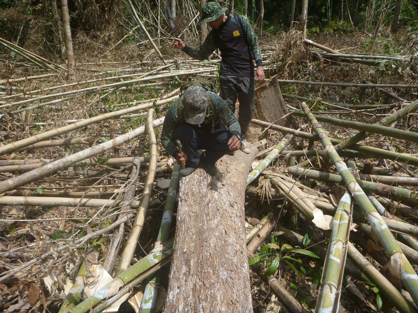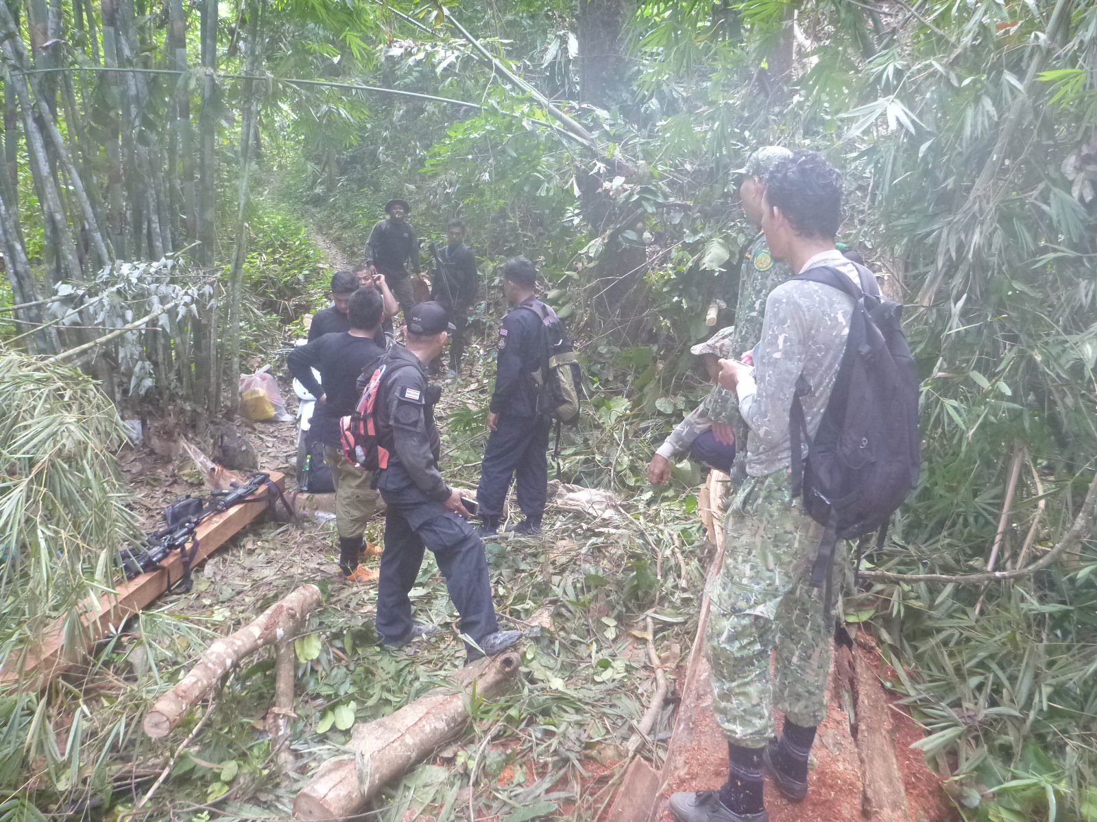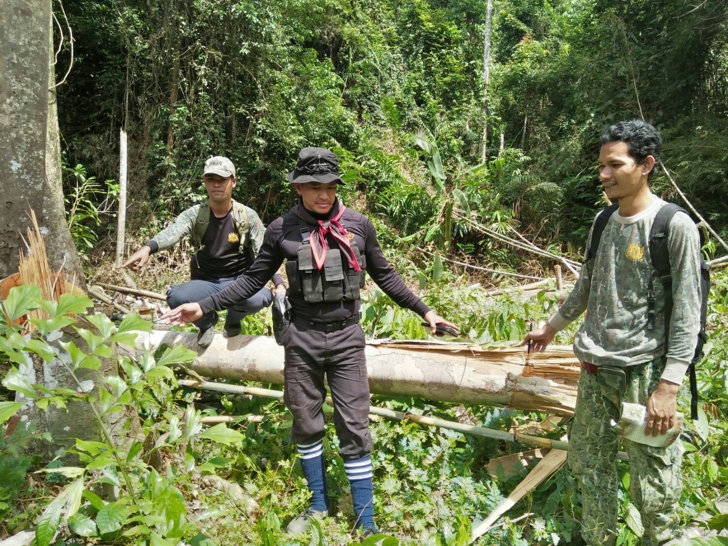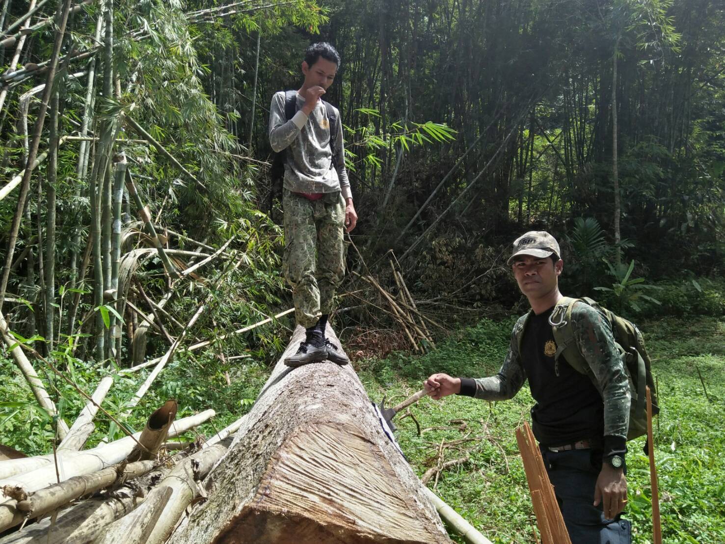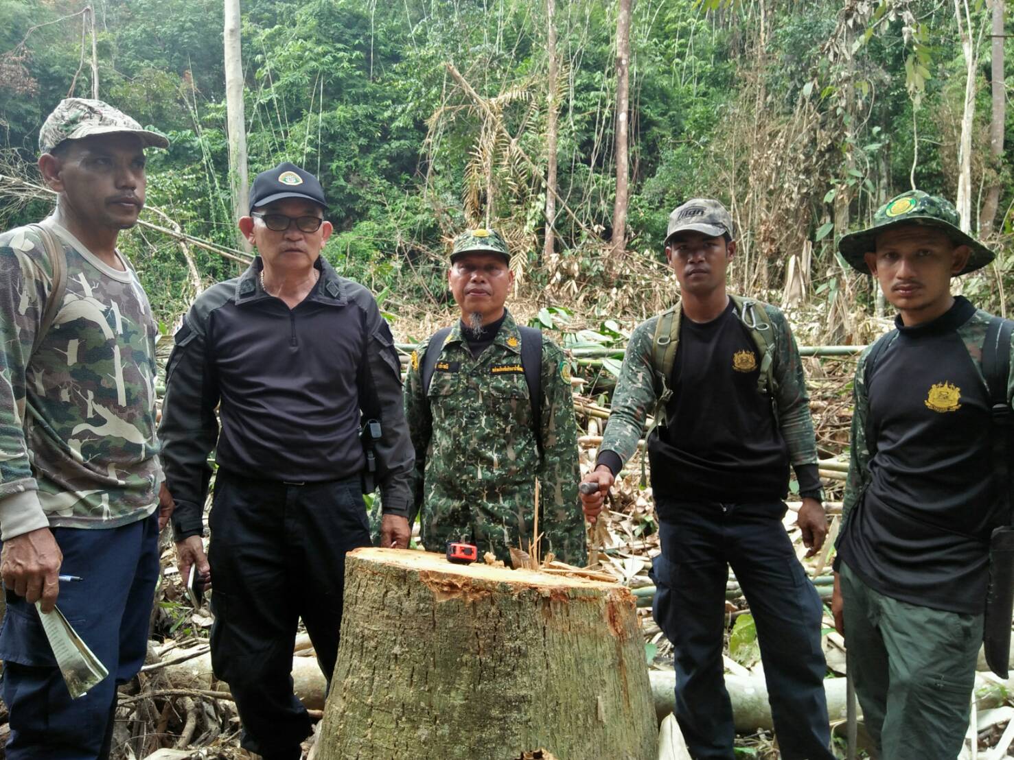 วันนี้ที่ 23 มกราคม 2561 เวลา 08.30 น. – 16.00 น. คณะเจ้าหน้าที่หน่วยป้องกันรักษาป่าที่ ยล.1 (กาบัง) ร่วมกับ เจ้าหน้าที่ ฉก.ตชด.๔๔, เจ้าหน้าที่ กก.สส.1 บก.สส. จชต. ,จนท.สายตรวจ กก.๖ บก.ปทส.ประจำ จว.ยะลา เจ้าหน้าที่ อส.อ.กาบัง จ.ยะลา และเจ้าหน้าที่ทหารพรานที่ 4709 ได้ร่วมกันตรวจสอบพบพื้นที่ป่าถูกบุกรุกแผ้วถาง ตามโครงการเพิ่มประสิทธิภาพด้านการป้องกันและปราบปรามการบุกรุกทำลายทรัพยากรธรรมชาติ กอ.รมน.จ.ยะลา ในเขตพื้นที่ป่าสงวนแห่งชาติป่ากาบัง ท้องที่บ้านแยะใน ม.5 และท้องที่บ้านคลองอูด หมูบ้านย่อยบ้านใหม่ ม.6 บาละ อ.กาบัง จ.ยะลา จำนวน 2 จุด จุดที่ 1 ตรวจพบจุดตัดต้นไม้จำนวน 1 ต้น พบไม้ท่อน จำนวน 2 ท่อน ปริมาตร 9.40 ลบ.ม. และพบไม้กำลังแปรรูป จำนวน 4 ชิ้น/แผ่น ปริมาตร 0.73 ลบ.ม. ไม้ของกลางทิ้งไว้ในที่เกิดเหตุ มีขนาดใหญ่ไม่สามารถขนย้ายได้ ปล่อยให้ผุพังไปตามสภาพธรรมชาติ ที่พิกัด 47 N 0720445 E, 0706076 N ตรวจพบอุปกรณ์การกระทำผิด จำนวน 12 รายการ คือ 1.เป้สีดำ จำนวน 1 ใบ, 2.โซ่เครื่องเลื่อยโซ่ยนต์ จำนวน 2 เส้น (อยู่ในเป้สีดำ) ,3.ตลับเมตร สีเหลือง จำนวน 1 อัน (อยู่ในเป้สีดำ) ,4.แกลลอนน้ำมัน ทูที สีเขี่ยว จำนวน 1 แกลลอน (อยู่ในเป้สีดำ) ,5.ตะใบกลมจำนวน 1 อัน (อยู่ในเป้สีดำ) ,6.บล๊อกหัวเทียน จำนวน 1 อัน (อยู่ในเป้สีดำ) ,7.แกลลอนน้ำมัน สีแดง จำนวน 1 ใบ ,8.แกลลอนน้ำมัน สีเหลือง จำนวน 1 ใบ ,9.กางเกง สีขาว จำนวน 1 ตัว ,10.สะเต๊า ตีเส้น สีส้ม จำนวน 1 อัน ,11.กระเป๋าสะพาย สีลายจำนวน 1 ใบ (ภายในบรรจุผ้า) และ,12.เชือกแบน จำนวน 1 เส้น เวลา 11.30 น., จุดที่ 2 พื้นที่ถูกบุกรุกแผ้วถาง เนื้อที่ประมาณ 2 ไร่ 0 งาน 17 ตารางวา และ ตรวจพบต้นไม้มีค่าชนิดไม้กระยาเลย จำนวน 6 ท่อน ปริมาตร 17.47 ลบ.ม.ไม้ของกลางทิ้งไว้ในที่เกิดเหตุให้ผุพังไปตามธรรมชาติ ที่พิกัด 47N 0715226 E , 0706345 N เวลา 14.30 น.,