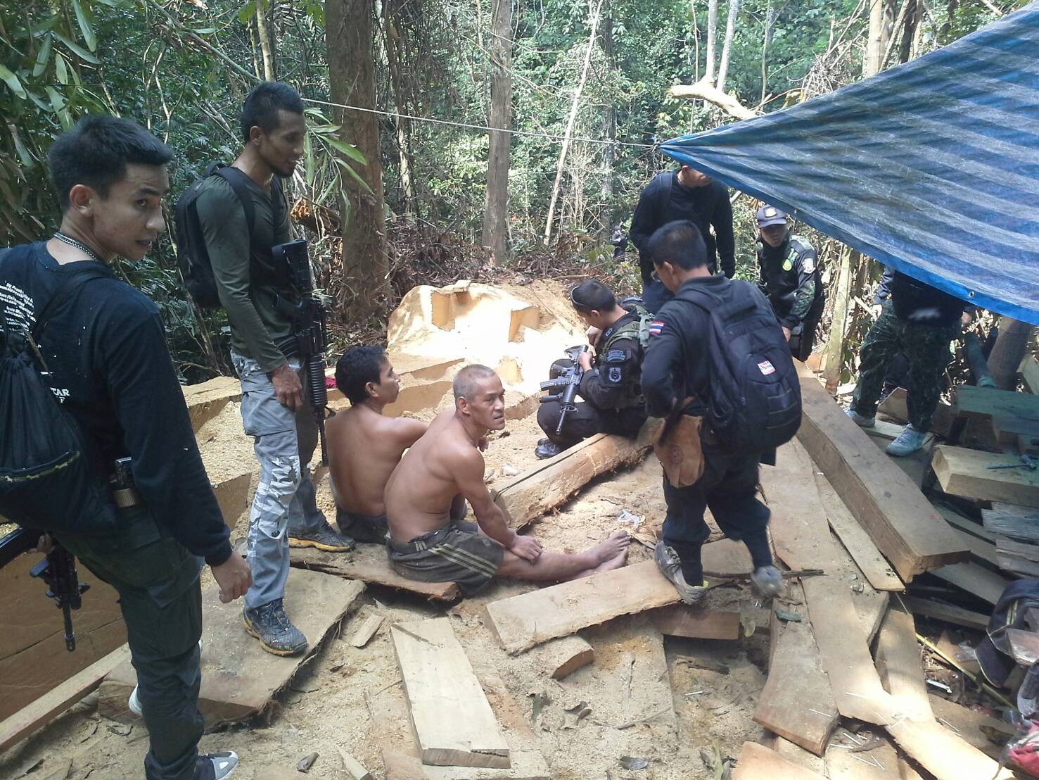 จนทหน่วยฯนธ.1 (กาหลง) จนทอช ชีโป จนท ตชด 44 จนททหาารพาราน 4916จนทฉกทหารพราน49ออกตรวจกระทำผิดกฎหมายป่าไม้ในท้องที่ไอสือดอ ม 1 ต ศรีบรรพบ อ.ศรีสาคร จ นราธิวาสได้ผู้ต้องหาจำนวน 2 คนกำลังเลือยไม้อยูรายละเอีอยส่งต่อไป