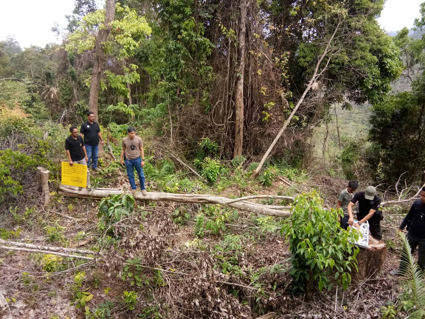 วันนี้ 9 มี.ค.61 เวลา 13.00 น. เป็นต้นไป จนท.หน่วยฯ ยล.3 (ลำพะยา,บันนังสตา,ฮาลา) ได้นำพนักงานสอบสวน สภ.บาตูตาโมง ไปตรวจสอบพื้นที่เกิดเหตุ เขตป่าสงวนแห่งชาติป่าลาบู-ป่าถ้ำะลุ ท้องที่ บ.บันนังบูโบ ม.3 ต.ถ้ำทะลุ อ.บันนังสตา จ.ยะลา ที่พิกัด 47N 0734361 E , 0690783 N และติดป้ายอายัด ตามคดี่ เมื่อวันที่ 6 มี.ค. 61 ตาม ปจว ข้อที่ 1 ลง 7 มี.ค. 61 เวลา 11.30 น. เลขคดีอาญาที่ 37/2561