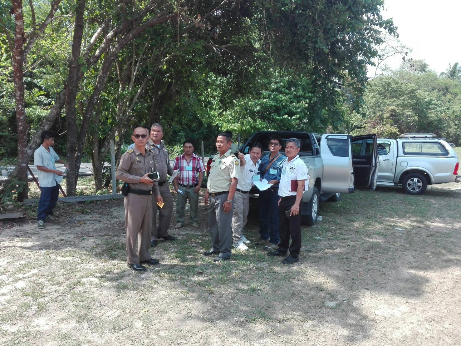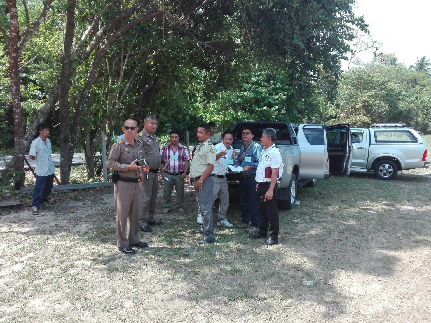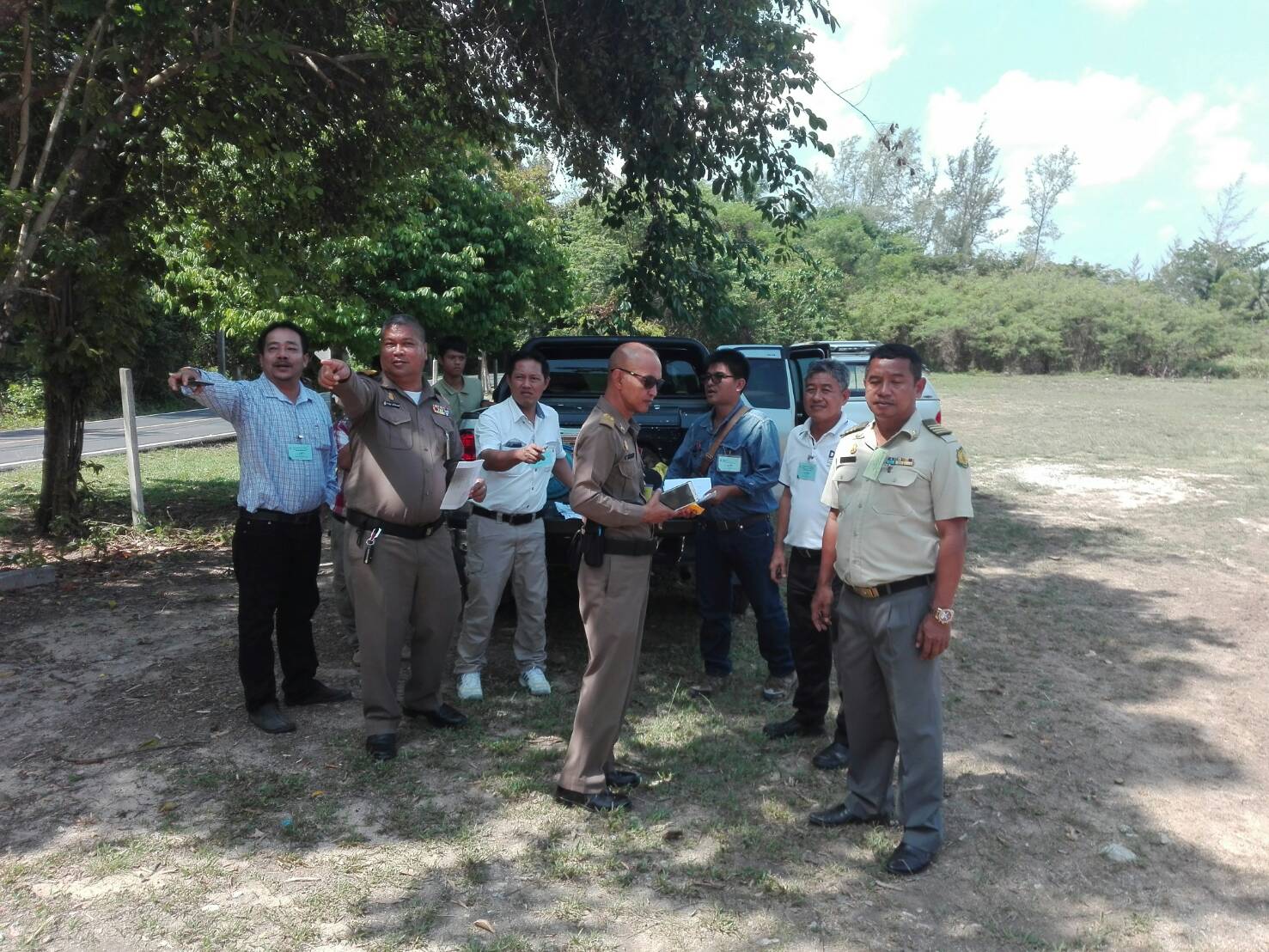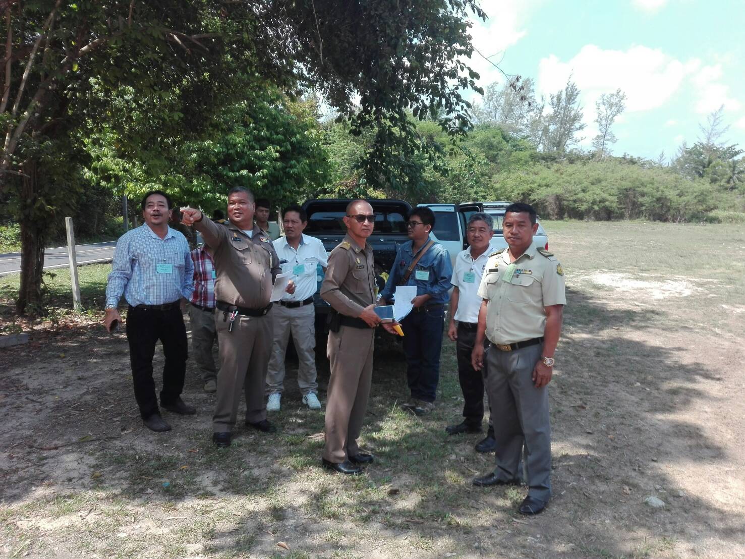 ผอ.ส่วนจัดการที่ดิน ไประวังชี้ร่วมกับเจ้าหน้าที่ที่ดิน เจ้าหน้าที่แขวงการทาง เจ้าหน้าที่ตำหนักทักษิณราชนิเวศน์เพื่อดำเนินการออกโฉนดของพระตำหนัก๚