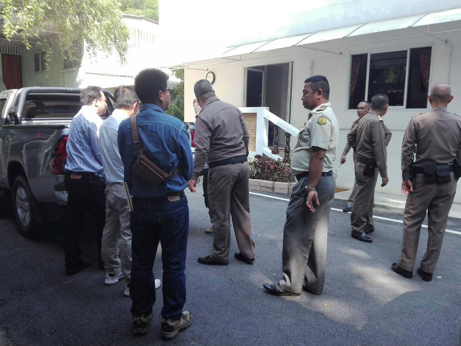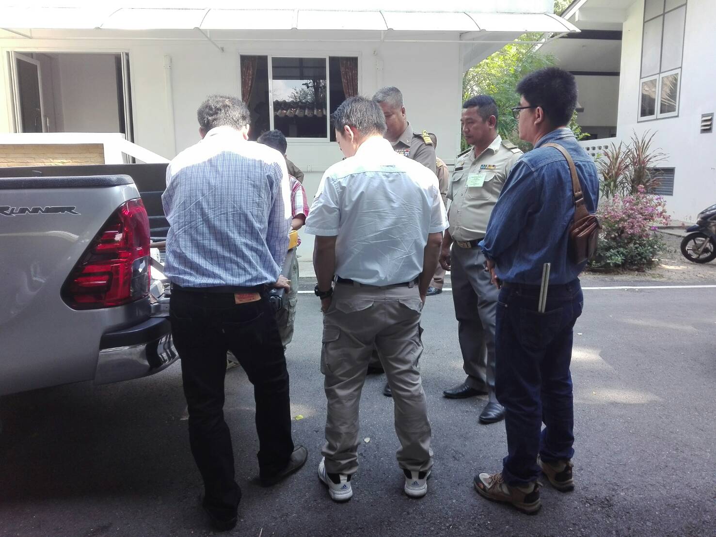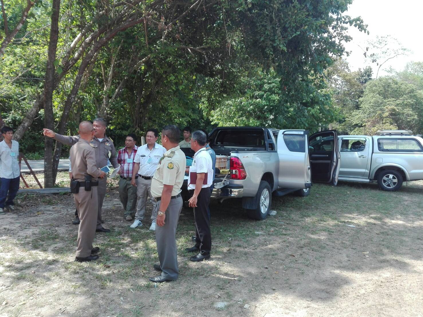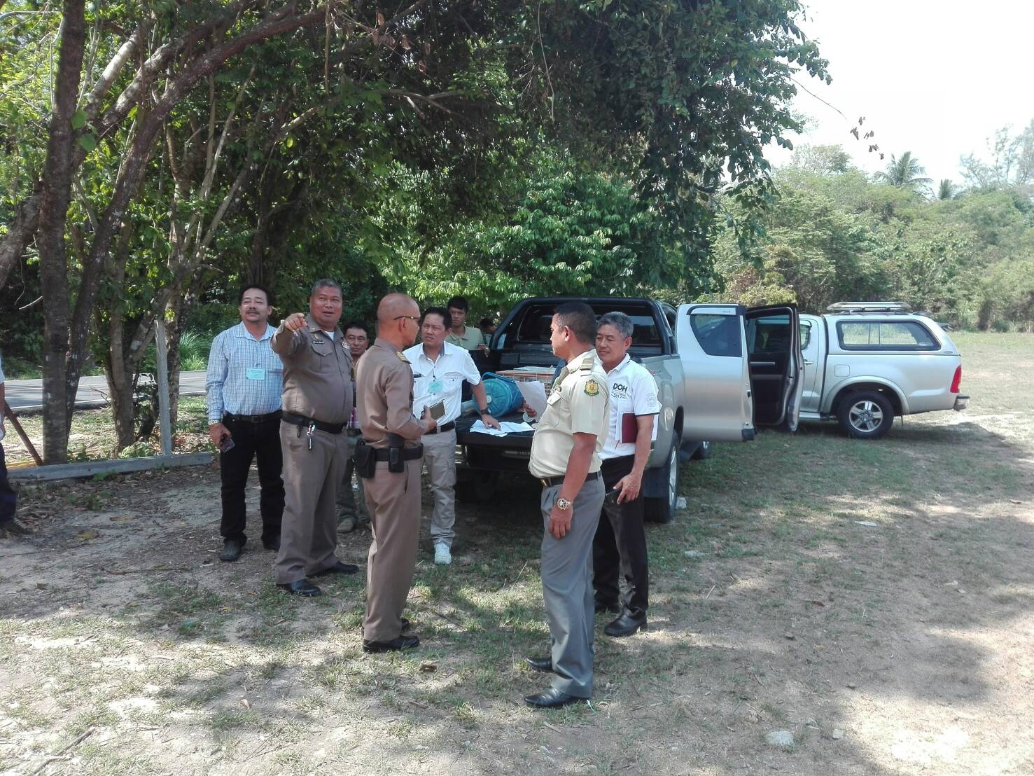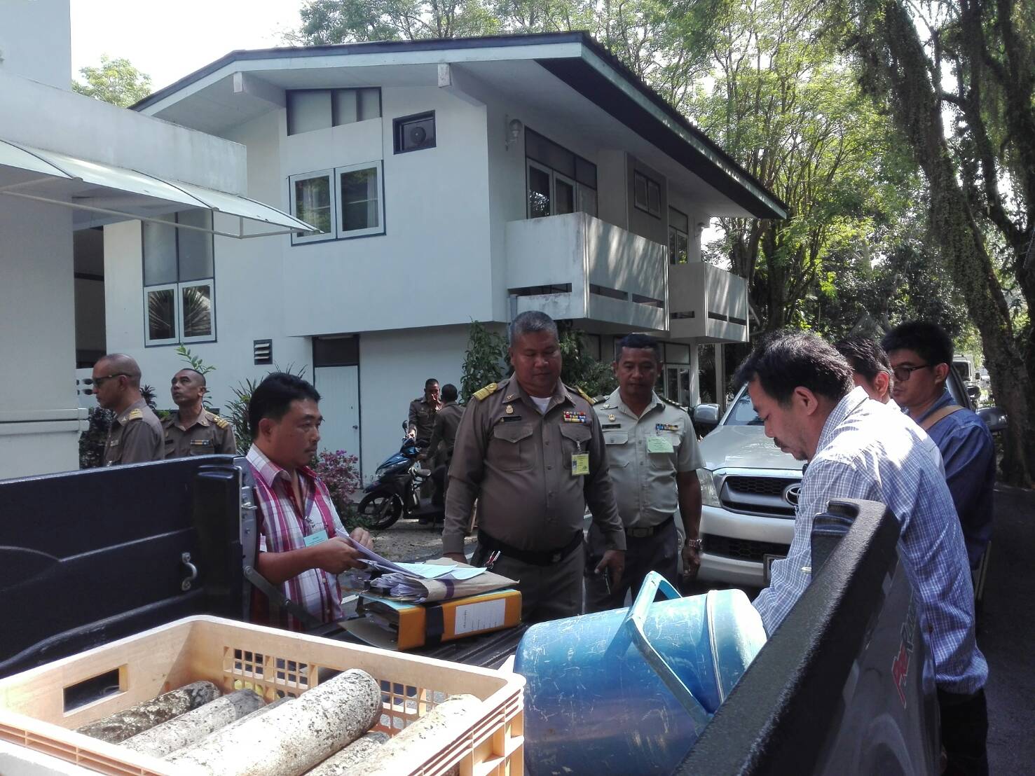 ผอ.ส่วนจัดการที่ดิน ไประวังชี้ร่วมกับเจ้าหน้าที่ที่ดิน เจ้าหน้าที่แขวงการทาง เจ้าหน้าที่ตำหนักทักษิณราชนิเวศน์เพื่อดำเนินการออกโฉนดของพระตำหนัก๚