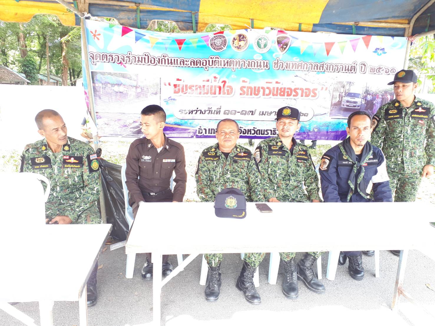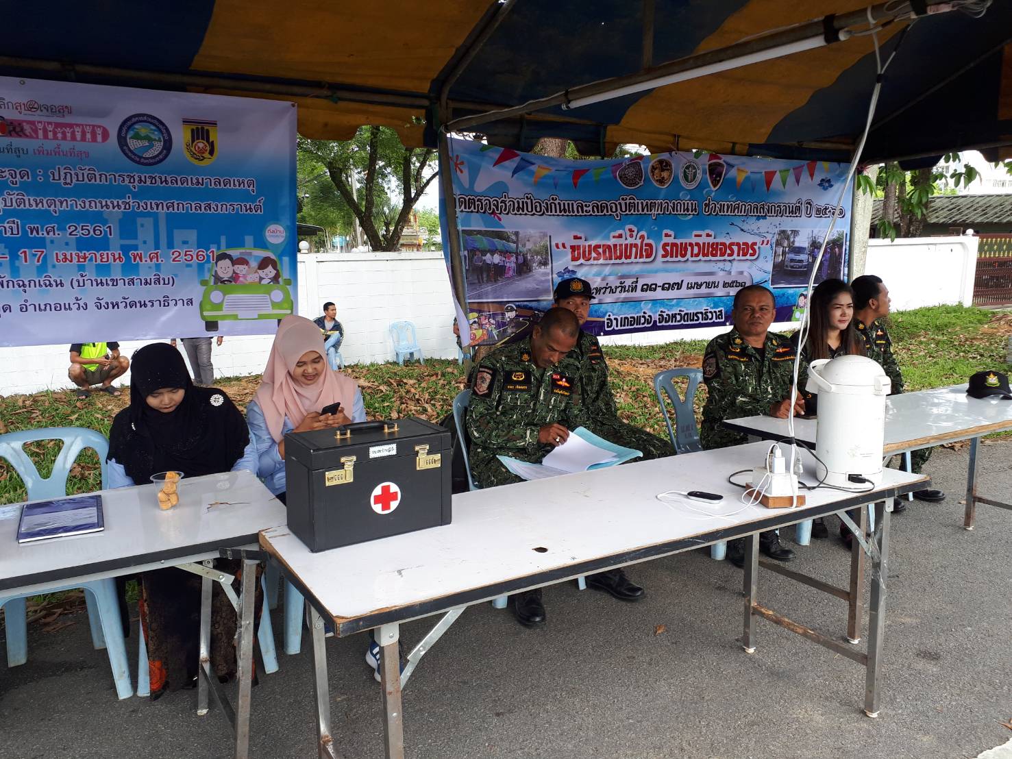 วันนี้ 12/04/61 เวลา 09.00 น. เป็นต้นไป จนท.หน่วยฯ นธ. 5(แว้ง-สุคิริน) เข้าร่วมอำนวยความสะดวกแก่ประชาชนประจำด่านตรวจ ช่วงเทศกาล สงกรานต์ 2561 “ขับรถมีน้ำใจ รักษาวินัยจราจร ระหว่างวันที่ 11-17 เมษายน 2561 ณ บริเวณจุดตรวจร่วมป้องกันและลดอุบัติเหตุทางถนน หน้าหน่วยเฉพาะกิจกรมทหารพรานที่ 11 ม. 9 ต. โละจูด อ. แว้ง จ. นราธิวาส โดยหน่วยฯได้มอบกาแฟขนมขบเคี้ยวให้แก่ จนท.ที่ปฎิบัติงานประจำด่านตรวจฯด้วย