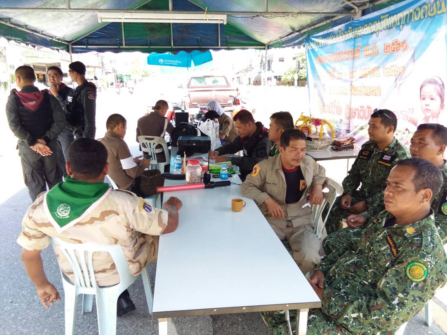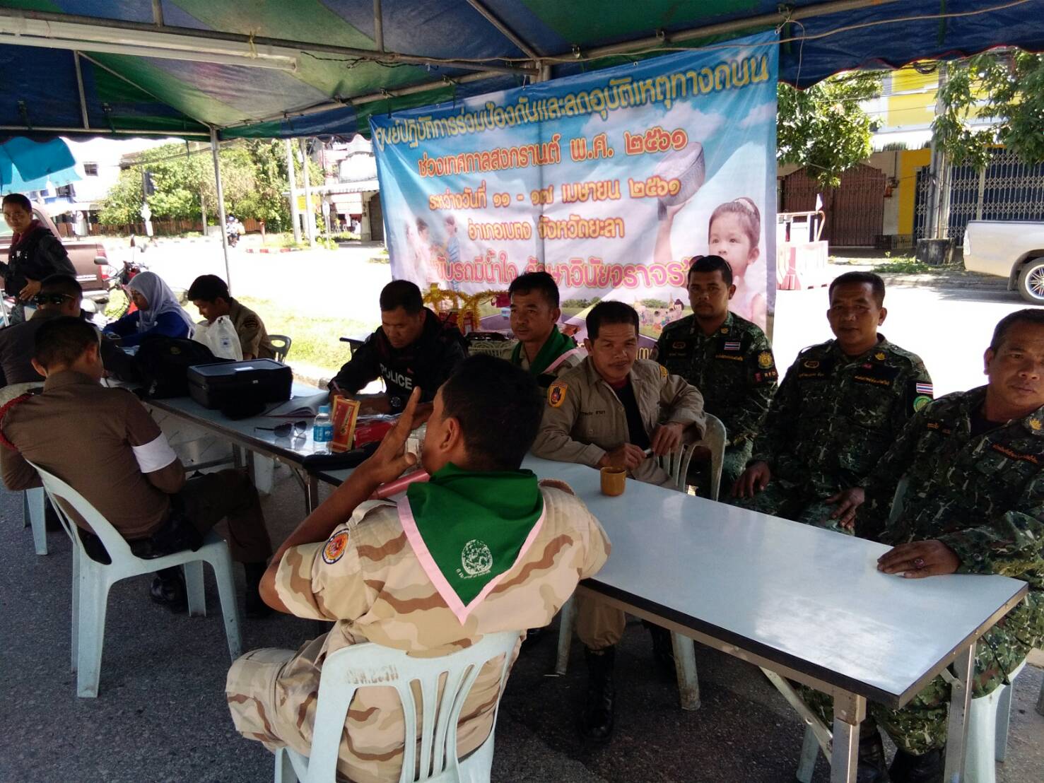 วันนี้ ๑๓ เมษายน ๒๕๖๑ เวลา๐๙.๐๐น.เป็นต้นไป เจ้าหน้าที่หน่วยฯ ยล.๔(บ่อน้ำร้อน-จันทรัตน์)ได้เข้าร่วมด่านตรวจในช่วงเทศกาลวันสงกรานต์ ๒๕๖๑ ” ขับรถมีน้ำใจ รักษาวินัยจราจร ” ระหว่างวันที่๑๑-๑๗ เมษายน ๒๕๖๑ ณ.จุดตรวจร่วมป้องกันและลดอุบัติเหตุทางถนนที่ป้อมตำรวจบ้านนาข่อย ตำบลยะรม อำเภอเบตง จังหวัดยะลา