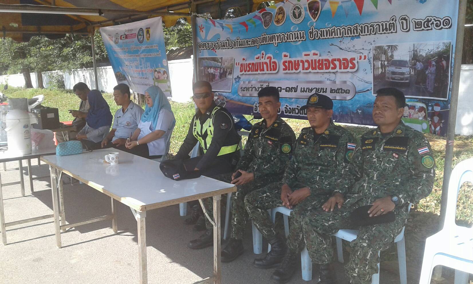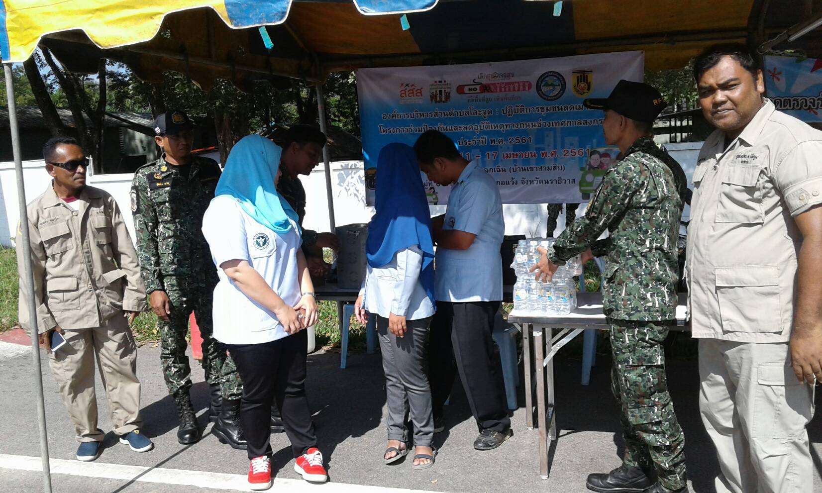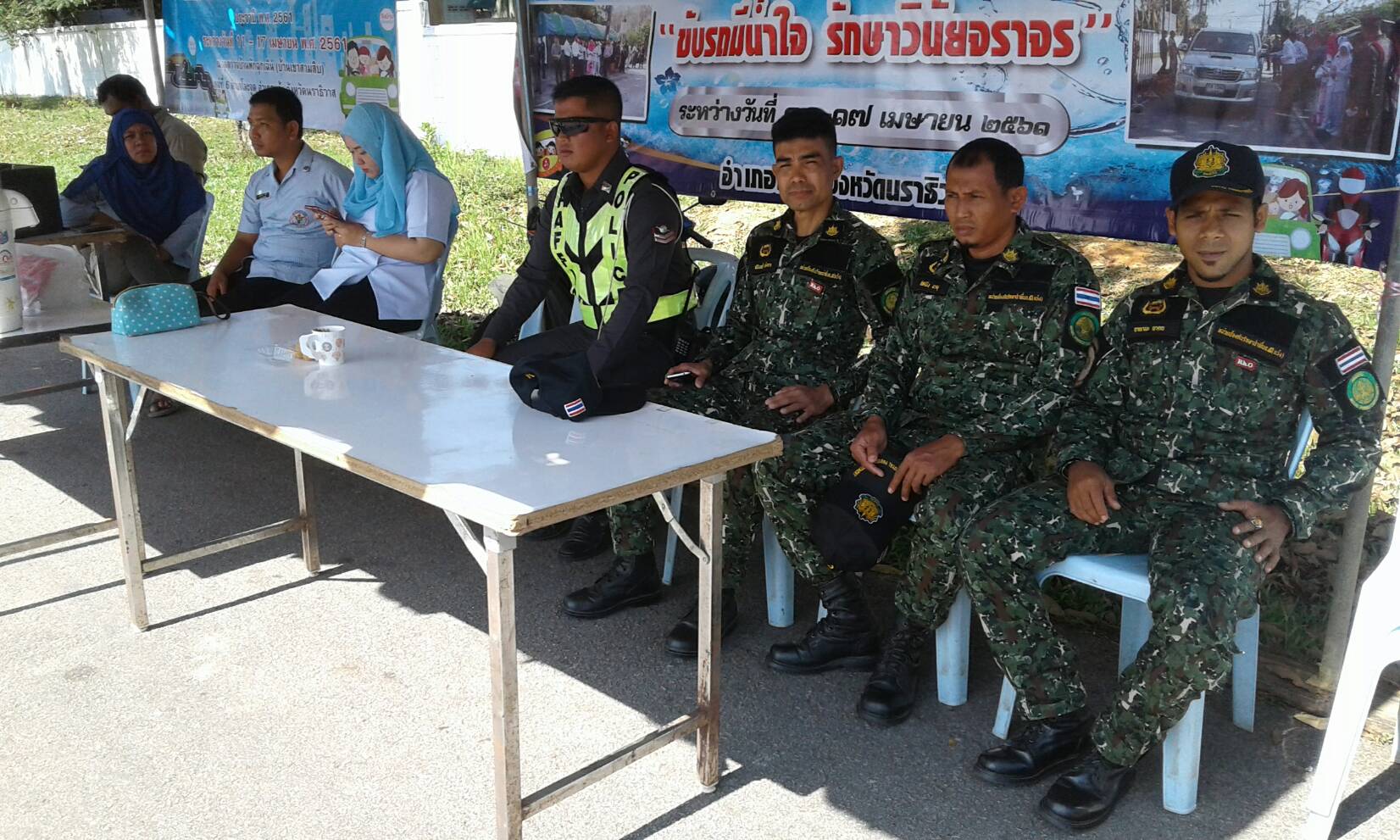 วันนี้ 13/04/61 เวลา 09.00 น. เป็นต้นไป จนท.หน่วยฯ นธ. 5(แว้ง-สุคิริน) เข้าร่วมอำนวยความสะดวกแก่ประชาชนประจำด่านตรวจ ช่วงเทศกาล สงกรานต์ 2561 “ขับรถมีน้ำใจ รักษาวินัยจราจร ระหว่างวันที่ 11-17 เมษายน 2561 ณ บริเวณจุดตรวจร่วมป้องกันและลดอุบัติเหตุทางถนน หน้าหน่วยเฉพาะกิจกรมทหารพรานที่ 11 ม. 9 ต. โละจูด อ. แว้ง จ. นราธิวา