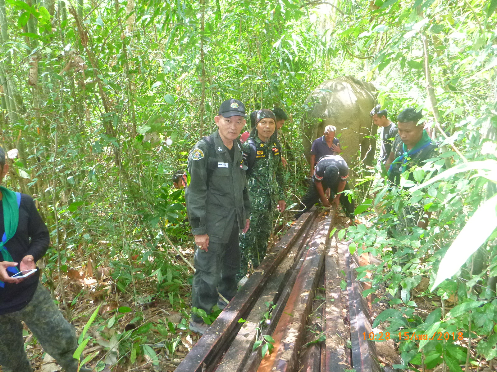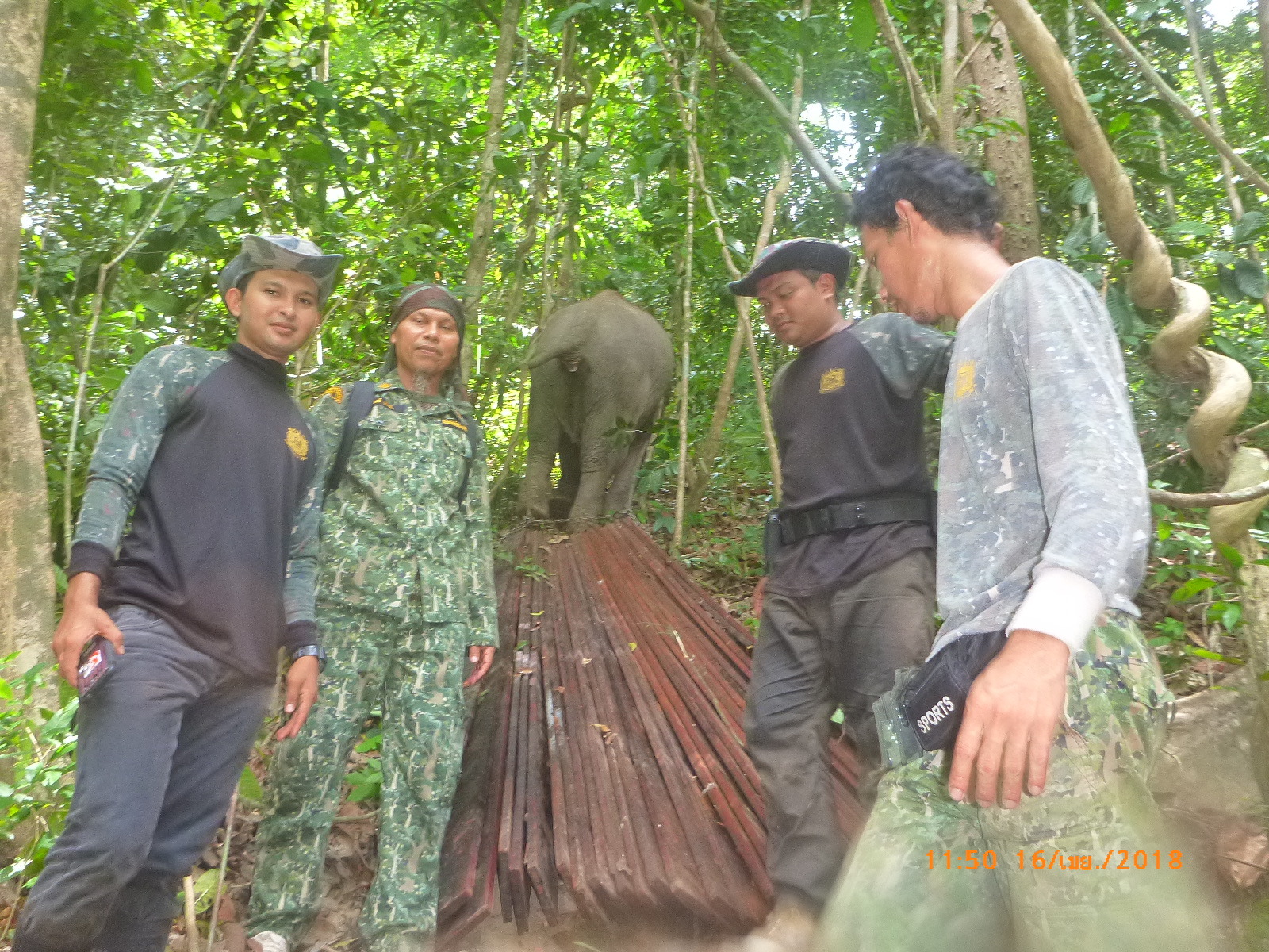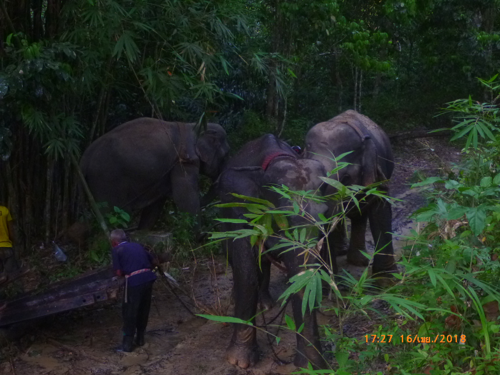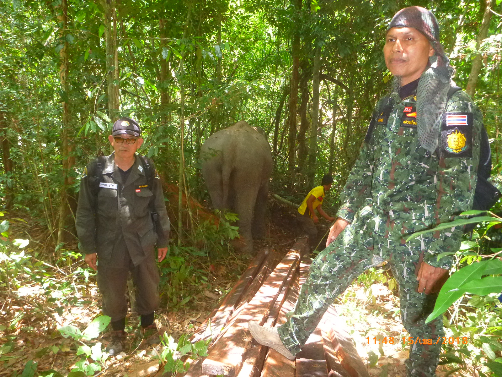 วันที่ 15-16 เมษายน 2561 เวลา 08.30 น.- 18.00 น. เจ้าหน้าที่หน่วยป้องกันรักษาป่าที่ ยล.1 (กาบัง) ร่วมกับ เจ้าหน้า (ศปป.4) ภาคใต้ กรมป่าไม้ ,เจ้าหน้าที่ สายตรวจ กก.๖ บก.ปทส.ประจำ จว.ยะลา,เจ้าหน้าที่ อส.อ.กาบัง , และเจ้าหน้าที่ ทหารพรานที่ 4709 , ได้นำช้าง จำนวน 3 เชือก ทำการขนย้ายไม้แปรรูป ในพื้นที่เกิดเหตุ ในบริเวณป่าสงวนแห่งชาติป่ากาบัง ท้องที่บ้านจุฬาภรณ์พัฒนาที่ 11 ม.11 ต.บาละ อ.กาบัง จ.ยะลา เพื่อเอาไม้แปรรูปไปกองไว้จุดที่รถสามารถเข้าไปได้ เพื่อนำมาไว้ที่หน่วยฯ ในวันต่อไป