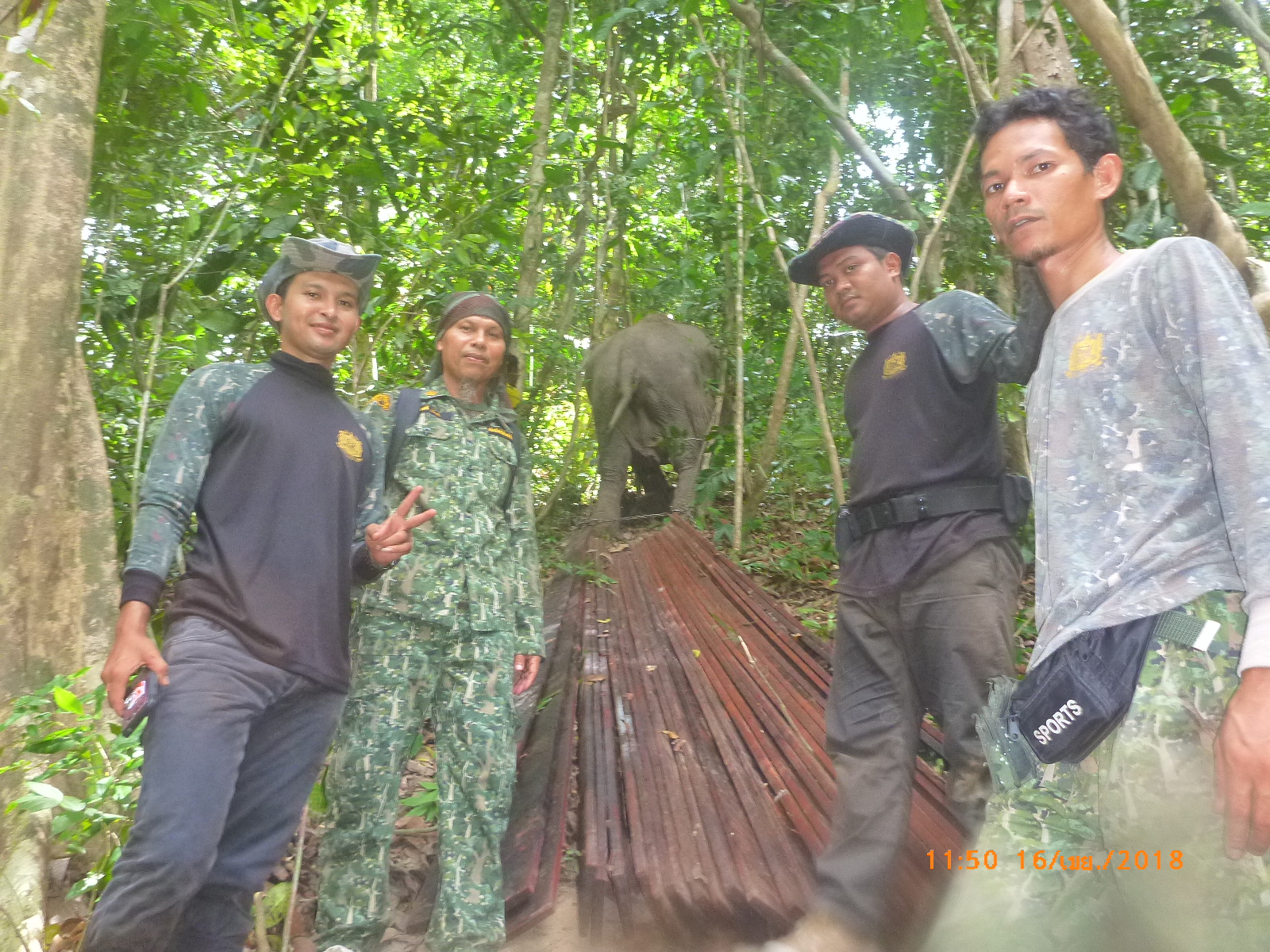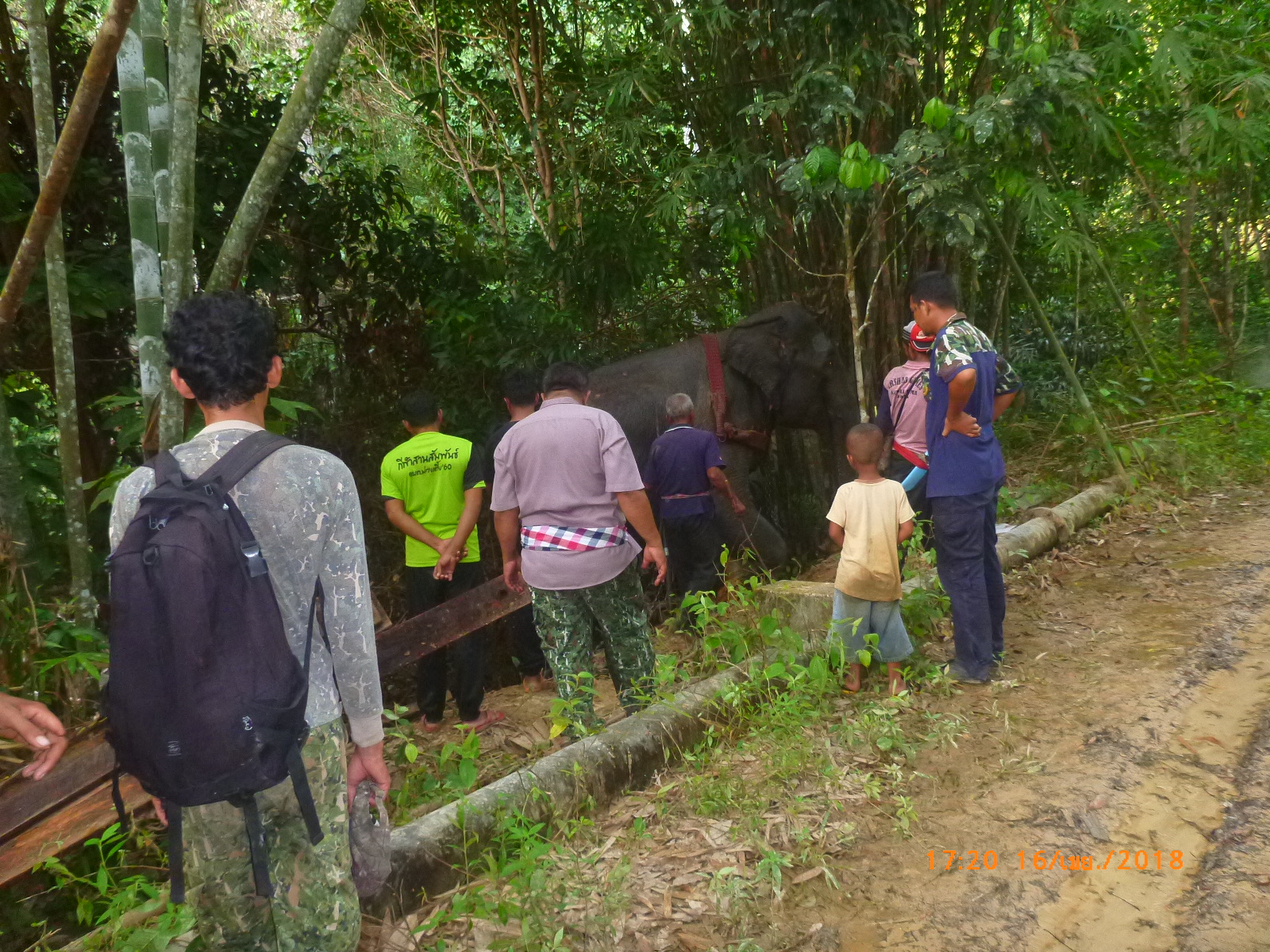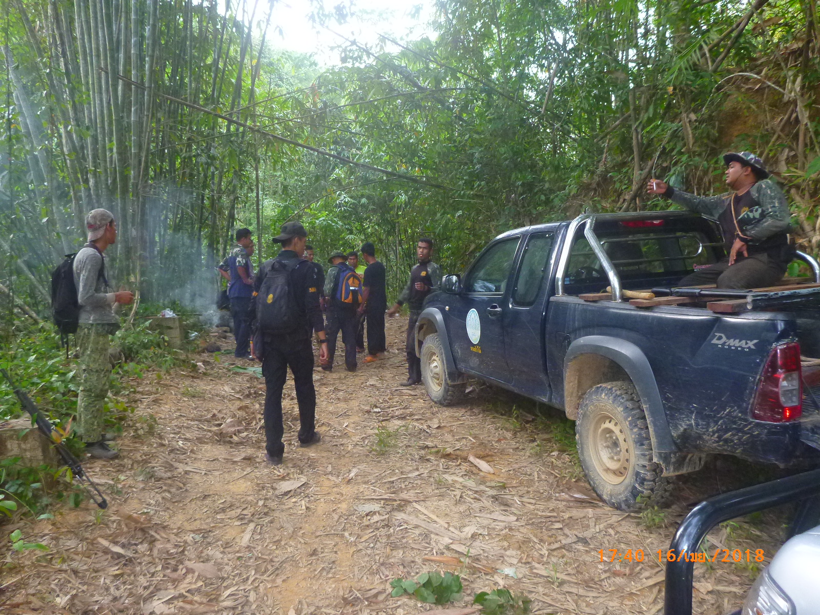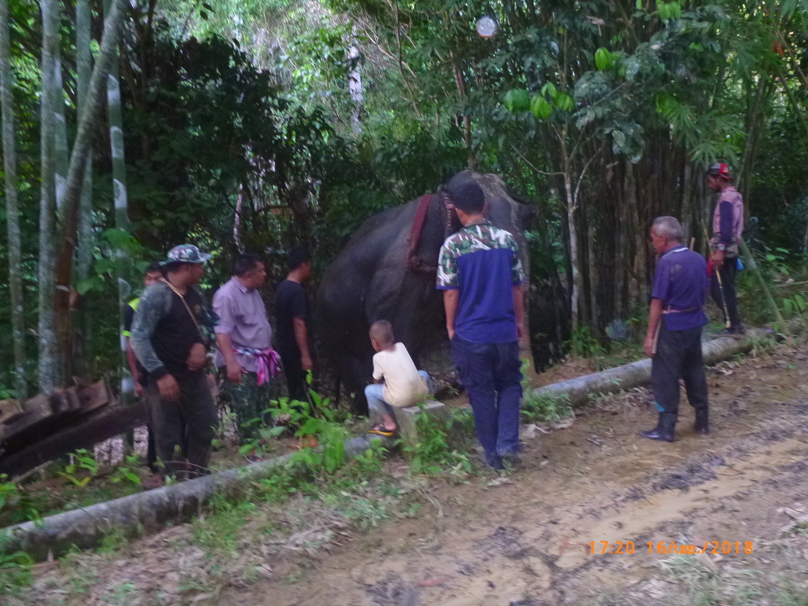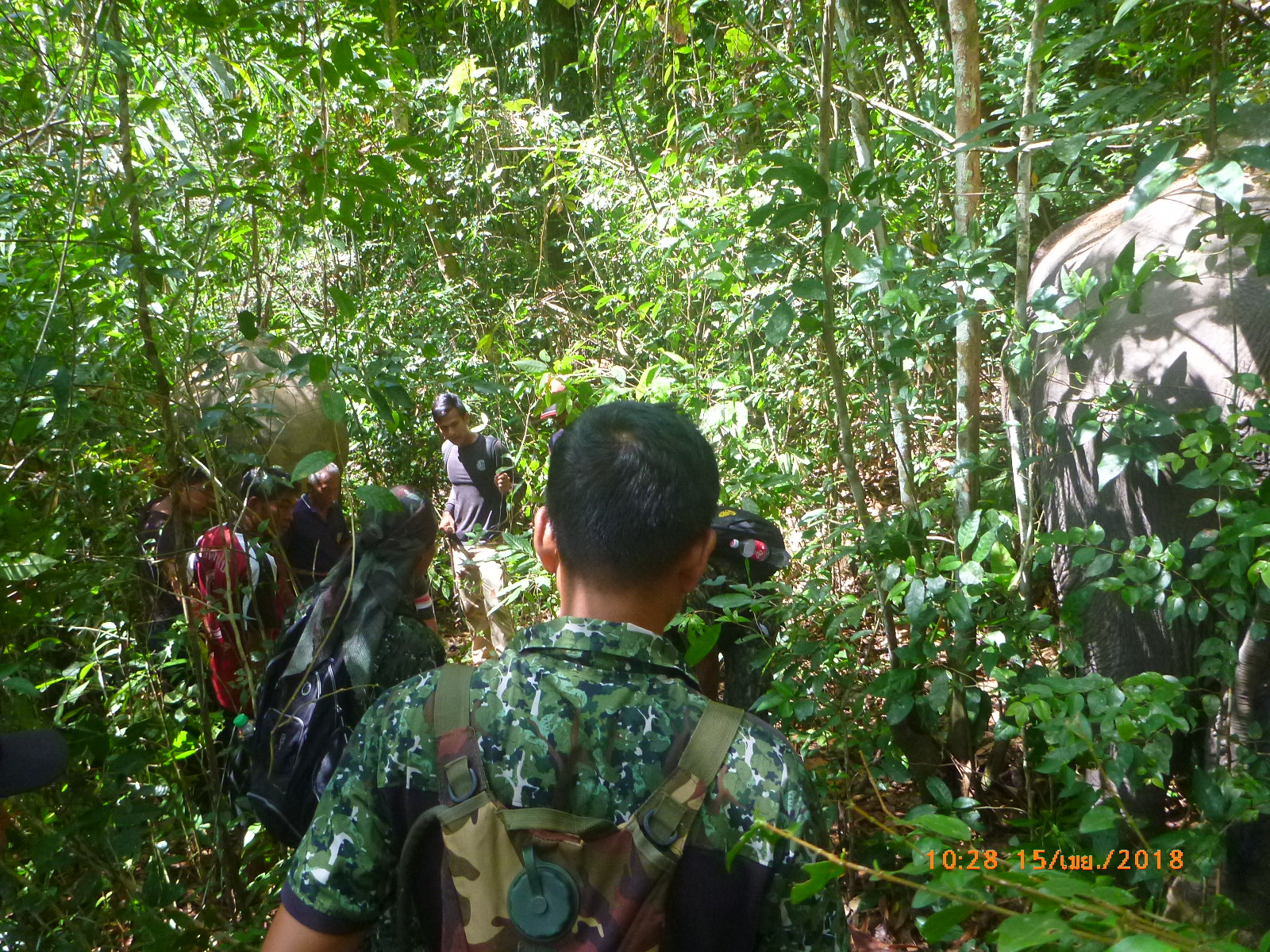 วันที่ 15-16 เมษายน 2561 เวลา 08.30 น.- 18.00 น. เจ้าหน้าที่หน่วยป้องกันรักษาป่าที่ ยล.1 (กาบัง) ร่วมกับ เจ้าหน้า (ศปป.4) ภาคใต้ กรมป่าไม้ ,เจ้าหน้าที่ สายตรวจ กก.๖ บก.ปทส.ประจำ จว.ยะลา,เจ้าหน้าที่ อส.อ.กาบัง , และเจ้าหน้าที่ ทหารพรานที่ 4709 , ได้นำช้าง จำนวน 3 เชือก ทำการขนย้ายไม้แปรรูป ในพื้นที่เกิดเหตุ ในบริเวณป่าสงวนแห่งชาติป่ากาบัง ท้องที่บ้านจุฬาภรณ์พัฒนาที่ 11 ม.11 ต.บาละ อ.กาบัง จ.ยะลา เพื่อเอาไม้แปรรูปไปกองไว้จุดที่รถสามารถเข้าไปได้ เพื่อนำมาไว้ที่หน่วยฯ ในวันต่อไป
