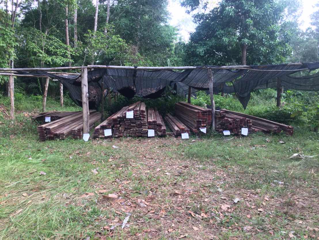 วันที่ 21 เมษายน 2561 เวลา 08.30 น.- 18.30 น. เจ้าหน้าที่หน่วยป้องกันรักษาป่าที่ ยล.1 (กาบัง) ร่วมกับ เจ้าหน้าที่ สายตรวจ กก.๖ บก.ปทส.ประจำ จว.ยะลา,เจ้าหน้าที่ อส.อ.กาบัง , เจ้าหน้าที่ ทหารพรานที่ 4709 , และ กำนัน ตำบลบาละ ได้นำช้าง จำนวน 3 เชือก ทำการชักลากไม้แปรรูป ชนิดไม้หลุมพอ ในพื้นที่เกิดเหตุ ในบริเวณป่าสงวนแห่งชาติป่ากาบัง ท้องที่บ้านจุฬาภรณ์พัฒนาที่ 11 ม.11 ต.บาละ อ.กาบัง จ.ยะลา และชักลากไม้แปรรูปไปกองไว้จุดที่รถสามารถเข้าไปได้ และได้ใช้รถสิบล้อ (จอหนัง) ขนย้ายไม้แปรรูปนำมาเก็บไว้ที่หน่วยฯ ยล.1(กาบัง)