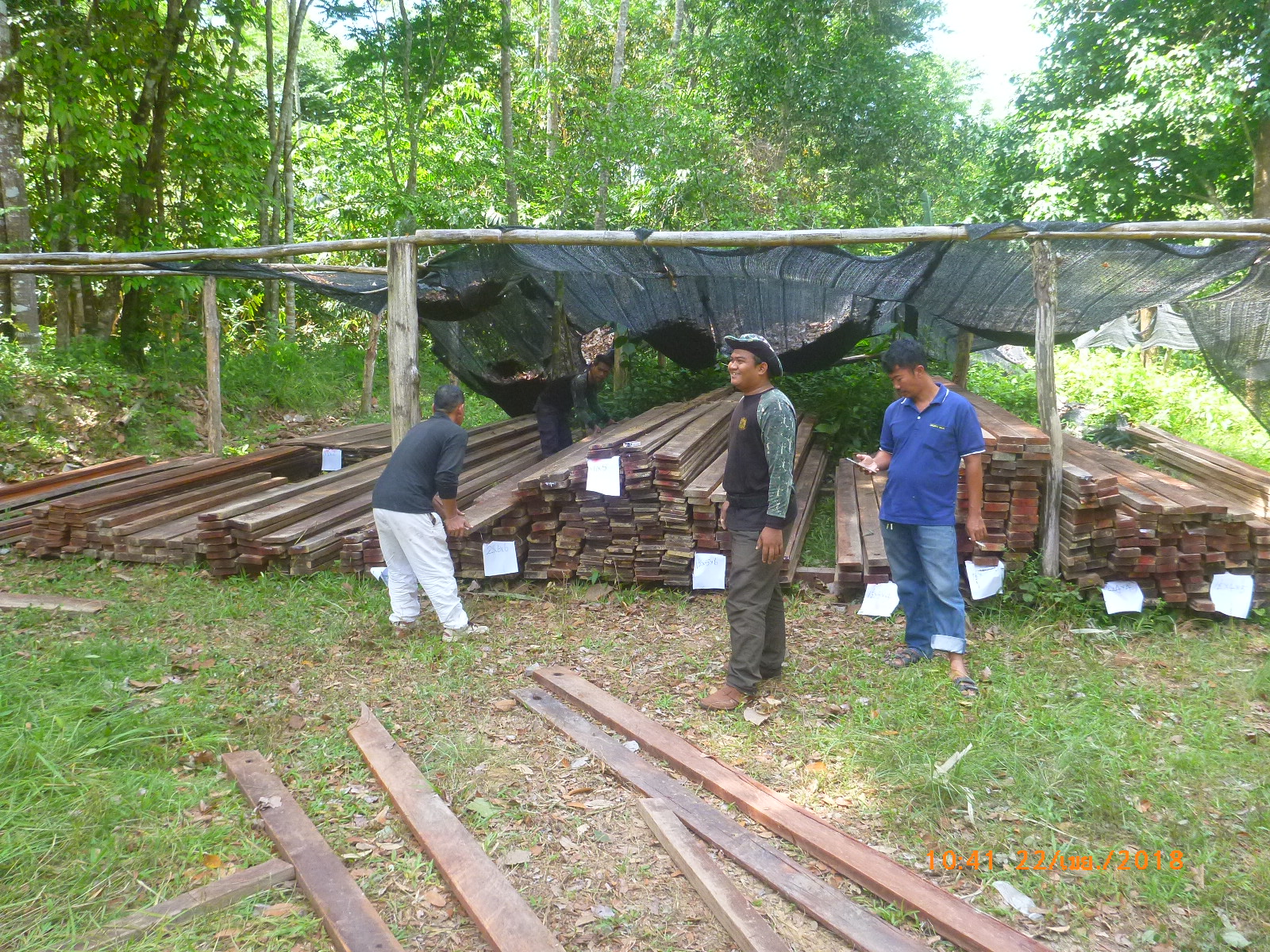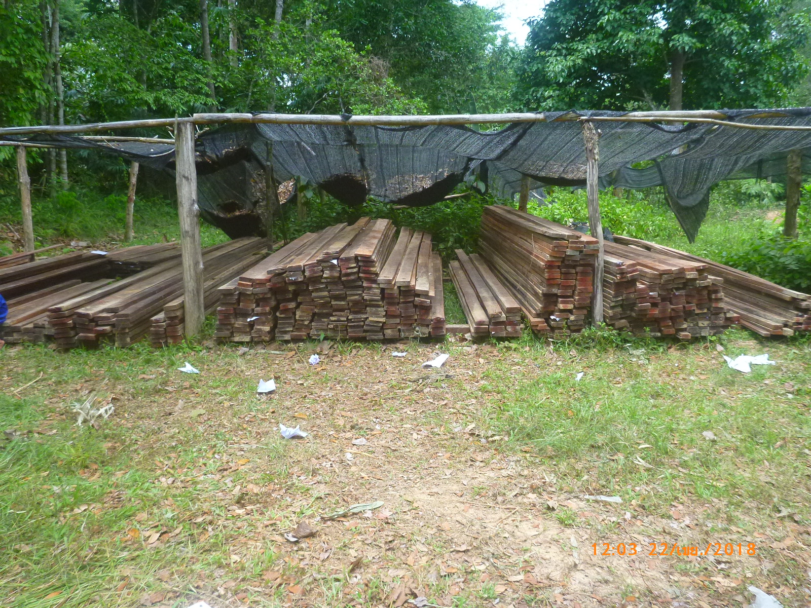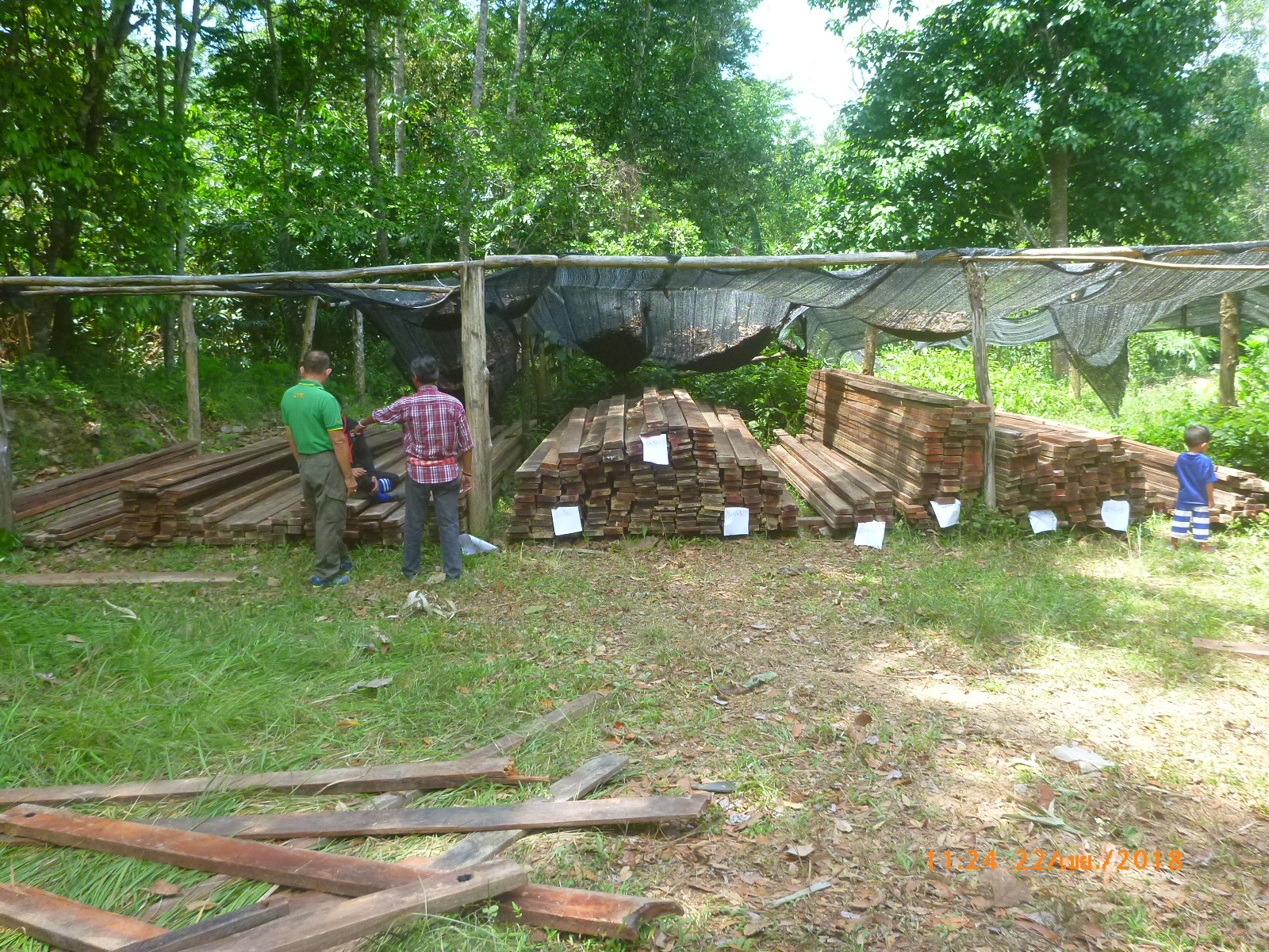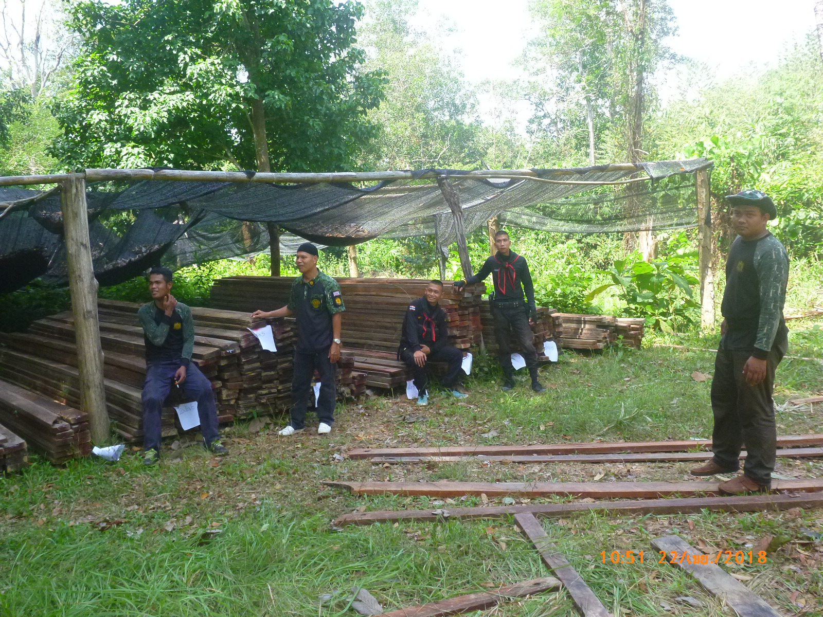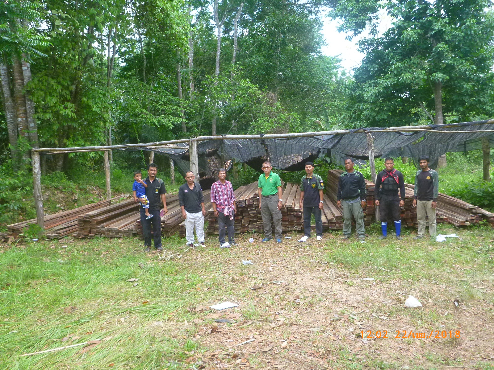 วันที่ 22 เมษายน 2561 เวลา 08.30 น.- 16.30 น. เจ้าหน้าที่หน่วยป้องกันรักษาป่าที่ ยล.1 (กาบัง) ร่วมกับ เจ้าหน้าที่ สายตรวจ กก.๖ บก.ปทส.ประจำ จว.ยะลา,เจ้าหน้าที่ อส.อ.กาบัง , เจ้าหน้าที่ ทหารพรานที่ 4709 , และ กำนัน ตำบลบาละ ได้ตรวจยึดไม้แปรรูปชนิดไม้หลุมพอ ในพื้นที่เกิดเหตุ ในบริเวณป่าสงวนแห่งชาติป่ากาบัง ท้องที่บ้านจุฬาภรณ์พัฒนาที่ 11 ม.11 ต.บาละ อ.กาบัง จ.ยะลา จำนวน 715 ชิ้น/แผ่น ปริมาตร 17.16 ลบม. ค่าภาคหลวง 2,745.6บาท ค่าเสียหายของรัฐเป็นเงิน 343,200 บาท และได้ขนย้ายไม้แปรรูปนำมาเก็บไว้ที่หน่วยป้องกันรักษาป่าที่ ยล.1 (กาบัง) เพื่อป้องกันการสูญหายเรียบร้อยแล้ว