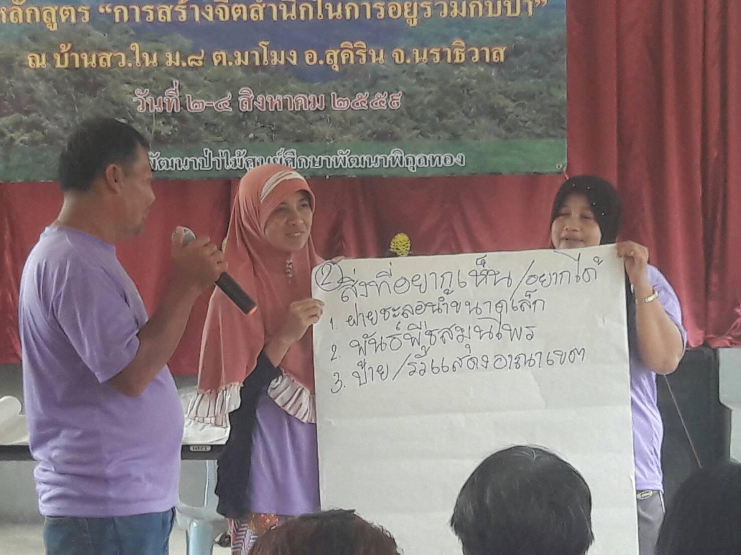 เมื่อวันที่ 2 ส.ค 59 นายปลิว ชุมแดง ผอ.ส่วนจัดการป่าชุมชน กล่าวรายงาน โครงการฝึกอบรม สวนป่าเฉลิมพระเกียรติ และกิจกรรมปลูกต้นไม้ ณ.ป่าชุมชนบ้าน สว.ใน ม.8 ต.มาโมง อ.สุคิริน จ.นราธิวาส โดยมี ผอ.สำนักจัดการทรัพยากรป่าไม้ที่ 13 สาขานราธิวาส เป็นประธานในพิธี