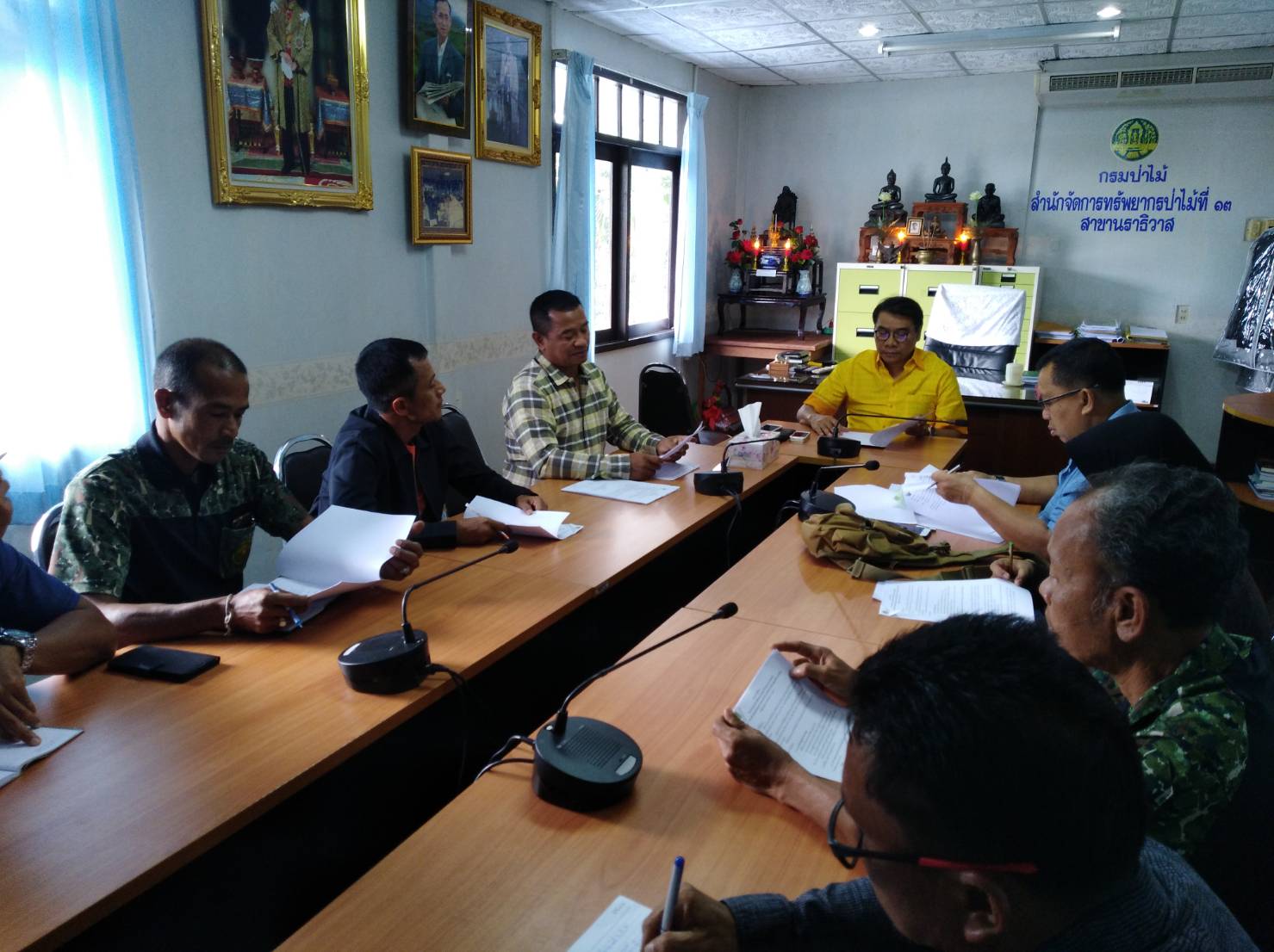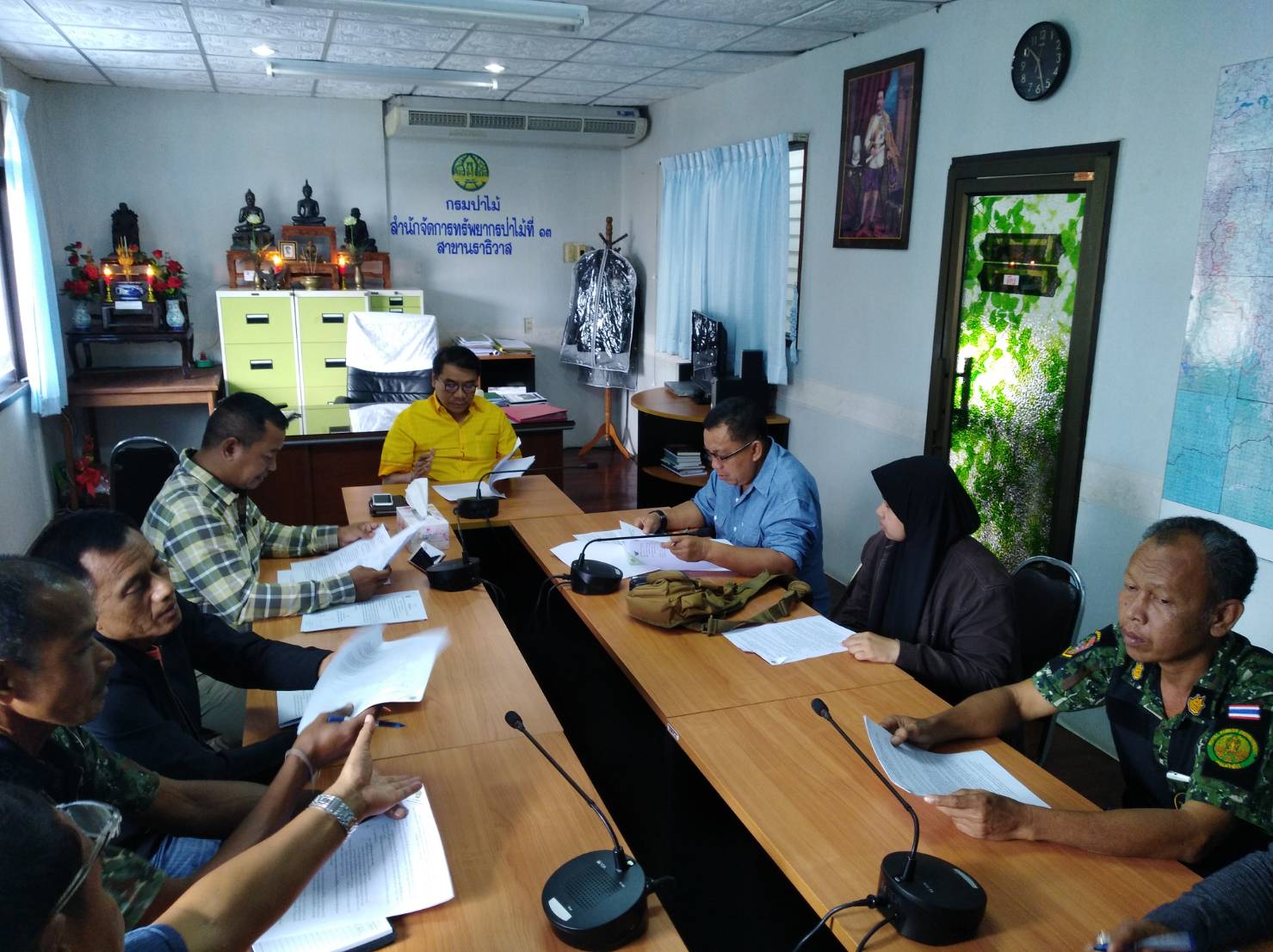 สำนักจัดการทรัพยากรป่าไม้ที่ 13 สาขานราธิวาส ประชุมคณะกรรมการตรวจติดตามประเมินและตรวจสอบรับรองผลการปฏิบัติงาน โครงการปรับปรุงแก้ไขแนวเขตป่าสงวนแห่งชาติ ตามแนวทางการปรับปรุงแผนที่แนวเขตที่ดินของรัฐแบบบูรณาการ มาตราส่วน 1:4,000 (One Map) ครั้งที่ 1/2561 วันที่ 26 เมษายน 2561 เวลา 10.00 น. ณ ห้องประชุมผู้อำนวยการสำนักจัดการทรัพยากรป่าไม้ที่ 13 สาขานราธิวาส