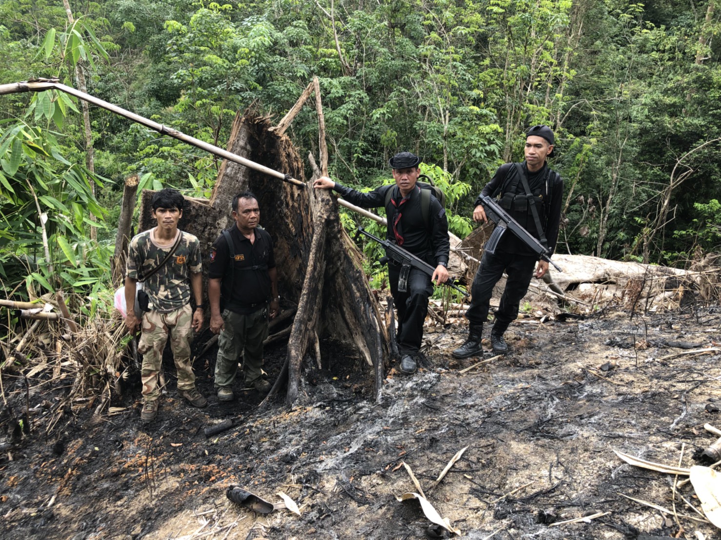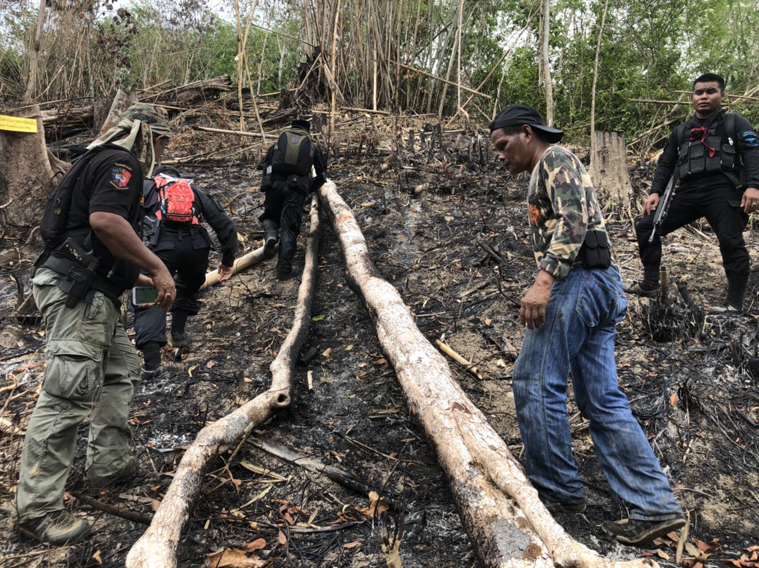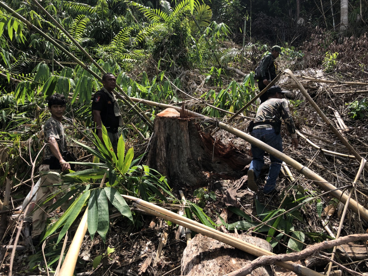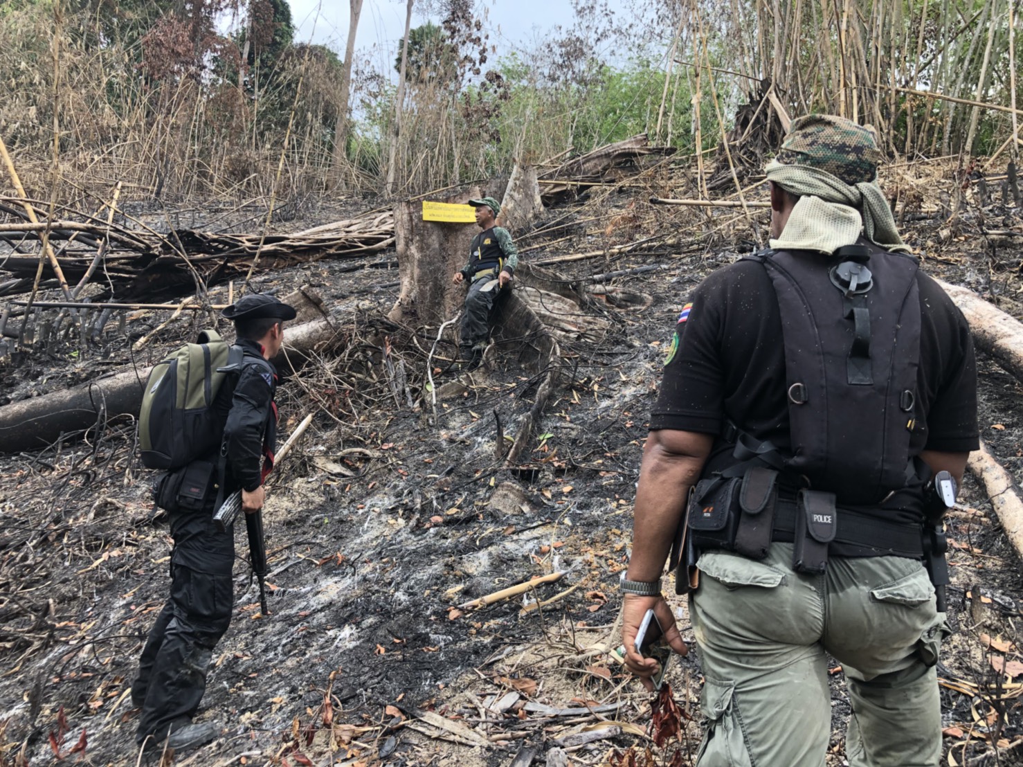 วันที่ ๒๖ เมษายน ๒๕๖๑ เวลา ๐๘.๓๐ น. สำนักจัดการทรัพยากรป่าไม้ที่ 13 สาขานราธิวาส โดยเจ้าหน้าที่หน่วยฯยล.๒(ปะแต) ร่วมกับเจ้า หน้าที่สายตรวจปราบปรามฯ กก.๖ บก.ปทส.จ.ยะลา,จนท.กอ.รมน.,จนท.ศปป.ที่ ๔(ภาคใต้) กรมป่าไม้และ จนท.อส.ทพ.ร้อย ร.๔๗๑๖ ร่วมกันออกตรวจปราบปรามการกระทำผิดกฏหมายว่าด้วยการป่าไม้ ตามผลการบินตรวจสอบสภาพป่า เมื่อวันที่ ๑๙ มี.ค. ๖๑ และตามโครงการ เพิ่มประสิทธิภาพด้านการป้องกันปราบปรามการบุกรุกและทำลายทรัพยากรธรรมชาติ กองอำนวยการรักษาความมั่นคงภายใน จังหวัดยะลา ในเขตพื้นที่ป่าสงวนแห่งชาติป่าลาบูและป่าถำทะลุ พบพื้นที่ป่าถูกบุกรุกทำลาย จำนวน ๒ จุด