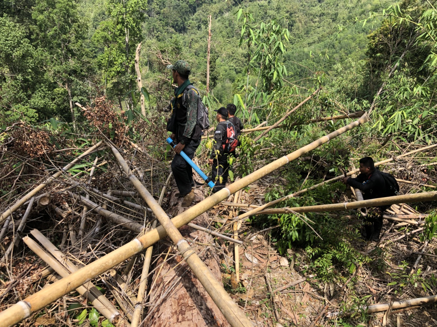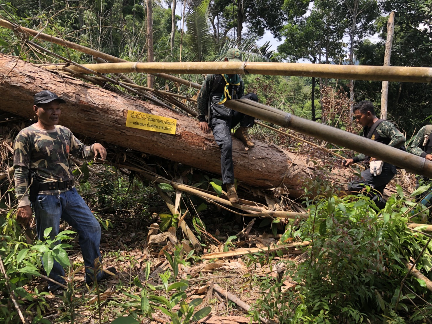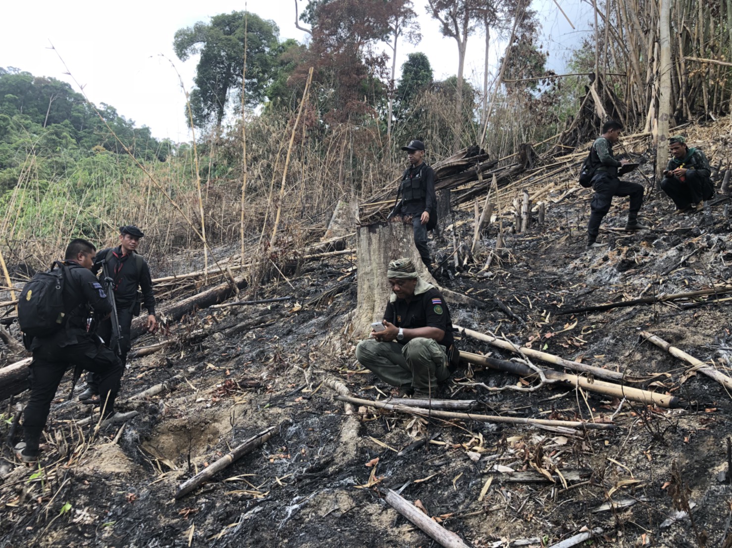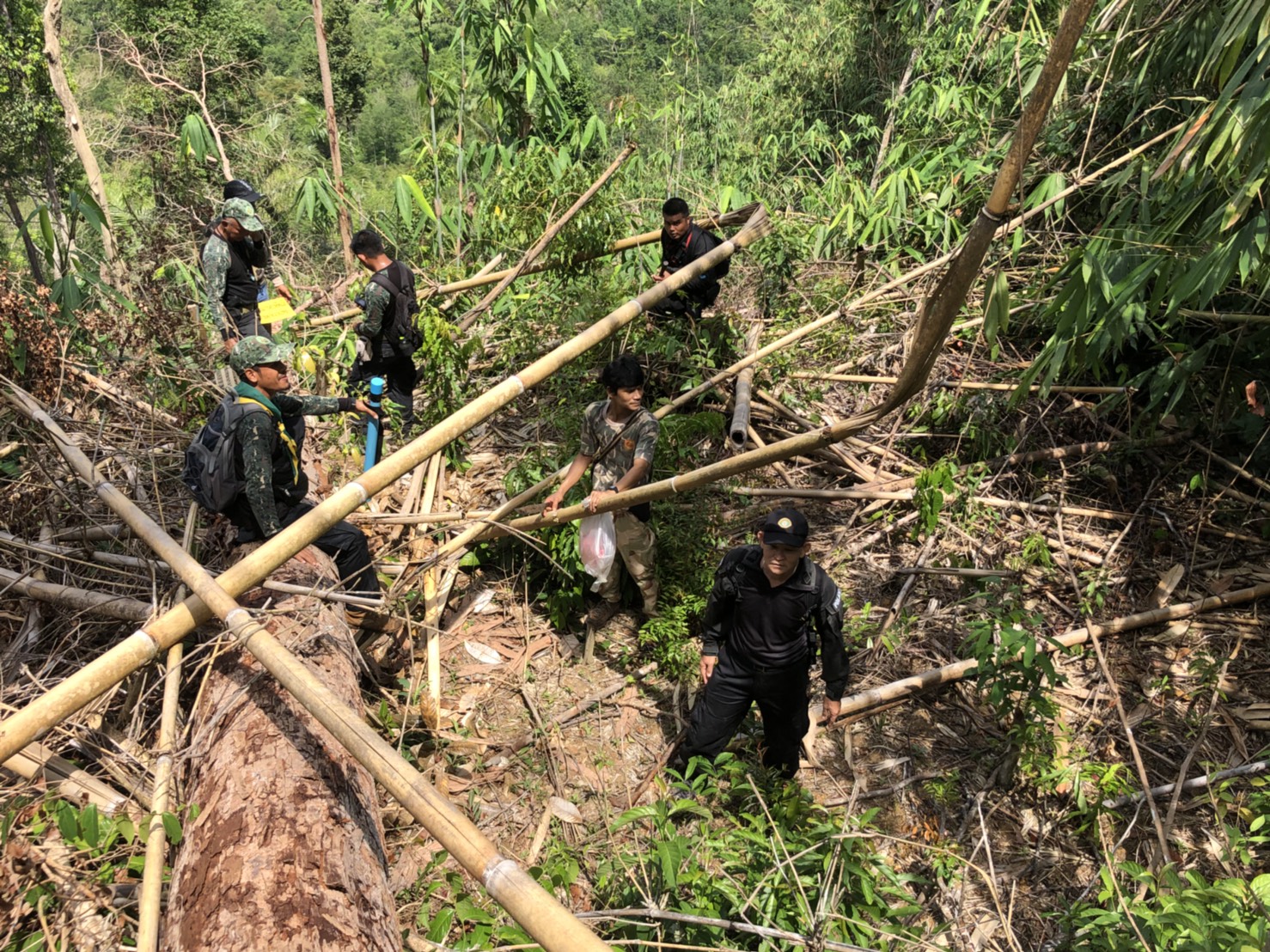 วันที่ ๒๖ เมษายน ๒๕๖๑ เวลา ๐๘.๓๐ น. สำนักจัดการทรัพยากรป่าไม้ที่ 13 สาขานราธิวาส โดยเจ้าหน้าที่หน่วยฯยล.๒(ปะแต) ร่วมกับเจ้า หน้าที่สายตรวจปราบปรามฯ กก.๖ บก.ปทส.จ.ยะลา,จนท.กอ.รมน.,จนท.ศปป.ที่ ๔(ภาคใต้) กรมป่าไม้และ จนท.อส.ทพ.ร้อย ร.๔๗๑๖ ร่วมกันออกตรวจปราบปรามการกระทำผิดกฏหมายว่าด้วยการป่าไม้ ตามผลการบินตรวจสอบสภาพป่า เมื่อวันที่ ๑๙ มี.ค. ๖๑ และตามโครงการ เพิ่มประสิทธิภาพด้านการป้องกันปราบปรามการบุกรุกและทำลายทรัพยากรธรรมชาติ กองอำนวยการรักษาความมั่นคงภายใน จังหวัดยะลา ในเขตพื้นที่ป่าสงวนแห่งชาติป่าลาบูและป่าถำทะลุ พบพื้นที่ป่าถูกบุกรุกทำลาย จำนวน ๒ จุด