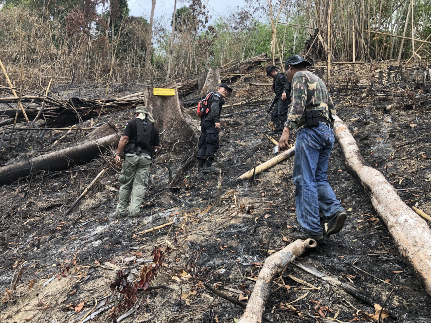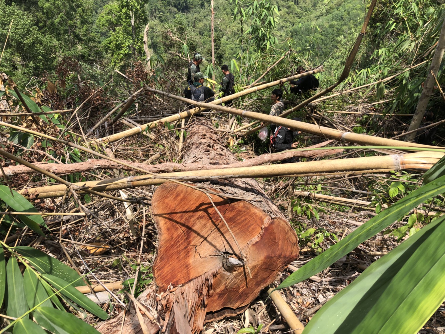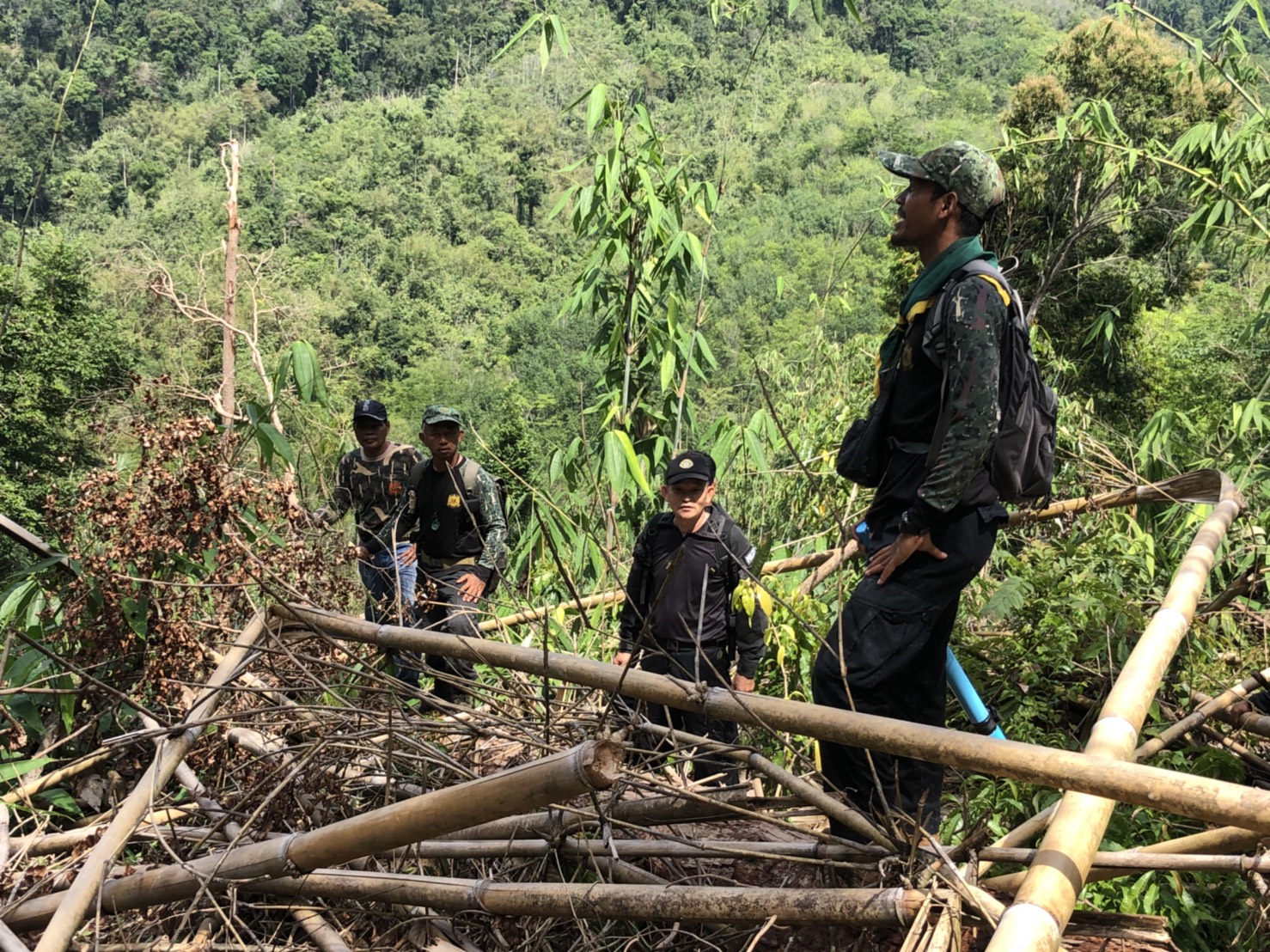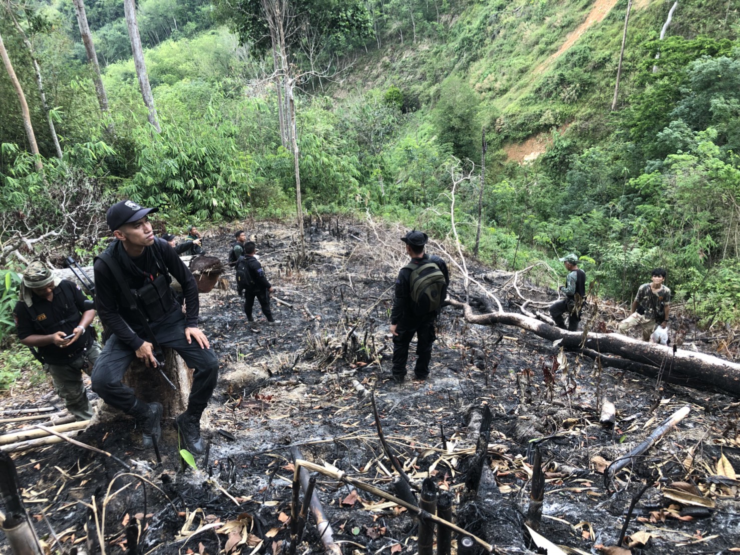 วันที่ ๒๖ เมษายน ๒๕๖๑ เวลา ๐๘.๓๐ น. สำนักจัดการทรัพยากรป่าไม้ที่ 13 สาขานราธิวาส โดยเจ้าหน้าที่หน่วยฯยล.๒(ปะแต) ร่วมกับเจ้า หน้าที่สายตรวจปราบปรามฯ กก.๖ บก.ปทส.จ.ยะลา,จนท.กอ.รมน.,จนท.ศปป.ที่ ๔(ภาคใต้) กรมป่าไม้และ จนท.อส.ทพ.ร้อย ร.๔๗๑๖ ร่วมกันออกตรวจปราบปรามการกระทำผิดกฏหมายว่าด้วยการป่าไม้ ตามผลการบินตรวจสอบสภาพป่า เมื่อวันที่ ๑๙ มี.ค. ๖๑ และตามโครงการ เพิ่มประสิทธิภาพด้านการป้องกันปราบปรามการบุกรุกและทำลายทรัพยากรธรรมชาติ กองอำนวยการรักษาความมั่นคงภายใน จังหวัดยะลา ในเขตพื้นที่ป่าสงวนแห่งชาติป่าลาบูและป่าถำทะลุ พบพื้นที่ป่าถูกบุกรุกทำลาย จำนวน ๒ จุด