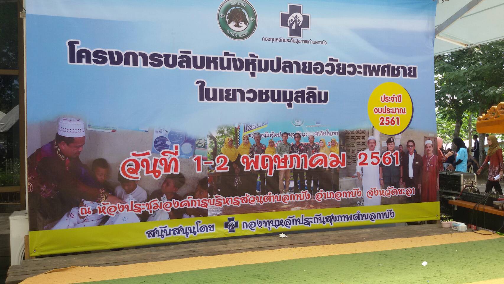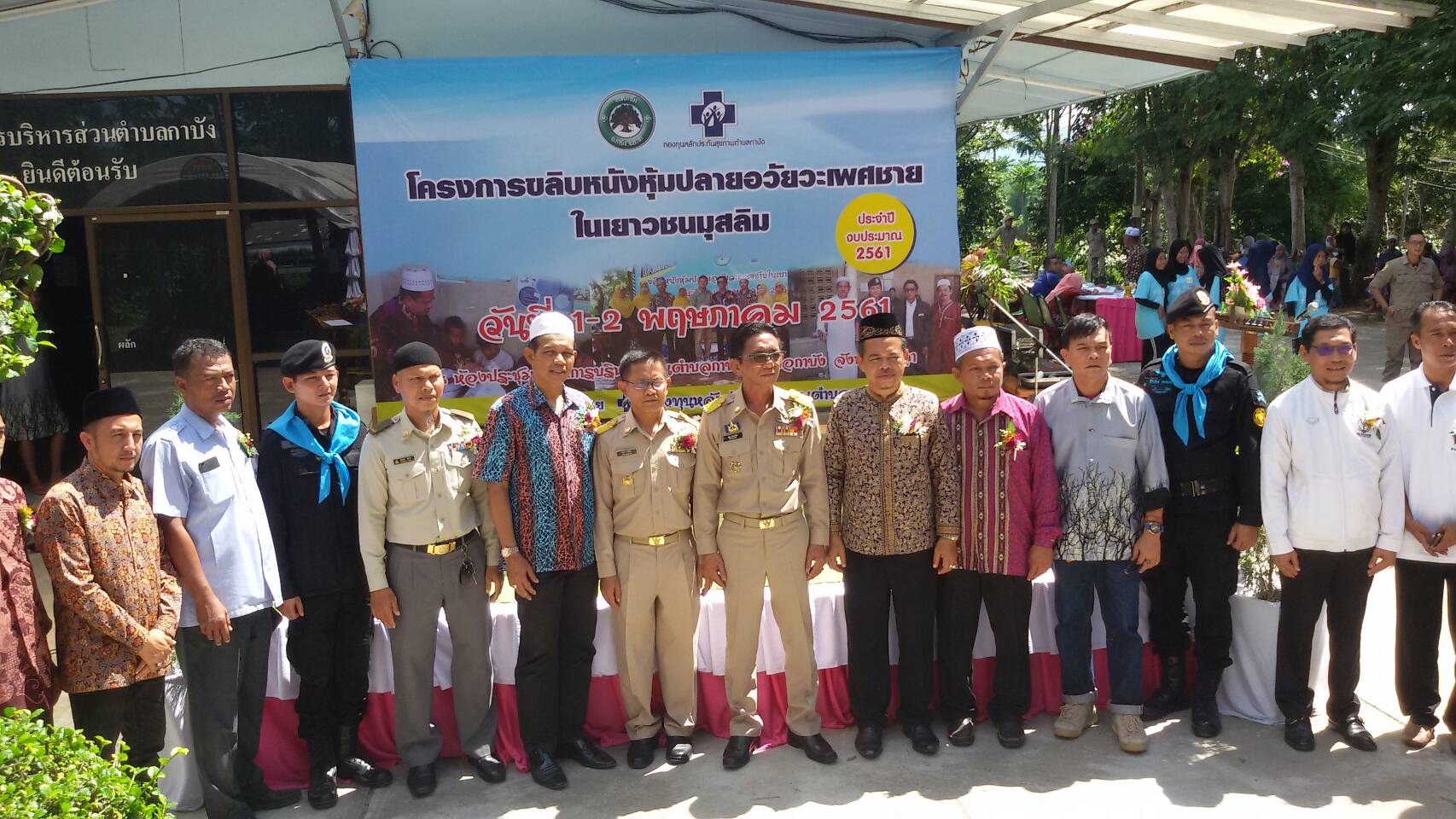 วันพุธที่ 2 พฤษภาคม 2561 เวลา 10.30 น. เจ้าหน้าที่ หน่วยฯ ยล.1(กาบัง) เข้าร่วมโครงการขลิปหนังหุ้มปลายอวัยวะเพศชาย ในเยาวชน มุสลิม วันที่ 1-2 พฤษภาคม 2561 โดยมี นายมนูญ พรหมน้อย นายอำเภอกาบัง เป็นประธาน ณ. ห้องประชุมองค์การบริหารส่วนตำบลกาบัง อำเภอกาบัง จังหวัดยะลา