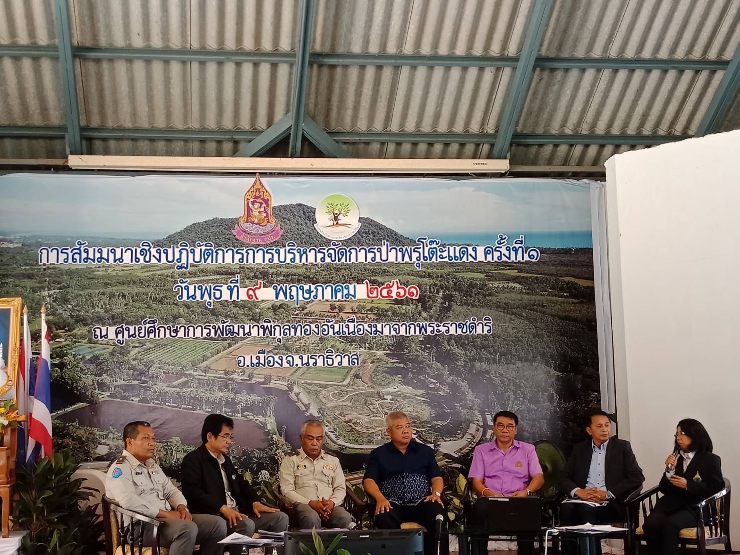 วันที่ 9 พฤษภาคม 2561 เวลา 09.00 น.เป็นต้นไป หน่วยป้องกันรักษาป่าที่ นธ.4(สุไหงปาดี) ร่วมรับฟังการสัมมนาเชิงปฏิบัติการการบริหาร จัดการป่าพรุโต๊ะแดง ครั้งที่ 1 ณ ศูนย์ศึกษาการพัฒนาพิกุลทองอันเนื่องมาจากพระราชดำริ อ.เมือง จ.นราธิวาส โดยมีนายลลิต ถนอมสิงห์ รองเลขาธิการ กปร. เป็นประธานในพิธีเปิด และมีนายชาตรี วชิระเผด็จศึก ผอ.สำนักจัดการทรัพยากรป่าไม้ที่ 13 สาขานราธิวาส นายสุชาติ จินดาใจ ผอ.ส่วนป้องกันรักษาป่าและควบคุมไฟป่า ร่วมการสัมมนาในครั้งนี้ด้วย