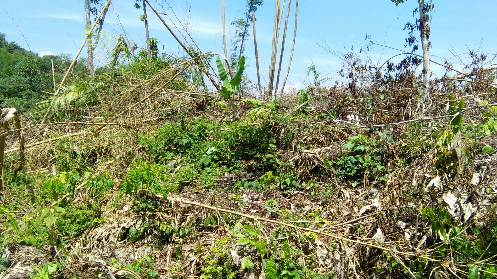 ภาพด้านการป้องกันปราบปรามการบุกรุกทำลายทรัพยากรธรรมชาติในเขตป่าเตรียมการสงวนป่าฝั่งขวาแม่นํ้าปันตานี แปลงที่ ๒ พบพื้นที่ป่า ถูกบุกรุกจำนวน ๑ จุด ที่พิกัด ๔๗N ๐๗๔๔๐๗๙E ๐๖๓๙๒๗๑N ท้องที่หมู่ที่ ๔ บ้านจันทรัตน์ สายควนหินขาว ต. ยะรม อ. เบตง จ. ยะลา เจ้าหน้าที่จึงได้เข้าทำการตรวจสอบ ผลปรากฏว่าเป็นที่ทำกินของราษฎร์ซึ่งทำกินมาก่อน ๓๐ มิถุนายน ๒๕๔๑ ยังมีร่องรอยต่อยางเก่าให้เห็น ชัดเจน