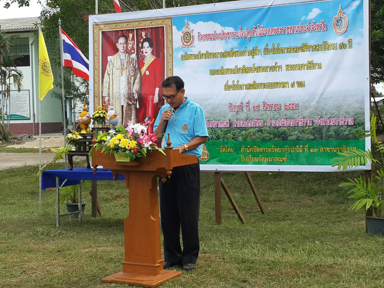 วันที่ 19 สิงหาคม 2559 สน.จทป.ที่ 13 สาขานราธิวาส ข้าราชการ พนักงานราชการ และเจ้าหน้าที่หน่วยป้องกันรักษาป่าร่วมกับ ครู อาจารย์ โรงเรียนวัดพนาสฑ์ ผู้นำชุมชน ชุด ชรบ.หมู่บ้านพนาสณฑ์ร่วมกิจกรรมปวงประชาร่วมใจปลูกต้นไม้มงคลพระราชทานประจำจังหวัด เฉลิมพระเกียรติพระบาทสมเด็จพระเจ้าอยู่หัว เนื่องในโอกาสฉลองสิริราชสมบัติครบ 70 ปี และเฉลิมพระเกียรติสมเด็จพระนางเจ้าพระบรมราชินีนารถ เนื่องในพระชนพรรษา 7 รอบ ณ บริเวณ โรงเรียนวัดพนาสณฑ์ หมู่7 ต.โคกเคียน อ.เมือง จ.นราธิวาส เนื้อที่ 14ไร่ กล้าไม้ที่ปลูก ตะเคียนชันตาแมว พยอม จำนวน 200 ต้น โดยมีผู้อำนวยการโรงเรียนวัดพนาสณฑ์เป็นประธานในพิธีเปิด