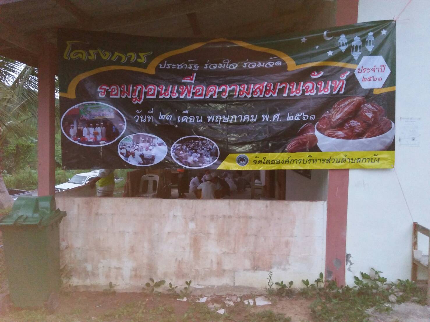 วันที่ 23 พฤษภาคม 2561 เวลา 18.00น เจ้าหน้าที่หน่วยป้องกันรักษาป่าที่ ยล.1(กาบัง) ร่วมละศีลอดโครงการประชารัฐ ร่วมใจ ร่วมจัด รอมฎอนเพื่อความสมานฉันท์( อบต.กาบัง) ณ. มัสยิดบ้านปาโต๊ะ ม. 6 ต.กาบัง อ.กาบัง จ.ยะลา