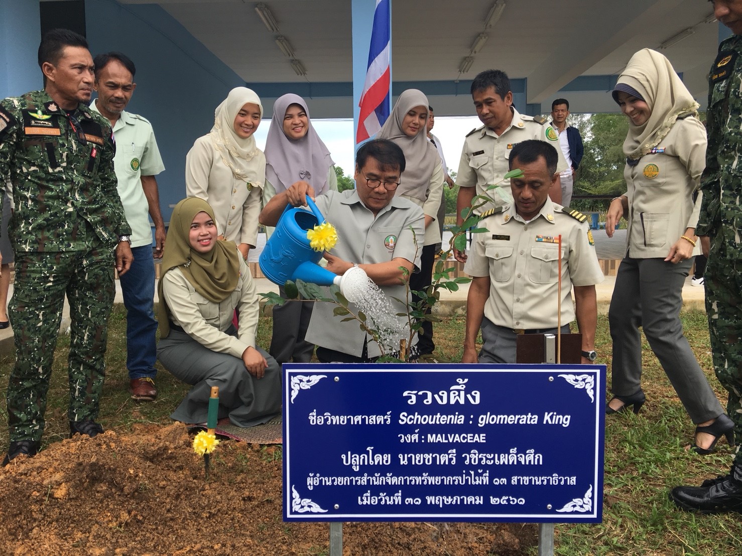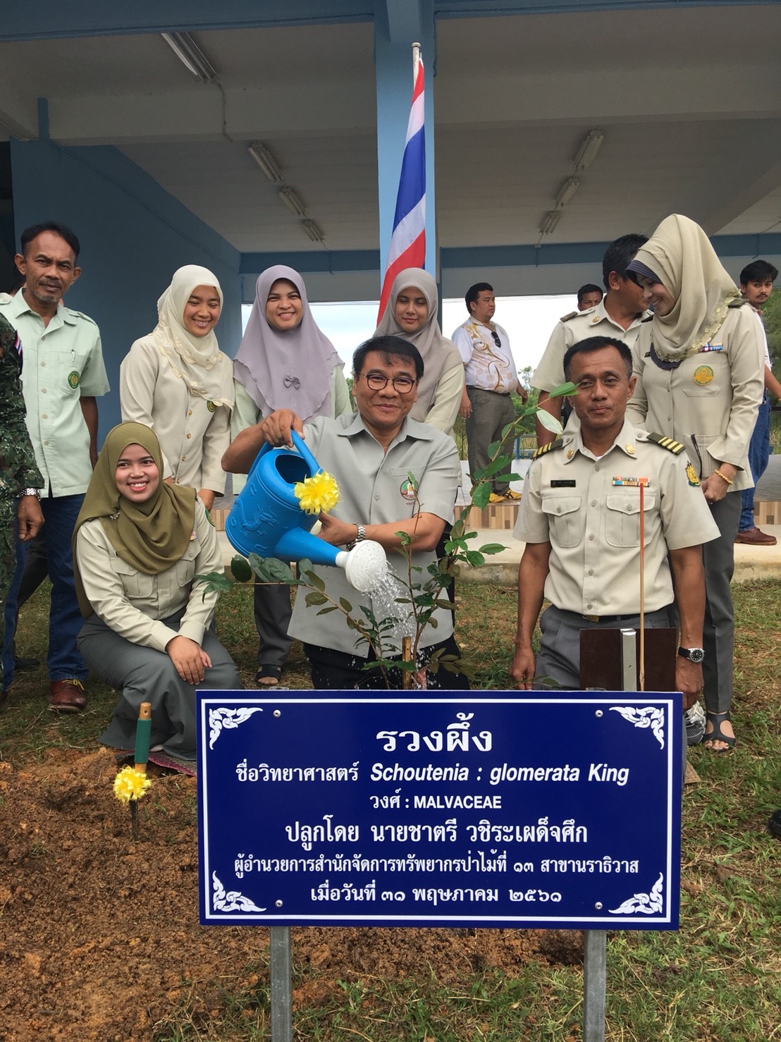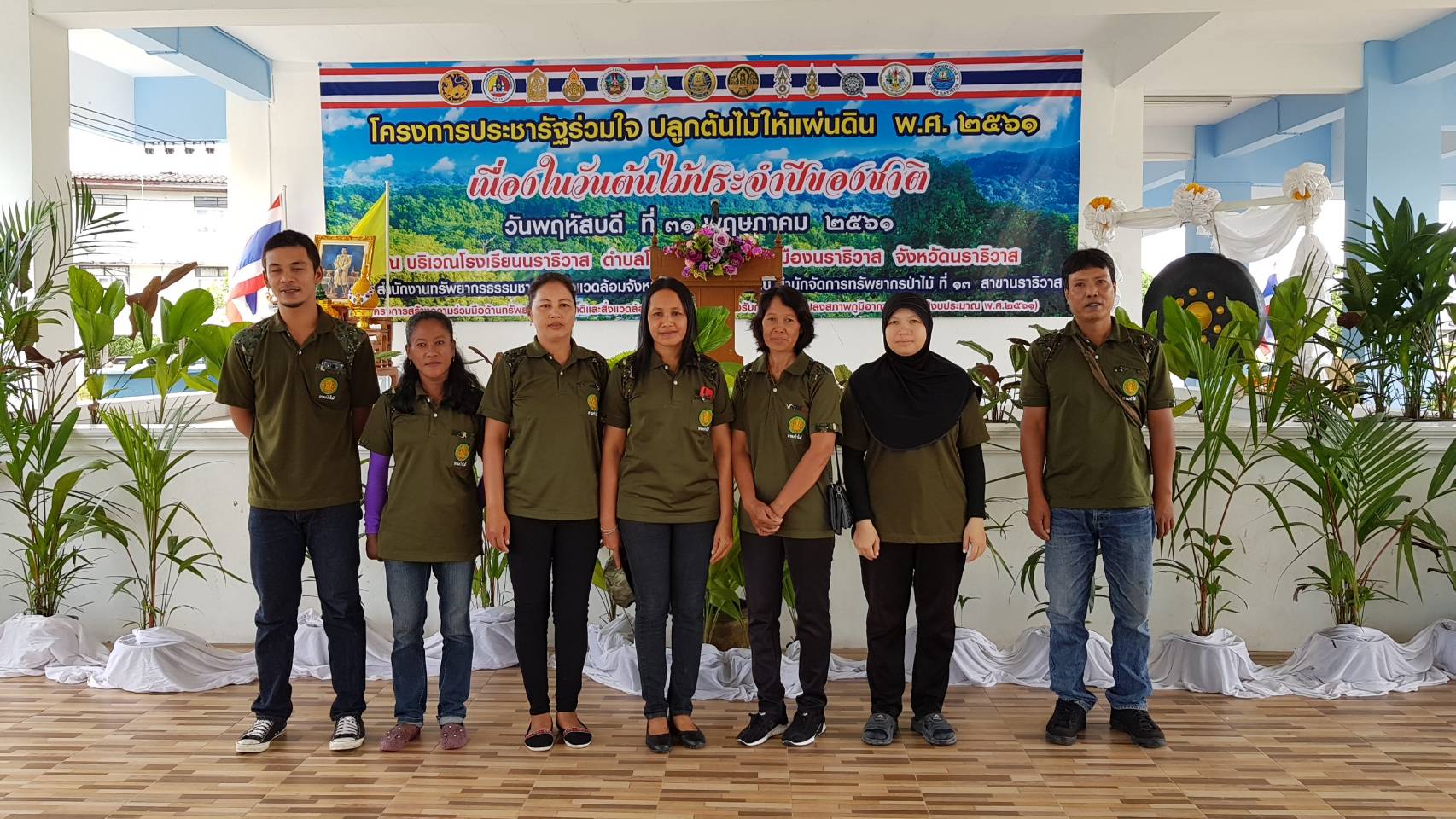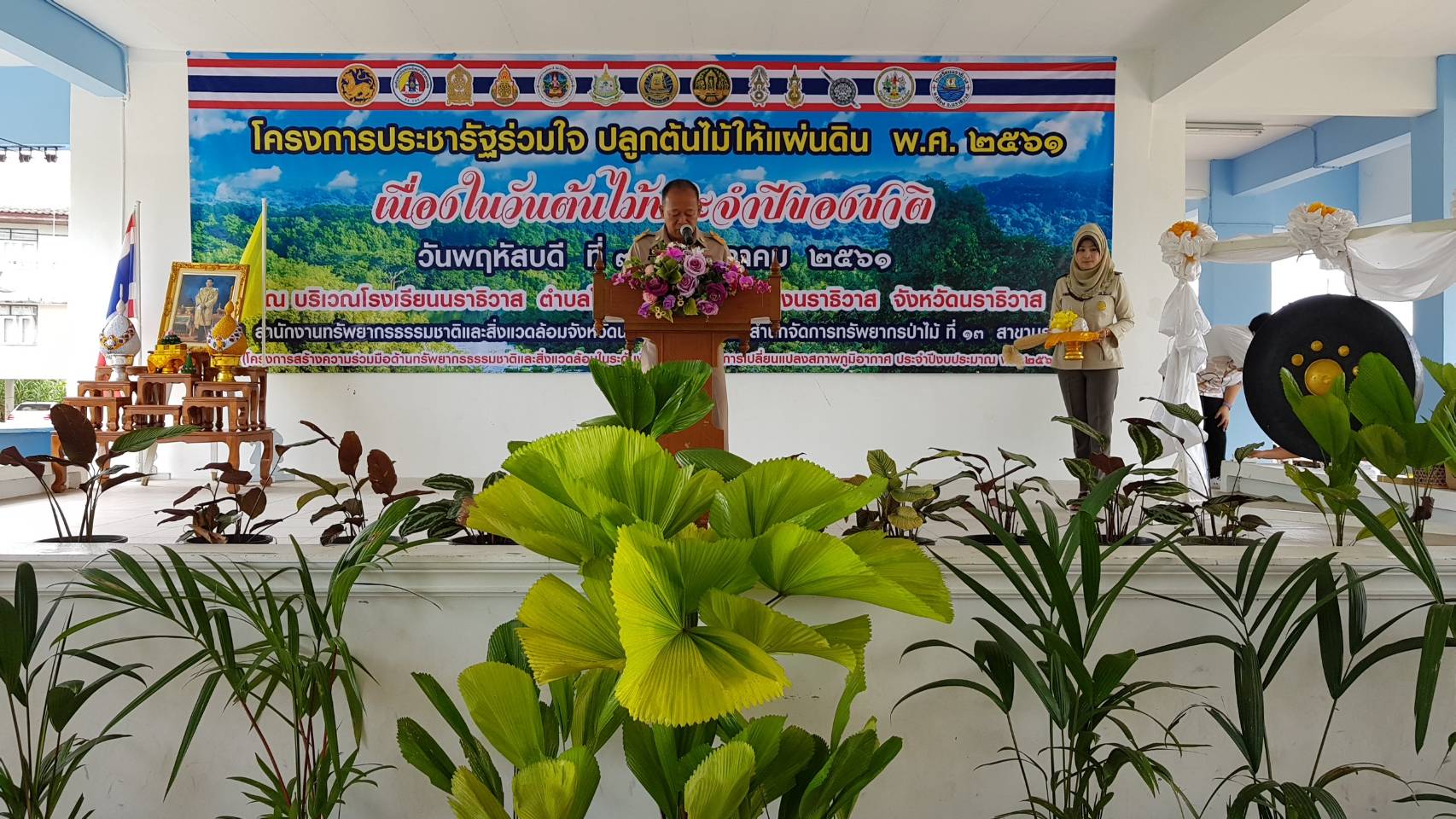 วันพฤหัสบดี ที่ 31 พฤษภาคม 2561 สจป.ที่ 13 สาขานราธิวาส โดยผู้อำนวยการสำนักจัดการทรัพยากรป่าไม้ที่ 13 สาขานราธิวาส (นายชาตรี วชิระเผด็จศึก) พร้อมด้วยข้าราชการ ลูกจ้างประจำ และพนักงานราชการในสังกัดได้ร่วมกับสำนักงานทรัพยากรธรรมชาติและสิ่งแวดล้อมจังหวัดนนราธิวาส จัดโครงการประชารัฐร่วมใจ ปลูกต้นไม้ให้แผ่นดิน ปี พ.ศ.2561 และวันต้นไม้ประจำปีของชาติ พ.ศ. 2561 ณ บริเวณโรงเรียนนราธิวาส ตำบลโคกเคียนอำเภอเมืองนราธิวาส จังหวัดนราธิวาส โดยมีท่านผู้ว่าราชการจังหวัดนราธิวาส (นายสุรพร พร้อมมูล) เป็นประธานในพิธี หัวหน้าส่วนราชการทุกภาคส่วน ,ผู้นำท้องที่ ,นักเรียน, นักศึกษา และประชาชน มีผู้เข้าร่วมกิจกรรม 500 คน เนื้อที่ปลูก 9 ไร่ จำนวนกล้าไม้ 900 ต้น ประกอบด้วย ต้นรวงผึ้ง ตะเคียนชันตาแมว พะยอม กฤษณา กันเกรา หว้า และต้นราชพฤกษ์