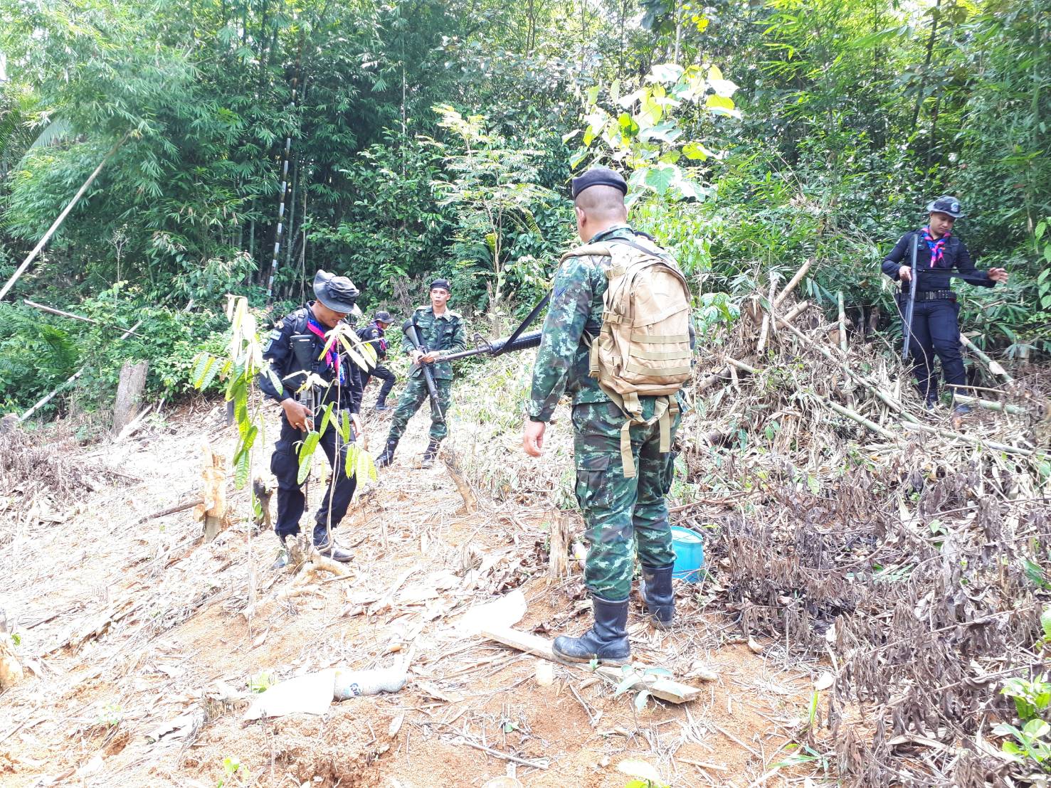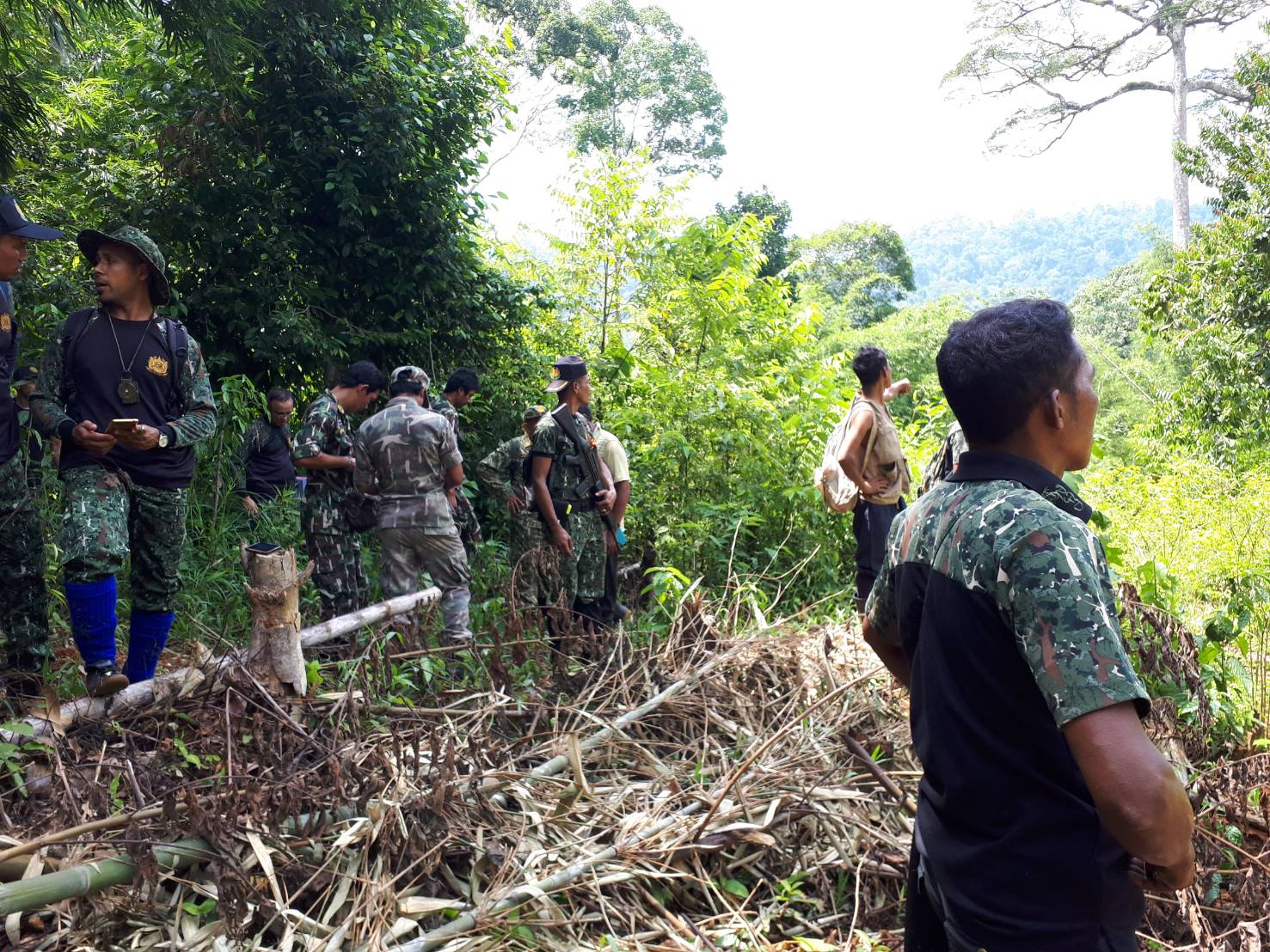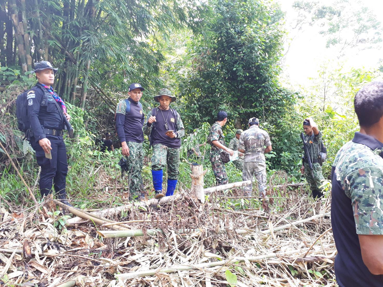 วันพฤหัสบดีที่ 7 มิถุนายน 2561 เวลา 09.00 น. สจป.ที่ 13 สาขานราธิวาส โดยเจ้าหน้าที่หน่วยป้องกันรักษาป่าที่ นธ. 5 (แว้ง-สุคิริน) ร่วมกับเจ้าหน้าที่ทหารพราน ร้อย ทพ.1104,เจ้าหน้าที่ทหารชุดประสานงานหมู่บ้านจุฬาภรณ์ 12 และเจ้าหน้าที่โครงการหมู่บ้านจุฬาภรณ์ 12(กรมอุทยานฯ) ได้ร่วมกันออกตรวจสอบภาคพื้นดินตามพิกัดผลบิน เมื่อวันที่ 4/6/61 บริเวณจุดที่ 2 ที่พิกัด QG 916530 UTM 47 N 791600E 653000N และจุดที่ 8 ที่พิกัด QG 917533 UTM 47N 791700E 653300N ในเบื้องต้นทั้ง 2 จุด อยู่ในพื้นที่ของนิคมสร้างตนเองสุคิริน ส่วนรายละเอียดหน่วยฯ จะได้รายงานให้ทราบต่อไป