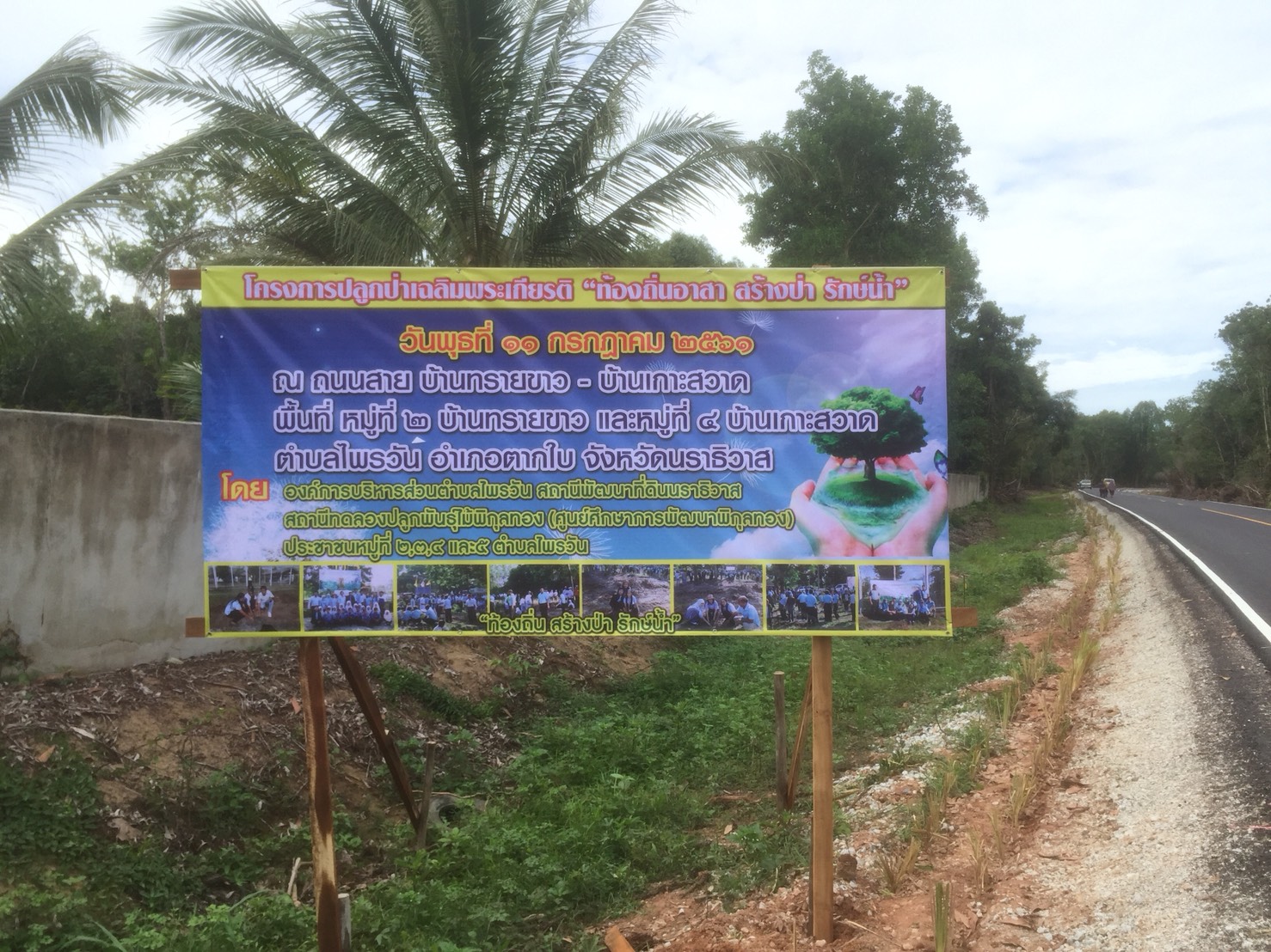 วันพุธที่ 11 กรกฎาคม 2561 เวลา 10.0๐ น. สจป.ที่ 13 สาขานราธิวาส โดยเจ้าหน้าที่หน่วยป้องกันรักษาป่าที่นธ.6(ตากใบ) ได้เข้าร่วมกิจกรรมและต้อนรับนายอำเภอตากใบ (นายประยูร พุทธชาติ) เป็นประธานในพิธีเปิดถนนสายประวัติศาสตร์ สายบ้านทรายขาว – บ้านเกาะสวาด และร่วมกิจกรรมโครงการปลูกป่าเฉลิมพระเกียรติ “ท้องถิ่นอาสา สร้างป่า รักษ์น้ำ” บริเวณถนนสายบ้านทรายขาว – บ้านเกาะสวาด ท้องที่ ม.4 ต.ไพรวัน อ.ตากใบ จ.นราธิวาส จัดโดยองค์การบริหารส่วนตำบลไพรวัน