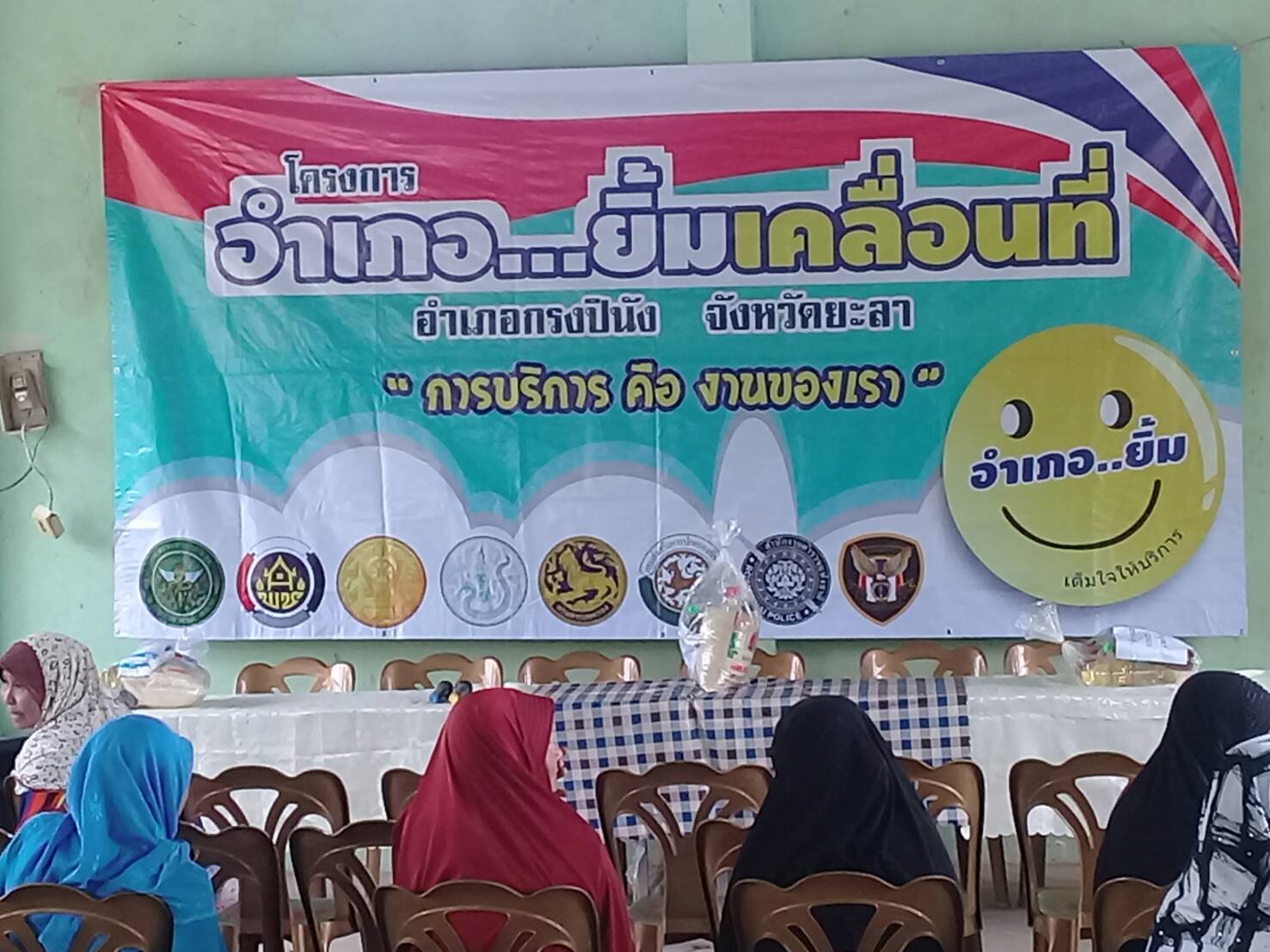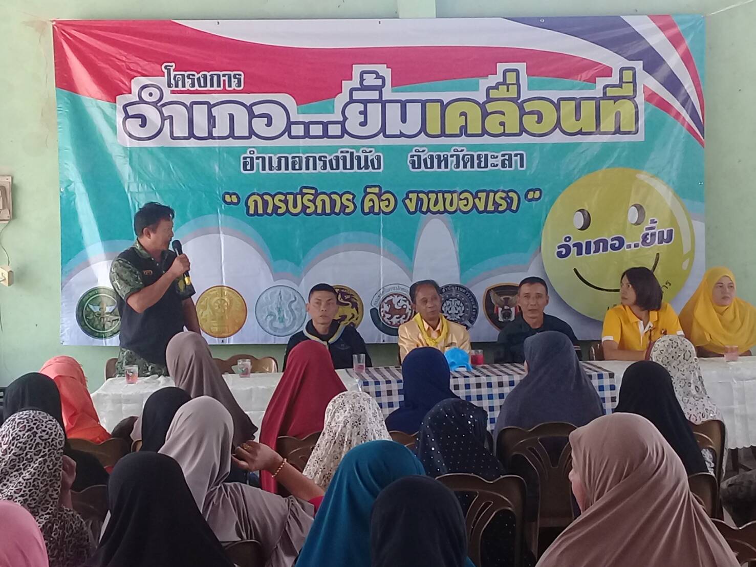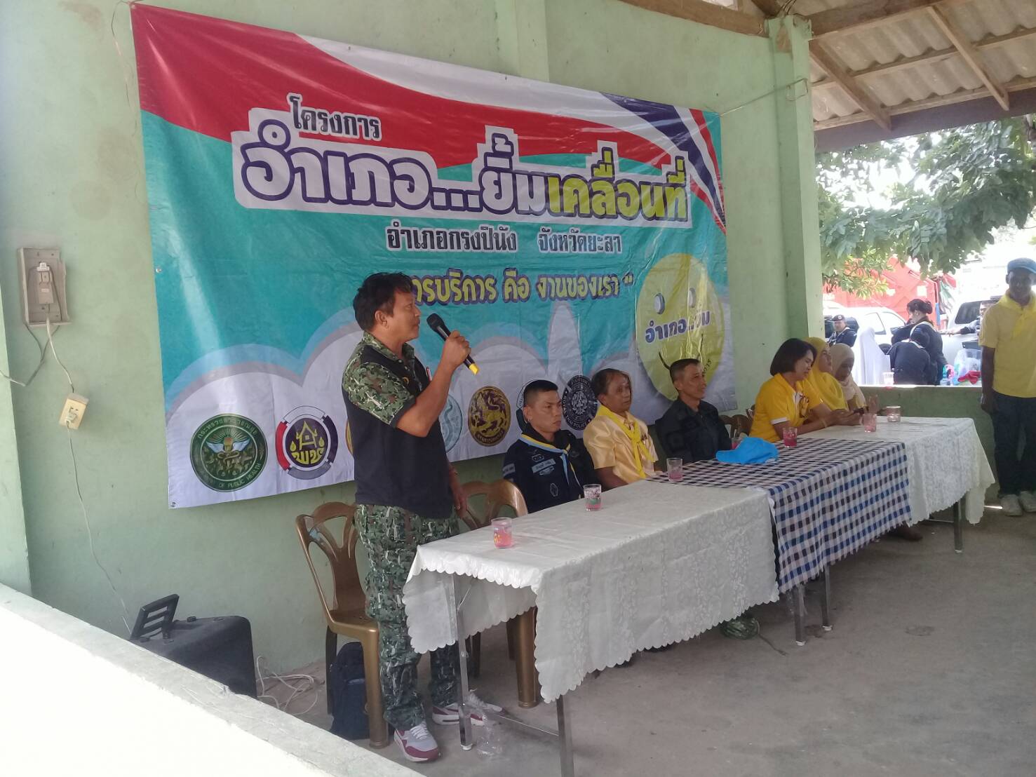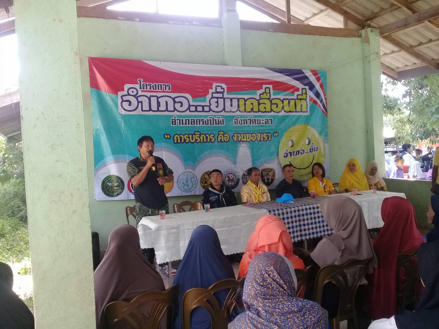 อำเภอกรงปินัง จังหวัดยะลา “งานบริการ คืองานของเรา” ร่วมกับหัวหน้าส่วนราชการอำเภอกรงปินัง ณ ศาลาเอนกประสงค์ บ้านลือมุ ม.๘ ต.กรงปินัง อ.กรงปินัง จ.ยะลา โดยมีนายอมร ปรีดางกรู นายอำเภอกรงปินัง เป็นประธาน