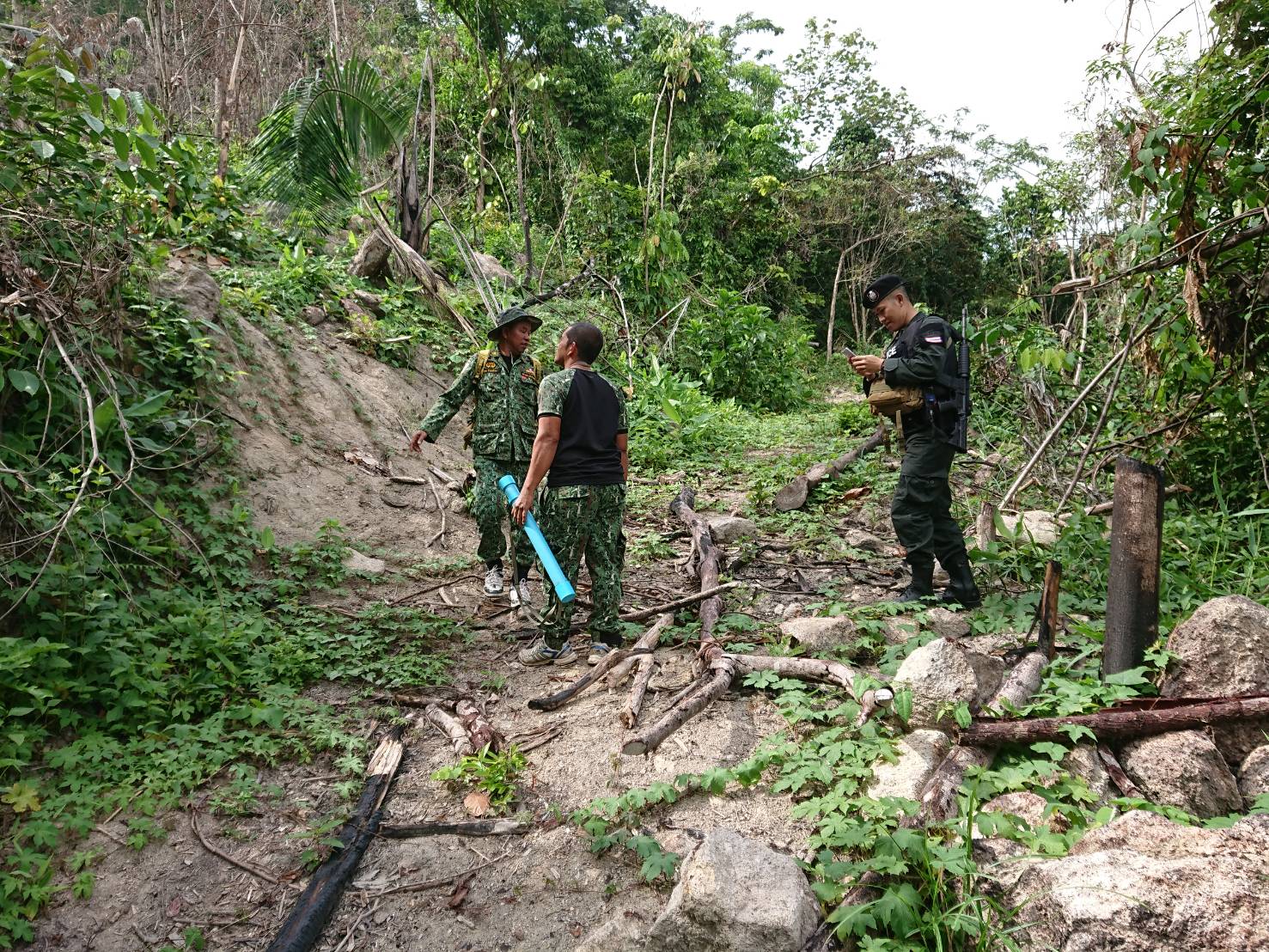 วันอังคาร ที่ 17 กรกฎาคม 2561 เวลา 09.30 น. สจป.ที่ 13 สาขานราธิวาส โดยเจ้าหน้าที่หน่วยป้องกันรักษาป่าที่ ยล.๓(ลำพะยา-บันนังสตา-ฮาลา) พร้อมด้วย ร.ต.ท.ยชอนันต์ วุฒิ พนักงานสอบสวน และเจ้าหน้าที่ตำรวจ สถานีตำรวจภูธรกรงปินัง อ.กรงปินัง จ.ยะลา ตรวจสอบที่เกิดเหตุพื้นที่ป่าถูกบุกรุกแผ้วถางบริเวณเขตป่าสงวนแห่งชาติป่าเทือกเขากาลอ ท้องที่บ้านสะเกใน ม.1 ต.กรงปินัง อ.กรงปินัง จ.ยะลาไม่พบตัวผู้กระทำผิด