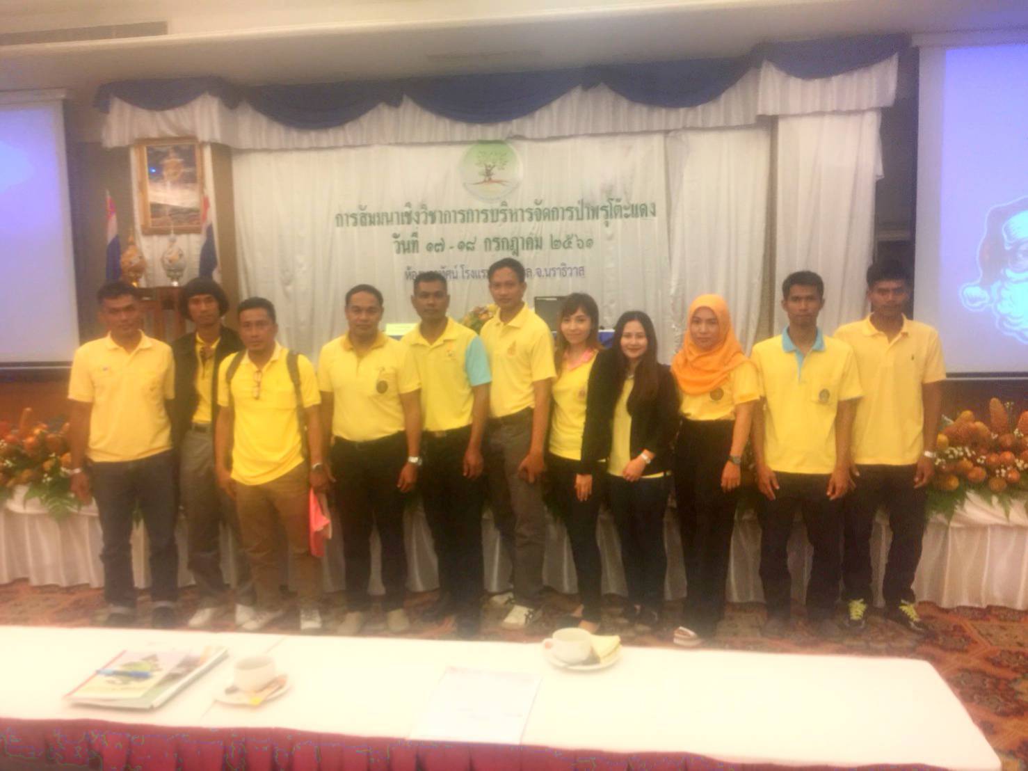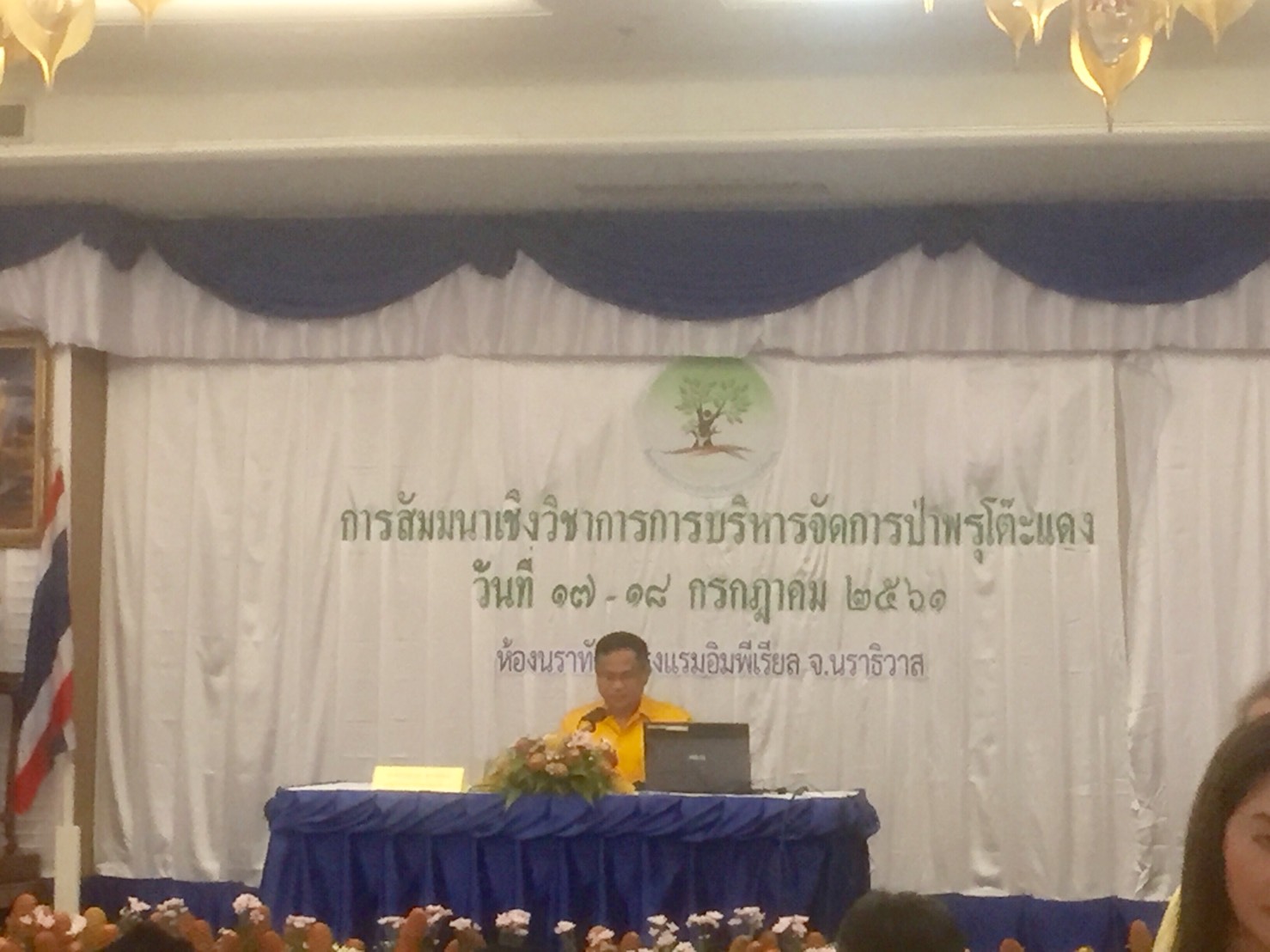 วันอังคาร ที่ 17 กรกฎาคม 2561 สจป.ที่ 13 สาขานราธิวาส โดยเจ้าหน้าที่สำนักจัดการทรัพยากรป่าไม้ที่ 13 สาขานราธิวาส, เจ้าหน้าที่หน่วยป้องกันรักษาป่าที่ นธ.4 (สุไหงปาดี) และ เจ้าหน้าที่หน่วยป้องกันรักษาป่าที่ นธ.6 (ตากใบ) เข้าร่วมการสัมมนาเชิงวิชาการการบริหารจัดการป่าพรุโต๊ะแดง ณ ห้องนราทัศน์ โรงแรมอิมพีเรียล จังหวัดนราธิวาส โดยมีรองผู้ว่าราชการจังหวัดนราธิวาส (นายณรงค์ คงวัดใหม่) เป็นประธานในพิธีเปิด
