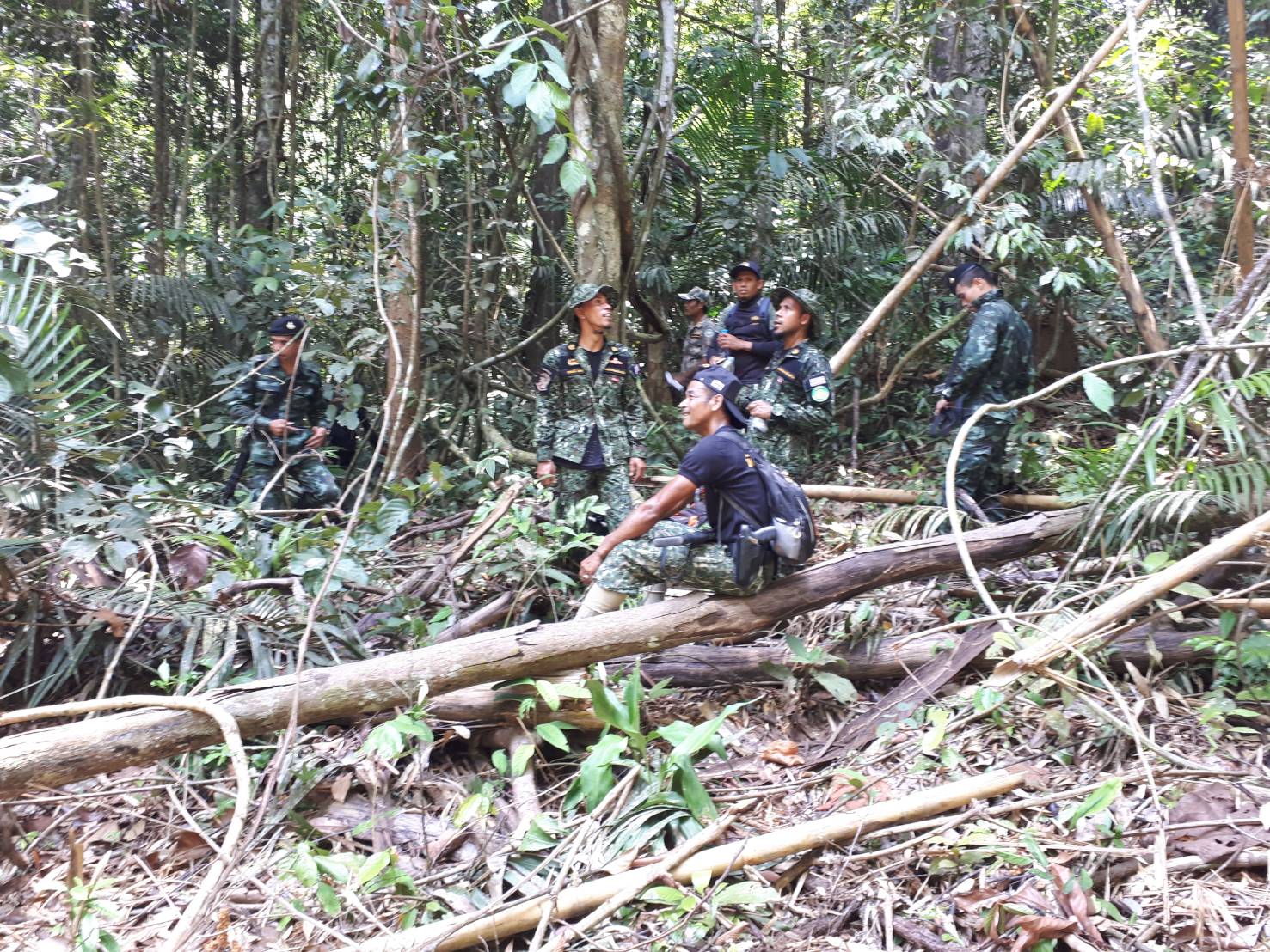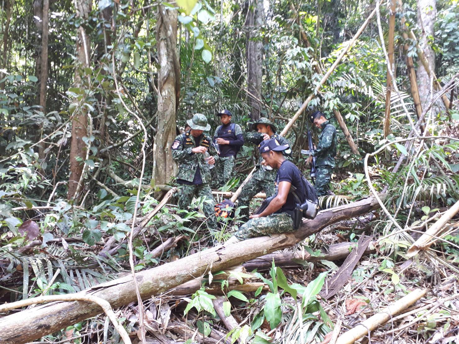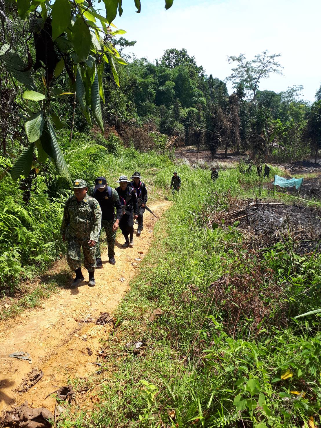 ที่ นธ. 5 (แว้ง-สุคิริน) พร้อมด้วยเจ้าหน้าที่ทหารพราน ร้อย ทพ.1104 กรม ทพ.11 ,เจ้าหน้าที่ทหาร ชุด ชปส.จฬ.12 ,เจ้าหน้าที่โครงการหมู่บ้านจุฬาภรณ์พัฒนา 12 และเจ้าหน้าที่นิคมสร้างตนเองสุคิริน ได้ร่วมกันตรวจสอบภาคพื้นดิน ตามผลบิน เมื่อ 4 มิ.ย.61 จุดที่ 3 ตามพิกัด QG 910535 UTM 47 N 791000 E 653500 N บริเวณบ้านจุฬาภรณ์พัฒนา 12 ม.13 ต.สุคิริน อ.สุคิริน จ.นราฯ ผลการปฎิบัติตรวจสอบตามพิกัดดังกล่าวและในรัศมี 200-300 ม. พื้นที่ป่ายังคงสมบูรณ์ไม่พบร่องรอยการบุกรุกแผ้วถางแต่อย่างใด รายละเอียดจะรายงานให้ทราบต่อไปครับ