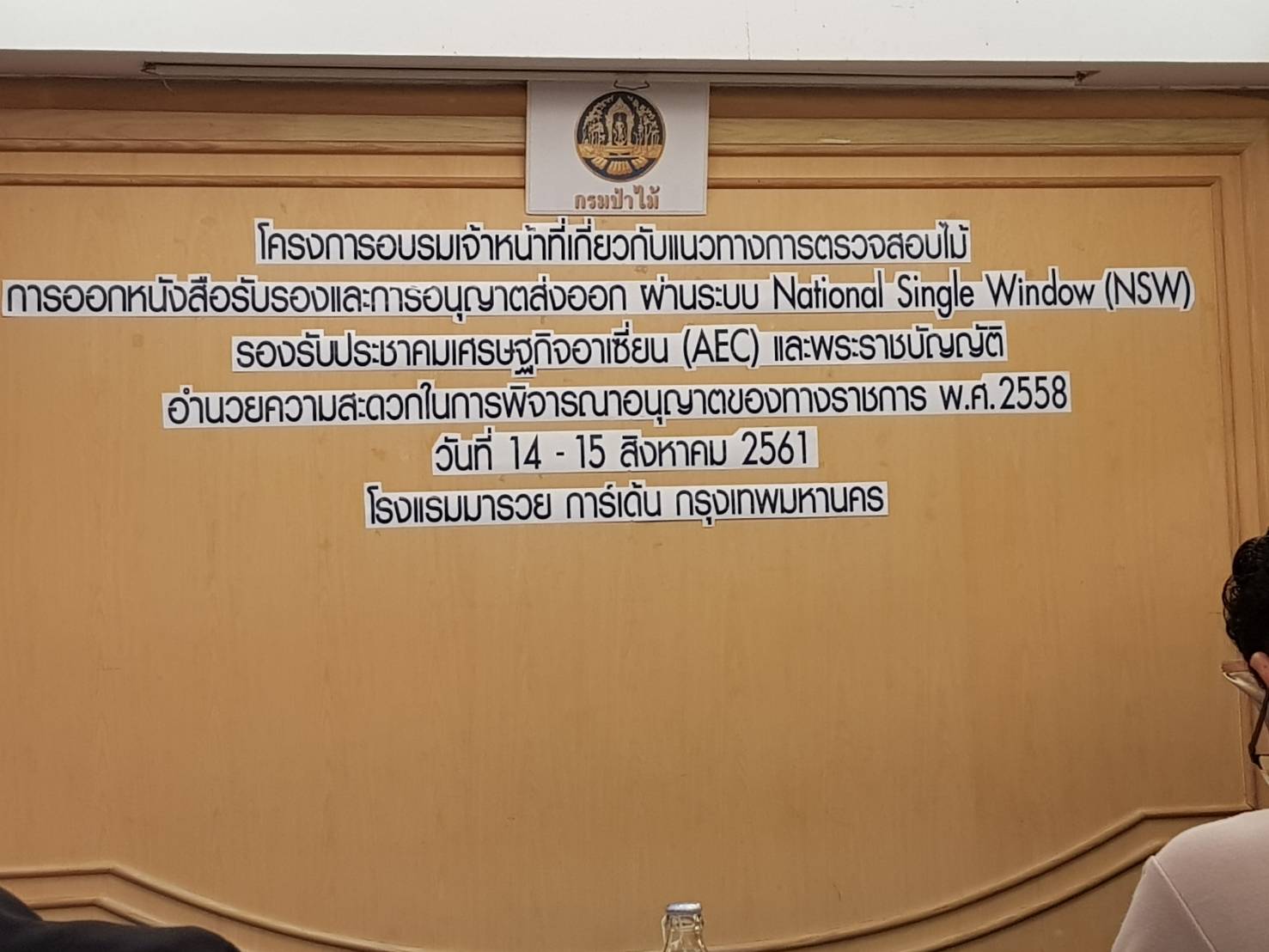 วันที่ 14-15 สิงหาคม 2561 สจป.ที่ 13 สาขานราธิวาส โดยผู้อำนวยการสำนักจัดการทรัพยากรป่าไม้ที่13 สาขานราธิวาส/ผู้อำนวยการศูนย์ป่าไม้นราธิวาส(นายชาตรี วชิระเผด็จศึก) และผู้อำนวยการศูนย์ป่าไม้ยะลา พร้อมด้วยเจ้าหน้าที่ศูนย์ป่าไม้ฯ เข้าร่วมโครงการอบรมเจ้าหน้าที่ เกี่ยวกับแนวทางการตรวจสอบไม้ การออกหนังสือรับรองไม้และการอนุญาตส่งออกผ่านระบบ National Single Window (NSW) รองรับการประชาคมเศรษฐกิจอาเซียน(AEC) และพระราชบัญญัติ อำนวยความสะดวกในการพิจารณาอนุญาตของทางราชการ พ.ศ.2558 งบประมาณปี 2561 ” ณ โรงแรมมารวยการ์เด้นท์ กรุงเทพโดยมี
