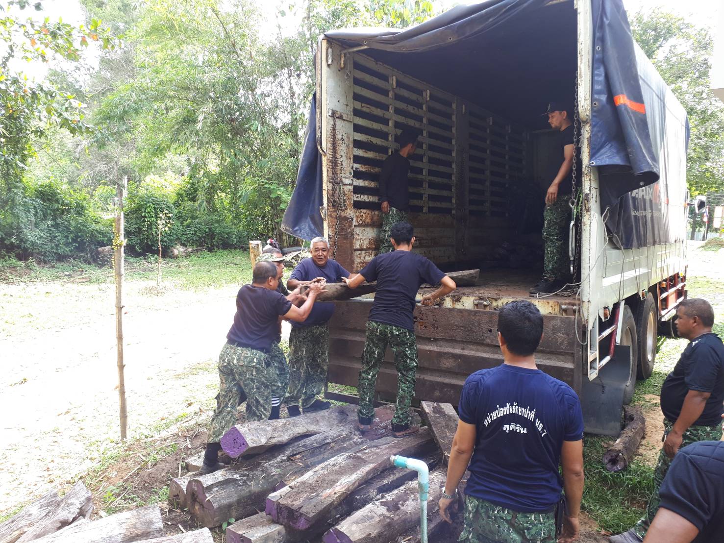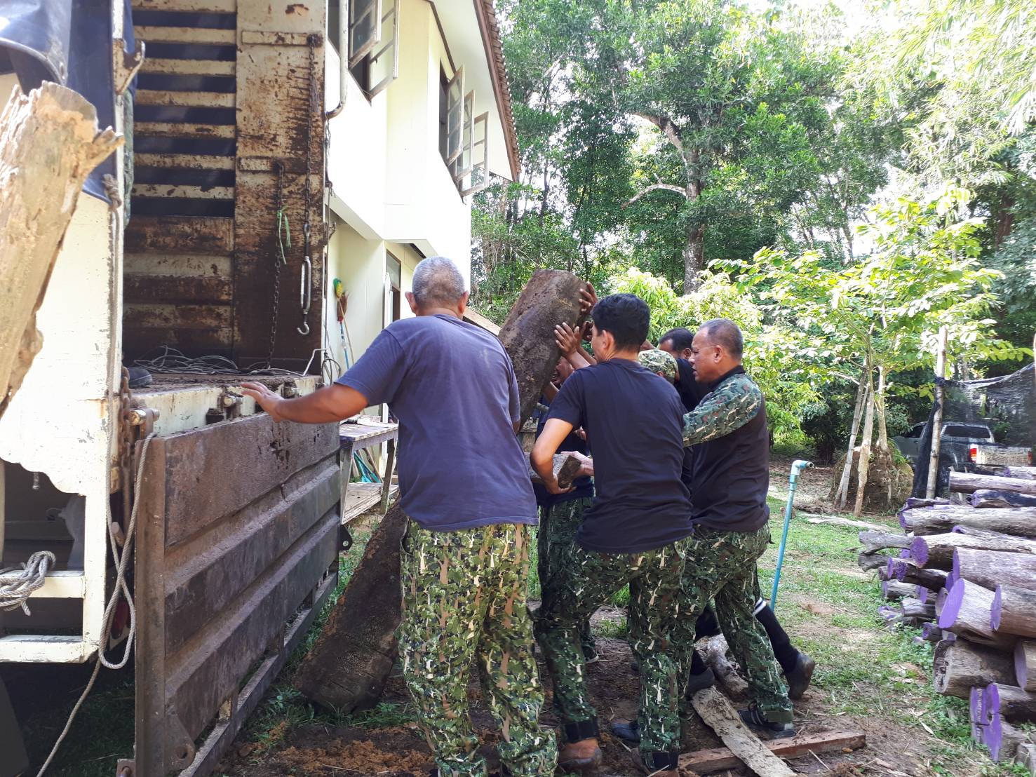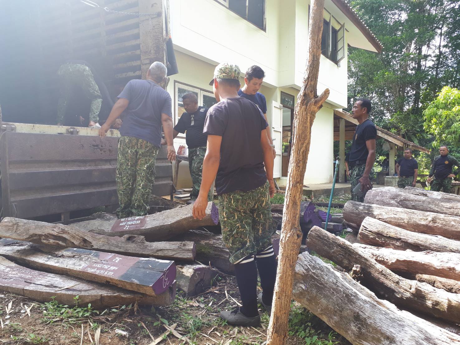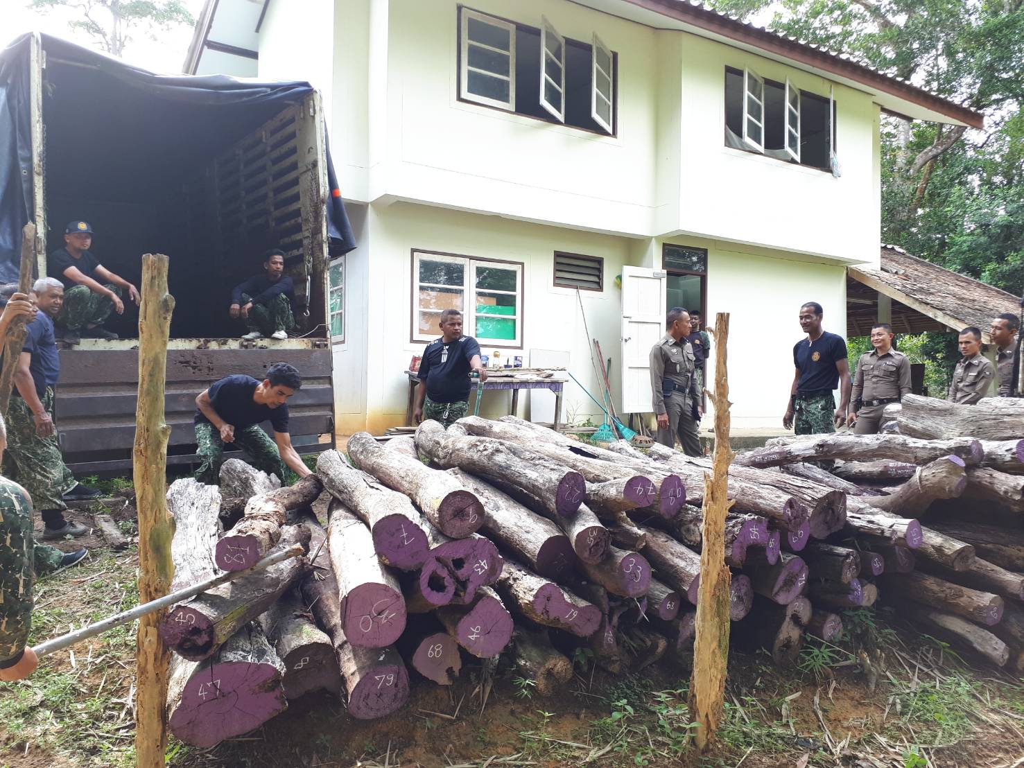 วันจันทร์ที่ 3 กันยายน 2561 เวลา 15.00 – 21.45 น. สจป.ที่ 13 สาขานราธิวาส โดยผู้อำนวยการส่วนป้องกันรักษาป่าและควบคุมไฟป่า (นายสุชาติ จินดาใจ) พร้อมด้วยเจ้าหน้าที่หน่วยป้องกันรักษาป่าที่ นธ.5 (แว้ง-สุคิริน) ร่วมกับ เจ้าหน้าที่ฝ่ายปกครองอำเภอแว้ง , เจ้าหน้าที่ตำรวจภูธรบูเก๊ะตา และเจ้าหน้าที่ทหารพราน หน่วยเฉพาะกิจกรมทหารพรานที่ 11 ได้ร่วมดำเนินการขนย้ายไม้ของกลาง ที่ตกเป็นของแผ่นดินแล้ว เพื่อใช้ในการก่อสร้างอาคารพิพิธภัณฑ์ไม้มีค่า ( ครั้งที่ 3) ณ หน่วยฯ นธ.5 (แว้ง-สุคิริน) ม.9 ต.โละจูด อ.แว้ง จ.นราธิวาส