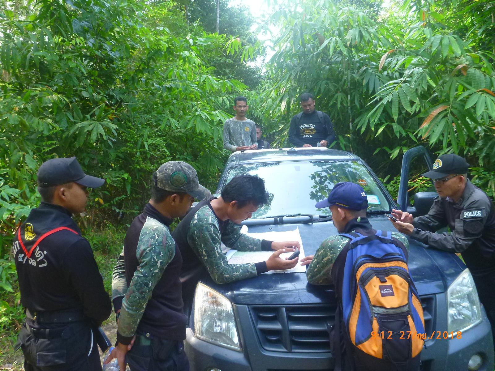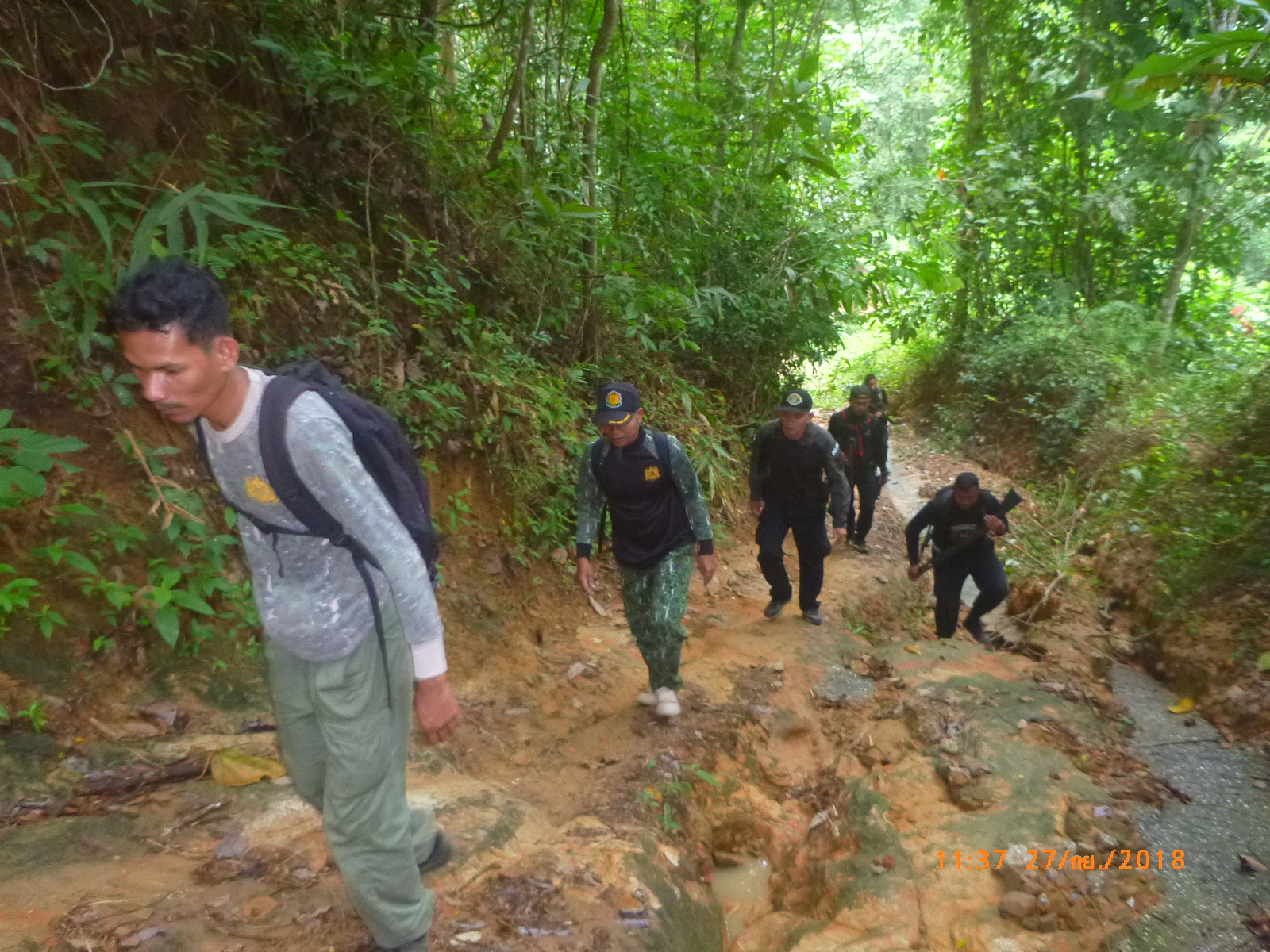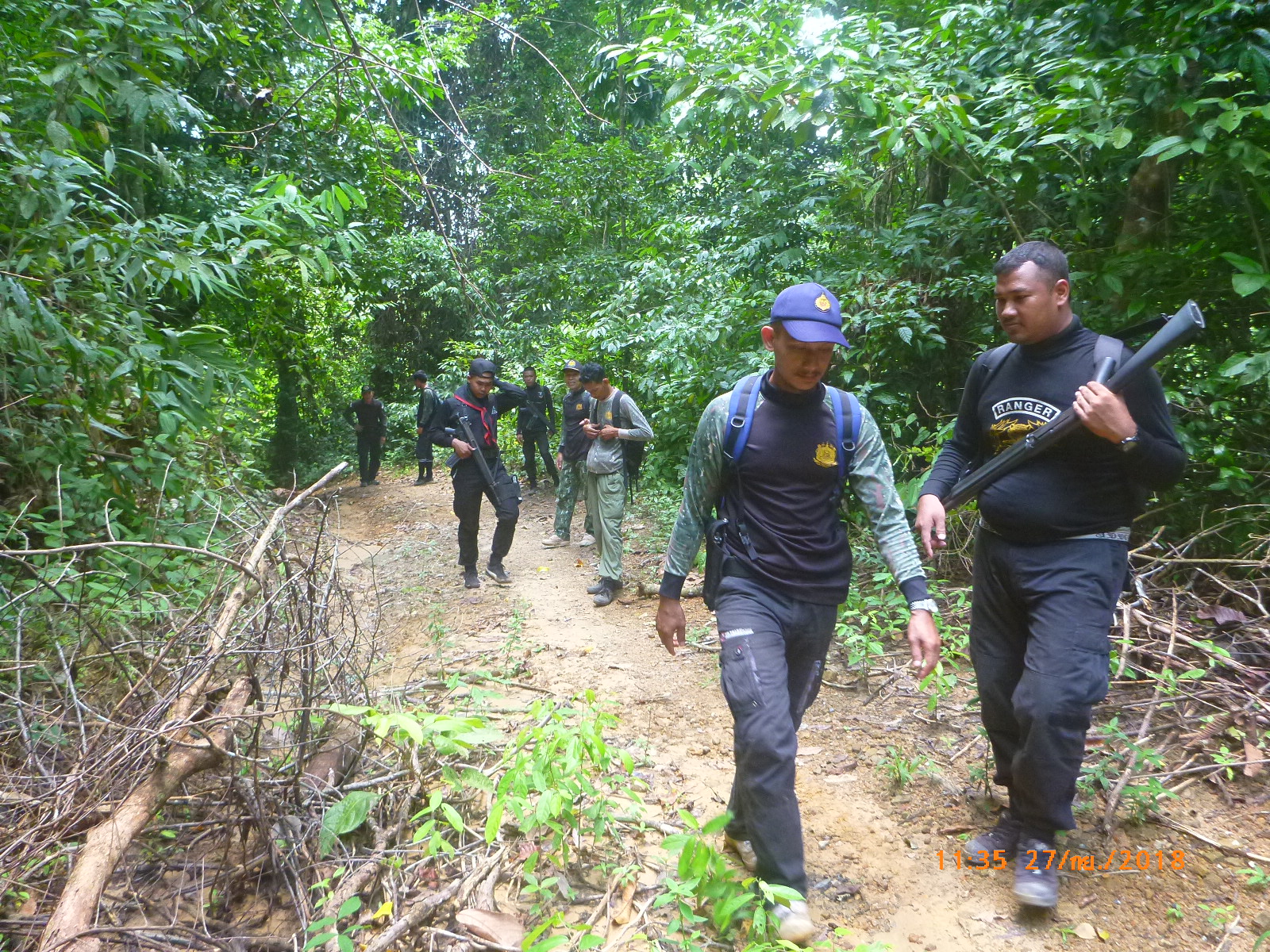วันพฤหัสบดีที่ 27 กันยายน 2561 เวลา 08.30 น. สจป.ที่ 13 สาขานราธิวาส โดยเจ้าหน้าที่หน่วยป้องกันรักษาป่าที่ ยล. 1(กาบัง)พร้อมด้วยเจ้าหน้าที่สายตรวจปราบปรามฯ กก.๖ บก.ปทส.จ.ยะลา และ เจ้าหน้าที่อาสาสมัครทหารพราน 4709 ได้รับคำสั่งให้ออกปฏิบัติการตรวจสอบ พื้นที่ตามหนังสือ ด่วนมาก ที่ นร.5119.1(สขว.)1138 วันที่ 18 สิงหาคม 2561 เรื่องรายงานการบินสำรวจค้นหาพื้นที่ป่าไม้ถูกทำลาย จังหวัดยะลา ตามข้อ 1.19 จุดที่ 19 ประมาณพิกัด QH 215009 อ.กาบัง