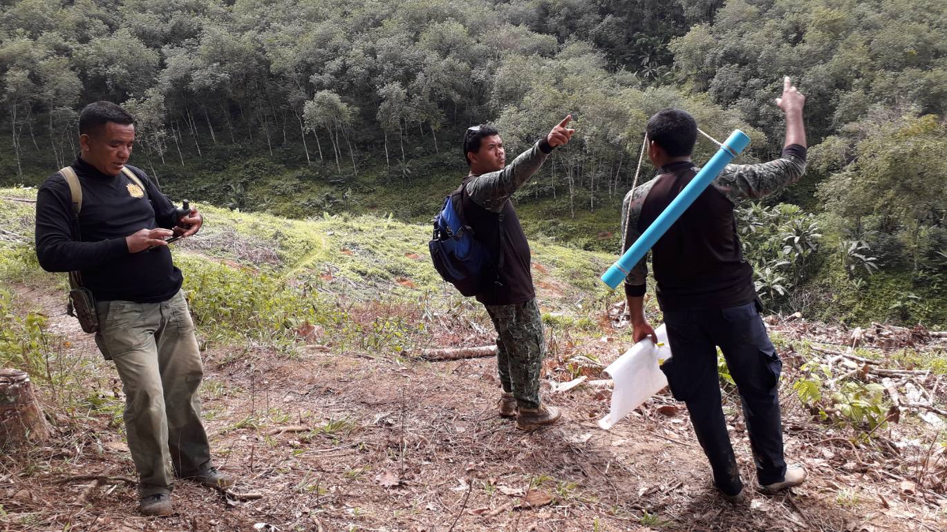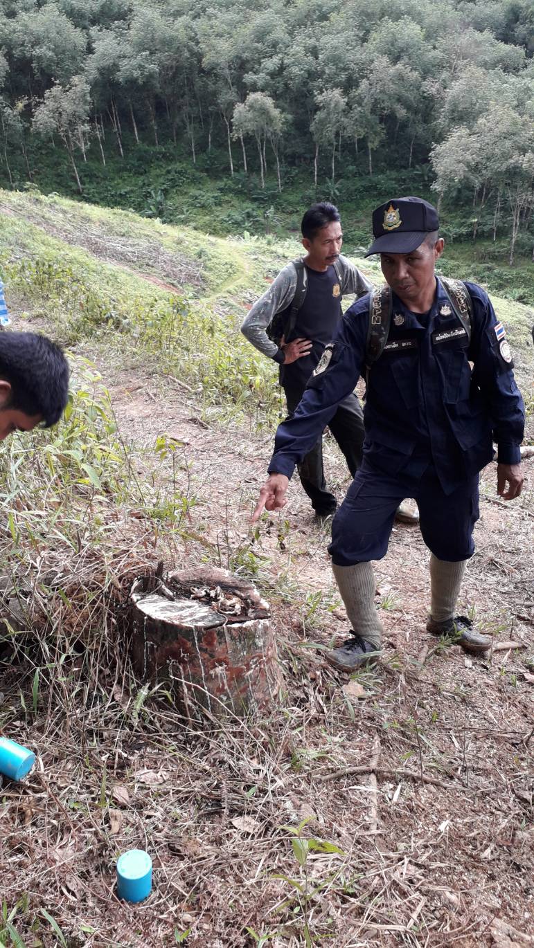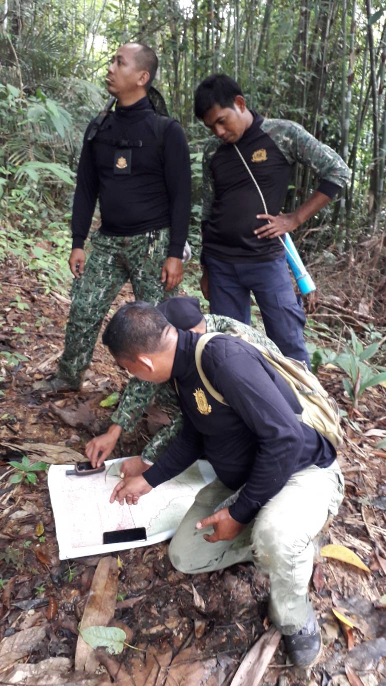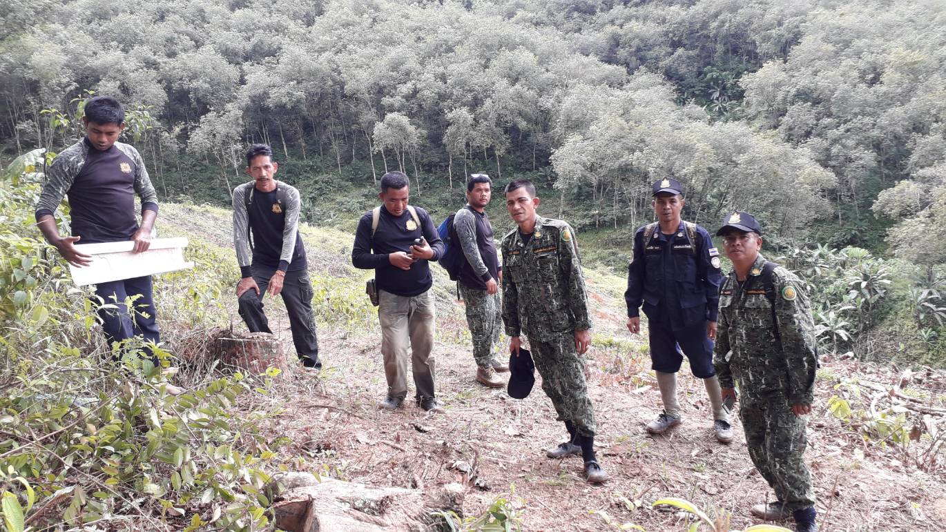 (บ่อน้ำร้อน-จันทรัตน์) ร่วมกับ ร้อย.ต.ช.ด.445 นำโดย ร.ต.อ ภาคภูมิ กระบัตร หน.ชฝต.4406 (ร้อย ตชด.445)ได้ออกตรวจภาคพื้นดิน ตามแผนบินของวันที่ 22 พฤศจิกายน พ.ศ. 2561 ตามพิกัด 47 n 743989-642016 ป่าเตรียมการสงวนป่าฝังขวาแม่นํ้าปัตตานี แปลงที่ 2 ม.4 ต.ยะรม อ.เบตง จ.ยะลา ผลการตรวจสอบพื้นที่ปรากฏว่าเป็นพื้นที่ทำกินของราษฎร โดยมีต่อยางเก่าอยู่เต็มแปลง