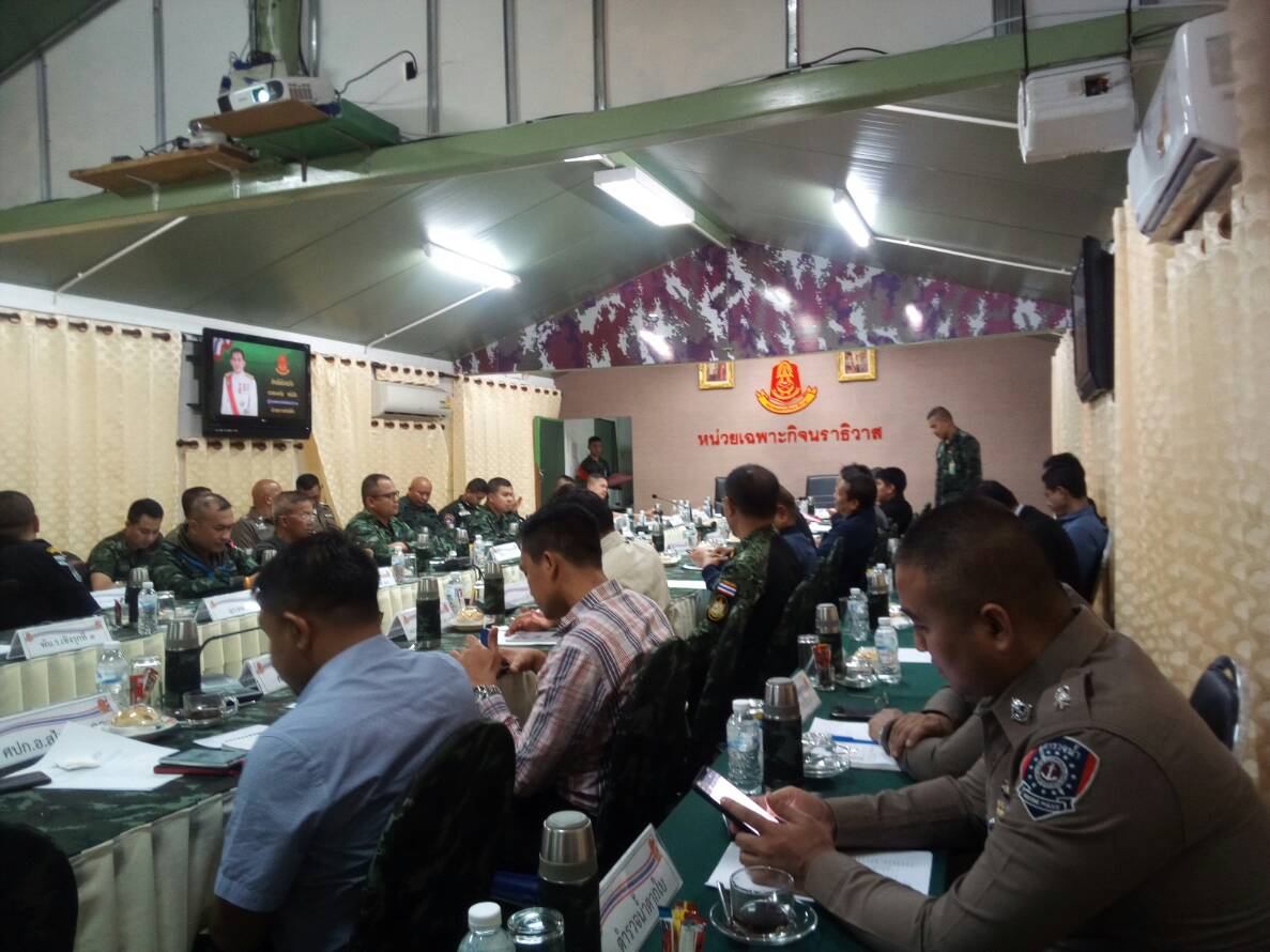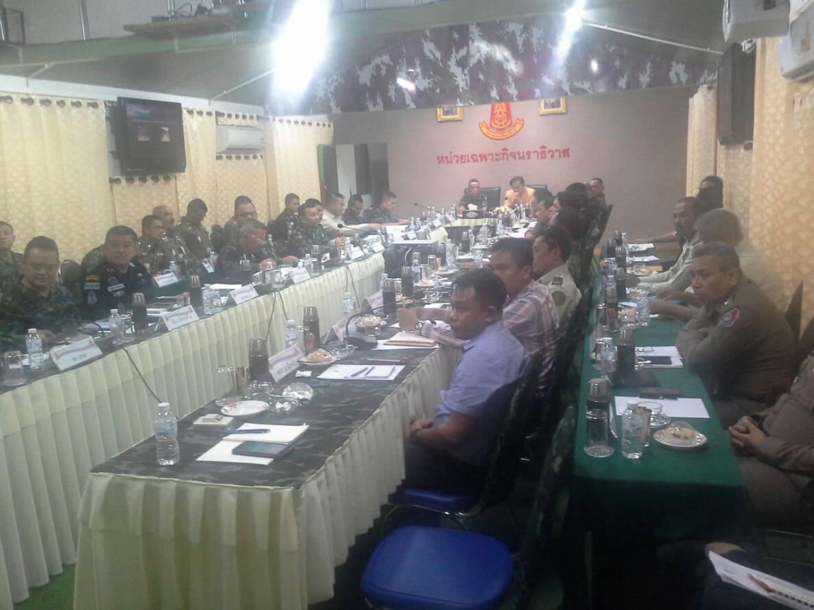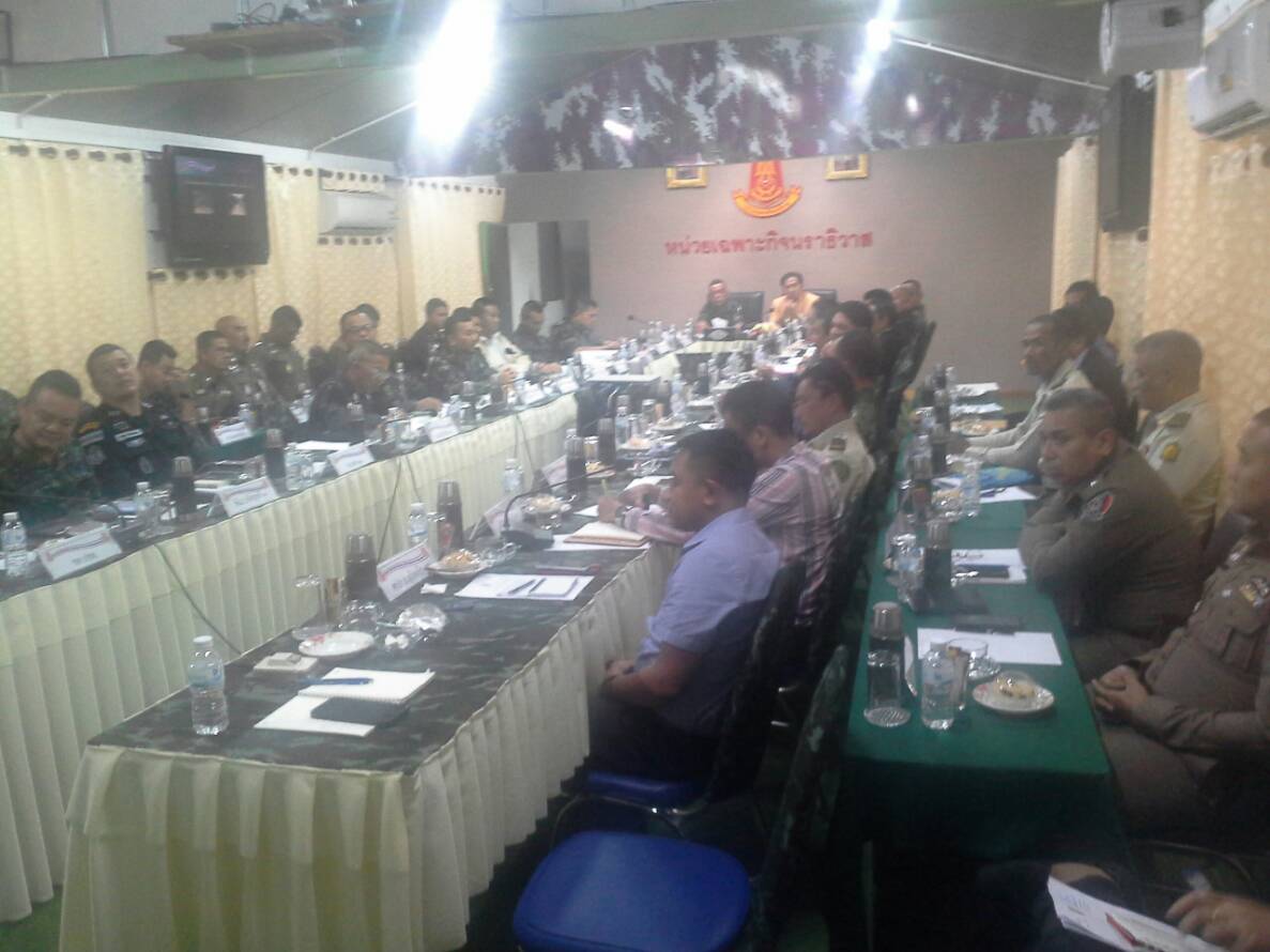 ณ ห้องประชุม กองบังคับการหน่วยเฉพาะกิจนราธิวาส ต.โคกเคียน อ.เมือง จ.นราธิวาส โดยมีนาย เอกรัฐ หลีเส็น ผู้ว่าราชการจังหวัดนราธิวาส เป็นประธาน