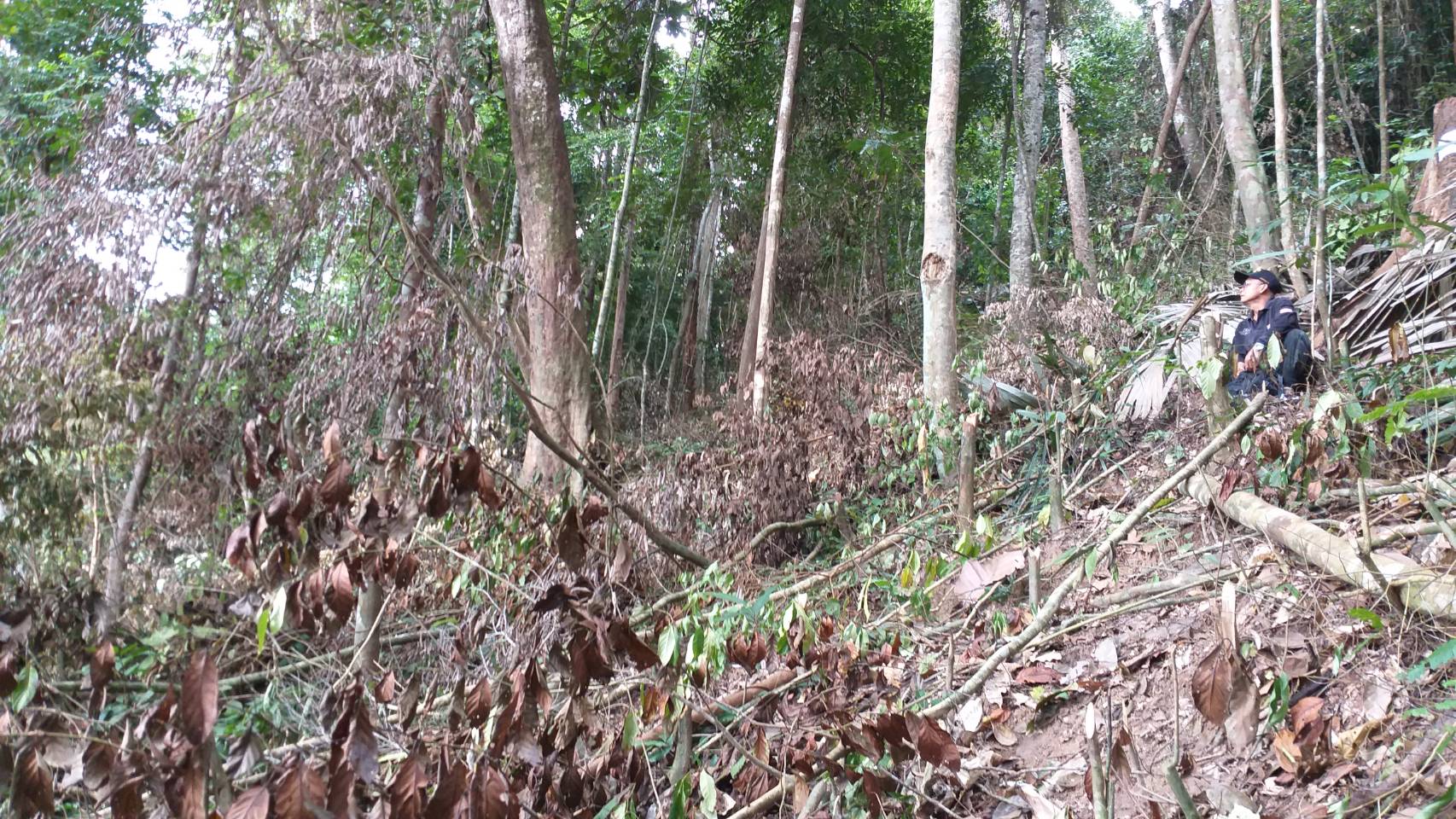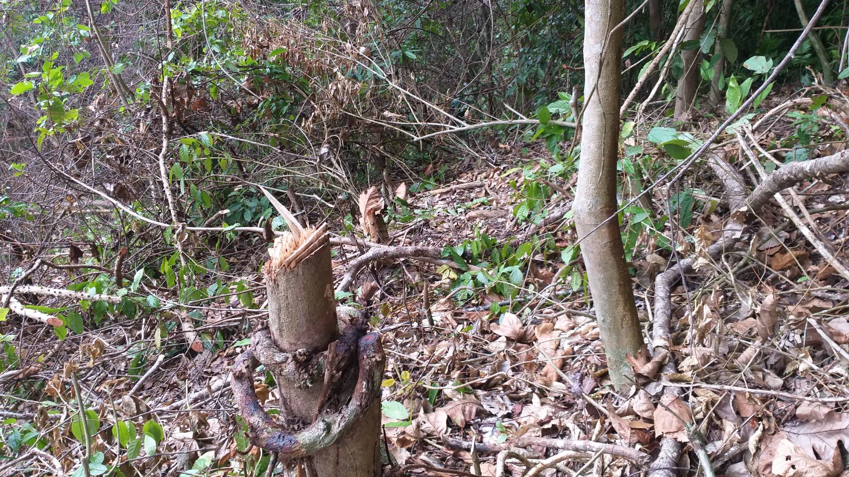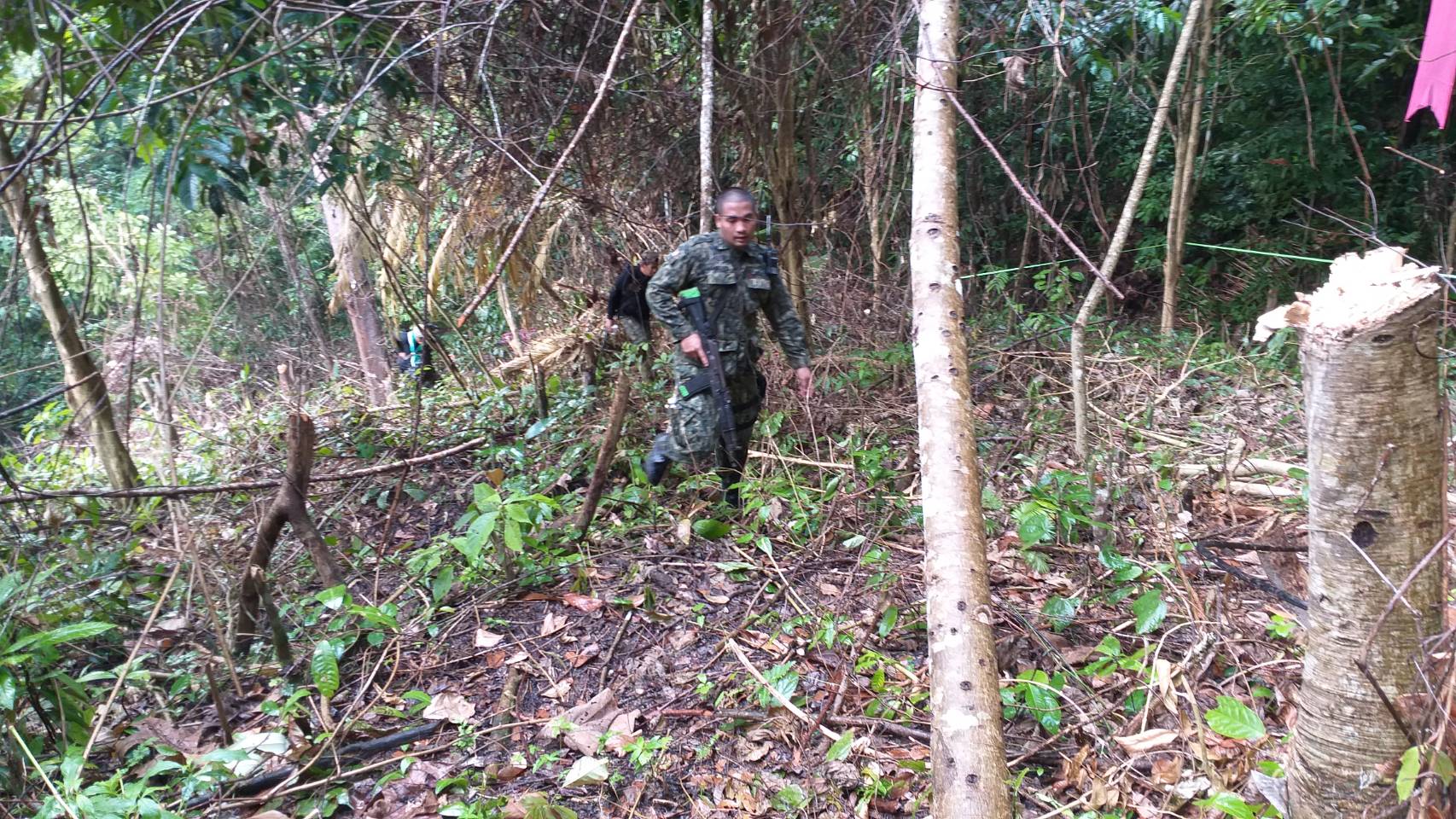 จุดที่ 2 พบพื้นที่ป่าถูกบุกรุกแผ้วถางอยู่นอกเขตป่าสงวนแห่งชาติ ท้องทีบ้านตะโล๊ะชูแม ม.2 ต.กรงปินัง อ.กรงปินัง