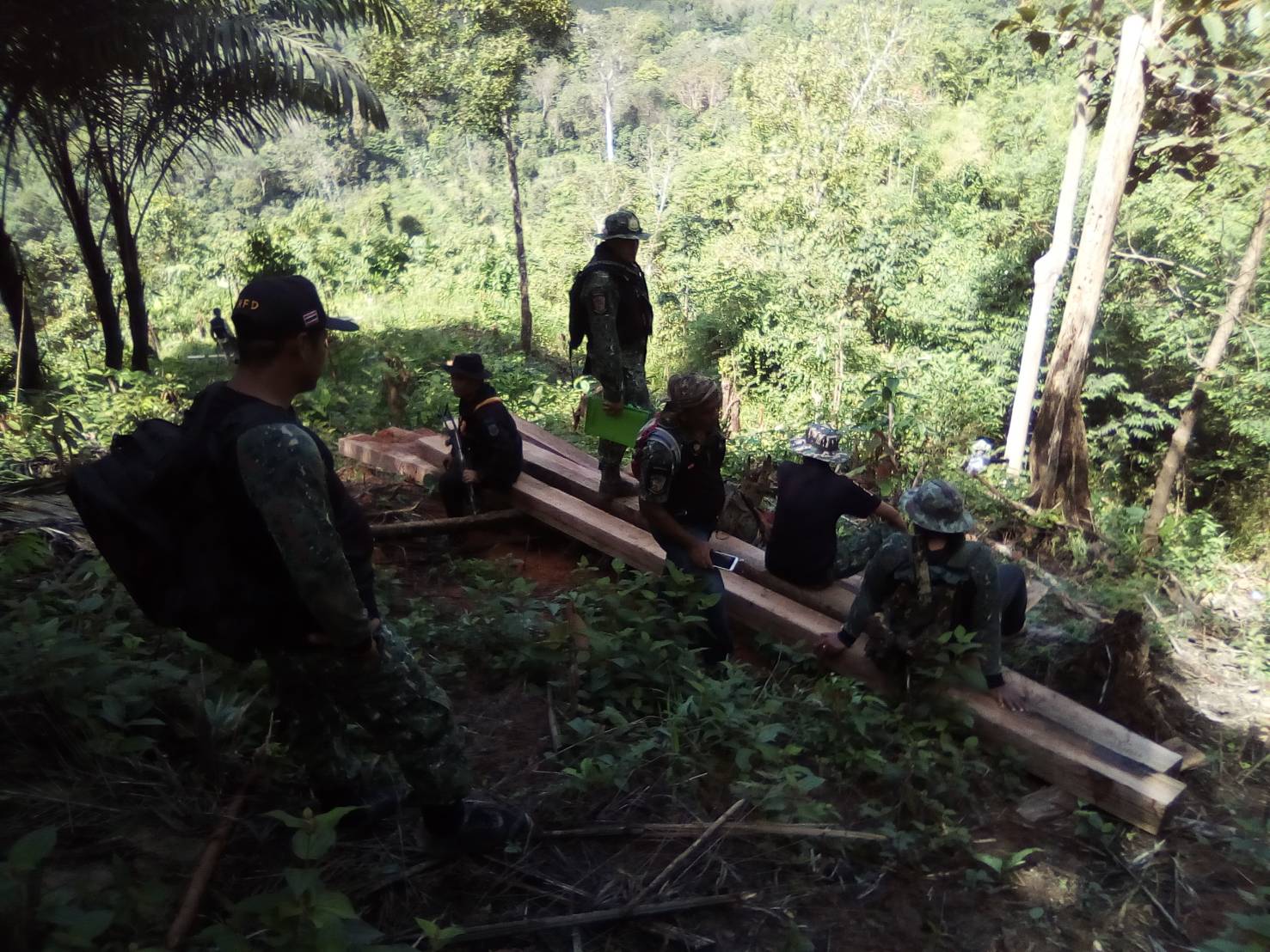 นธ. 3(ระแงะ-จะแนะ) พร้อมเจ้าหน้าที่กองอำนวยการรักษาความมั่งคงภายในภาค 4 ส่วนหน้า,เจ้าหน้าที่ศูนย์ป้องกันและปราบปรามที่ ๔ (ภาคใต้) กรมป่าไม้ และเจ้าหน้าที่กองอาสารักษาดินแดนอำเภอจะแนะ ได้ร่วมกันออกตรวจปราบปรามการกระทำผิดกฎหมายป่าไม้ ผลการตรวจสอบพบในพื้นที่ป่าลูโบ๊ะลาเซาะ ม.1 ต.ผดุงมาตร อ.จะแนะ จ.นราธิวาส เป็นไม้ยาง ทั้งหมดจำนวน 26 ชิ้น/แผ่น ปริมาตร 0.63 ลบม. คิดค่าภาคหลวง 75.60 บาท ค่าเสียหายของรัฐ 12,600 บาท ที่พิกัด 47 N 800644 E,679102 N รายละเอียดจะรายงานให้ทราบต่อไปครับ