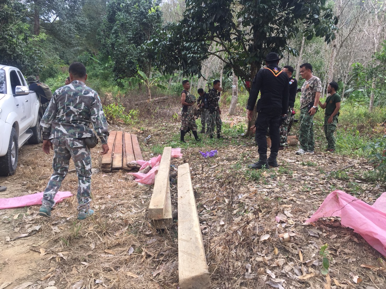 ออกตรวจลาดตระเวนป้องกันและปราบปรามการกระทำผิดกฎหมายว่าด้วยการป่าไม้ ตามโครงการเพิ่มประสิทธิภาพ ด้านการป้องกันปราบปรามการบุกรุกและทำลายทรัพยากรธรรมชาติกองอำนวยการรักษาความมั่งคงภายในจังหวัดนราธิวาส พบการกระทำผิดลักลอบ