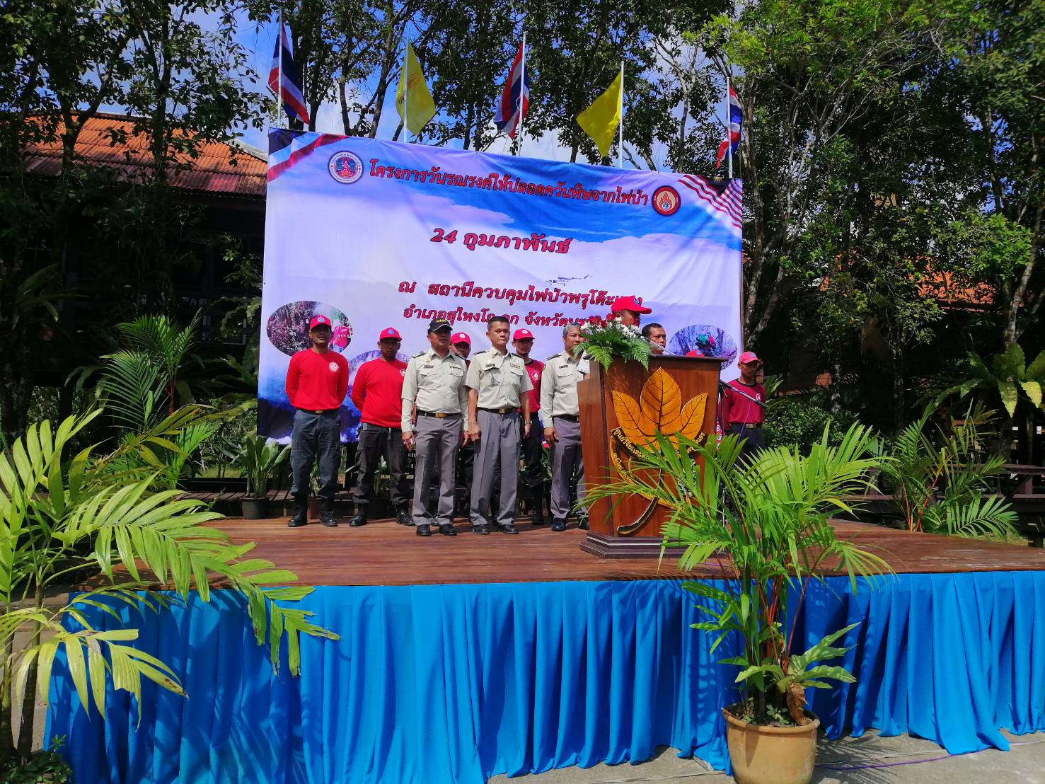 ให้ปลอดควันพิษจากไฟป่า ณ สถานีควบคุมไฟป่าพรุโต๊ะแดง อำเภอสุไหงโก-ลก โดยมีนายปรีชา นวลน้อย นายอำเภอสุไหงโก-ลก เป็นประธาน