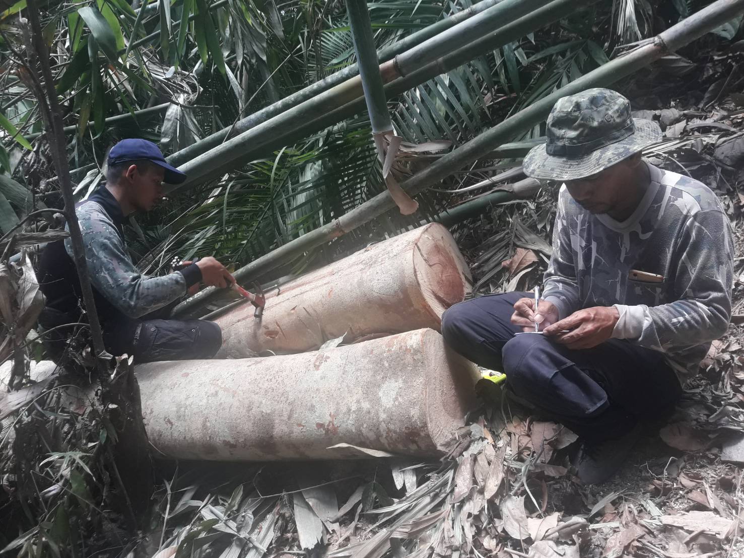 ท้องที่บ้านเจาะตีโปง ต.บาละ อ.กาบัง จ.ยะลา ผลการตรวจสอบตรวจพบพื้นที่บุกรุกแผ้ว จำนวน 2 จุด จุดที่ 1 เนื้อที่ 1 ไร่ 2 งาน 08 ตารางวา ค่าเสียหายของรัฐ 228,000 บาท ที่พิกัด 47 N 0728774 E , 0696901 N เวลา 1๑.00 น.
