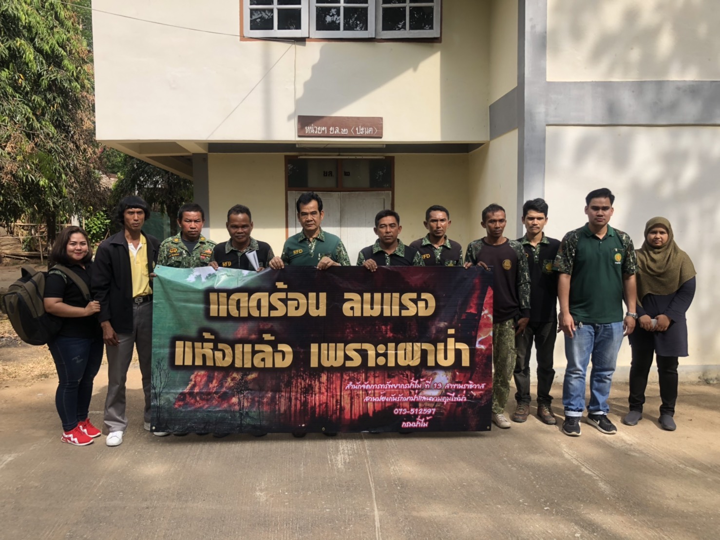 วันจันทร์ที่ ๒๕ มีนาคม 2562 เวลา ๑๐.๐๐ น. โดยผู้อำนวยการส่วนป้องกันรักษาป่าและควบคุมไฟป่า (นายสุชาติ จินดาใจ) พร้อมด้วยเจ้าหน้าที่ส่วนป้องกันรักษาป่าและควบคุมไฟป่า ร่วมประชาสัมพันธ์กิจกรรมป้องกันไฟป่าและควบคุมหมอกควัน และแนะนำการนำข้อมูลคดีเข้าระบบติดตามการบุกรุกพื้นที่ป่า พร้อมได้ติดป้าย โครงการ วันรณรงค์ให้ปลอดควันพิษจากไฟป่า “แดดร้อน ลมแรง แห้งแล้ง เพราะเผาป่า” ณ หน่วยป้องกันรักษาป่าที่ ยล.1 (กาบัง)