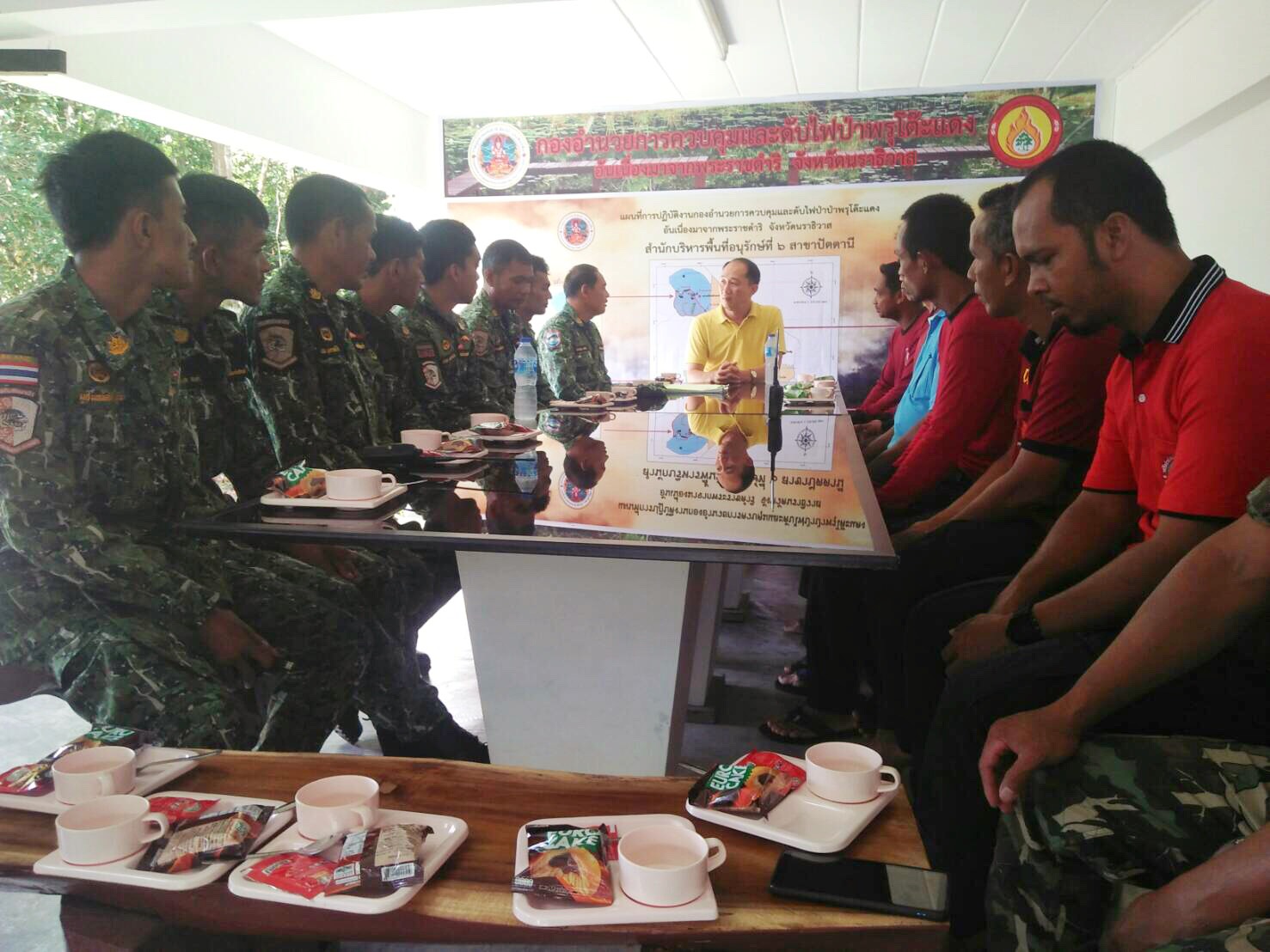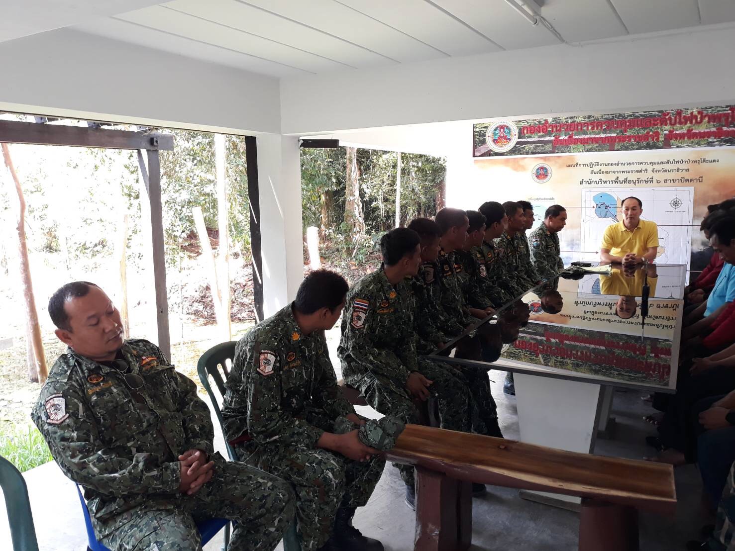 พรุโต๊ะแดง อ.สุไหงโก-ลก จ.นราธิวาส และร่วมออกลาดตระเวนกับผู้ใหญ่บ้านและผู้ช่วยผู้ใหญ่บ้าน ม.10 บ้านป่าเย และ ม. ต.สุไหงปาดี อ.สุไหงปาดี จ.นราธิวาส ในท้องที่รับผิดชอบป่าสงวนแห่งชาติ ป่าลุ่มน้ำบางนราแปลง 2
