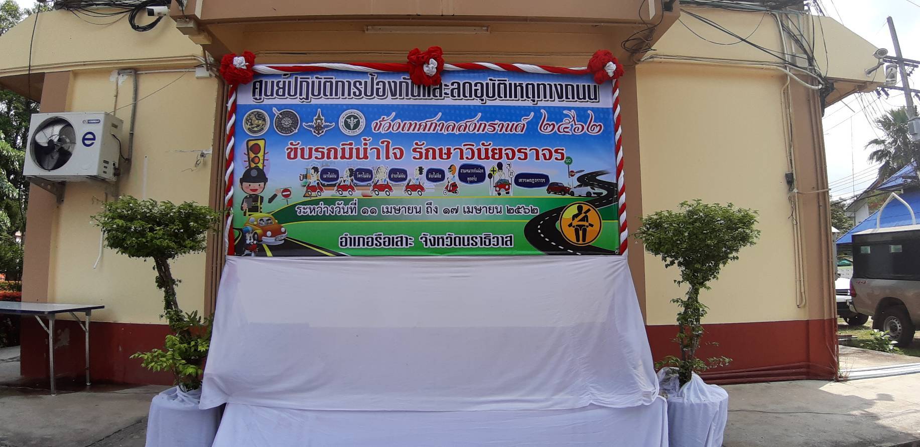 ขับรถมีน้ำใจ รักษาวินัยจราจร ระหว่างวันที่ 11-17 เมษายน 2562 ณ ที่ว่าการอำเภอรือเสาะ อ.รือเสาะ