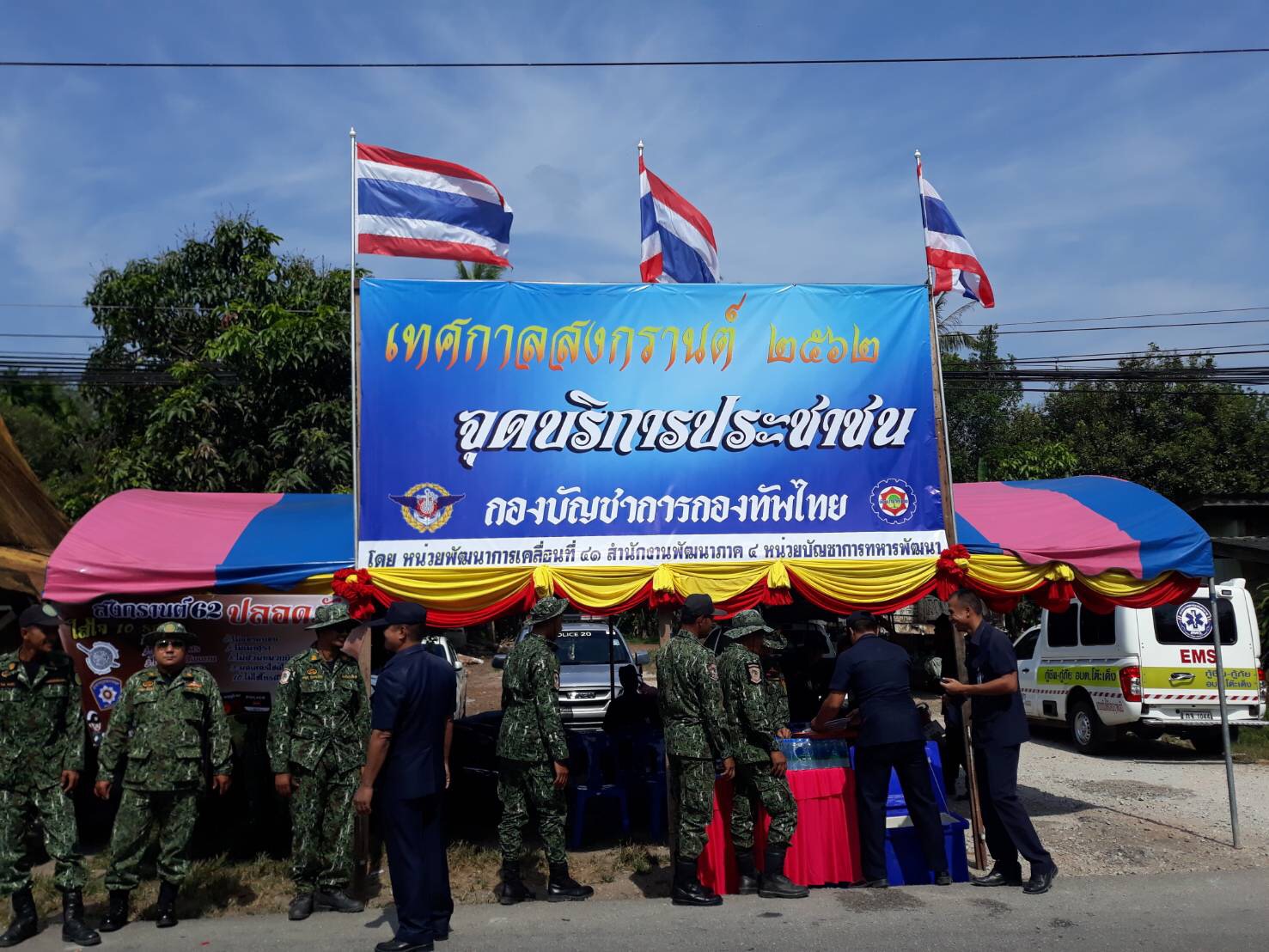 (สุไหงปาดี) ร่วมปฏิบัติการป้องกันและลดอุบัติเหตุทางถนน ช่วงเทศกาลสงกรานต์ พ.ศ. 2562 “ขับรถมีน้ำใจ รักษาวินัยจราจร” ระหว่าง วันที่ 11 เมษายน 2562 – 17 เมษายน 2562 ณ จุดบริการประชาชน กองบัญชาการกองทัพไทย หน้ากองร้อยตำรวจตระเวนชายแดนที่ 447 บ้านเจาะวา ต.สุไหงปาดี อ.สุไหงปาดี จ.นราธิวาส พร้อมทั้งมอบ กาแฟและน้ำดื่ม ให้จุดบริการประชาชนด้วย
